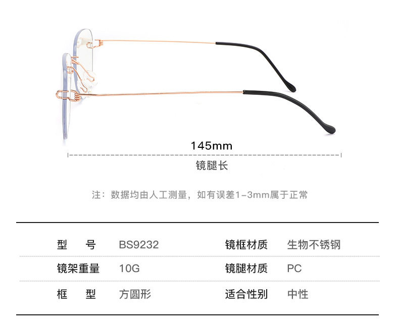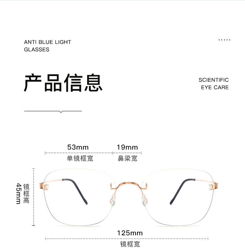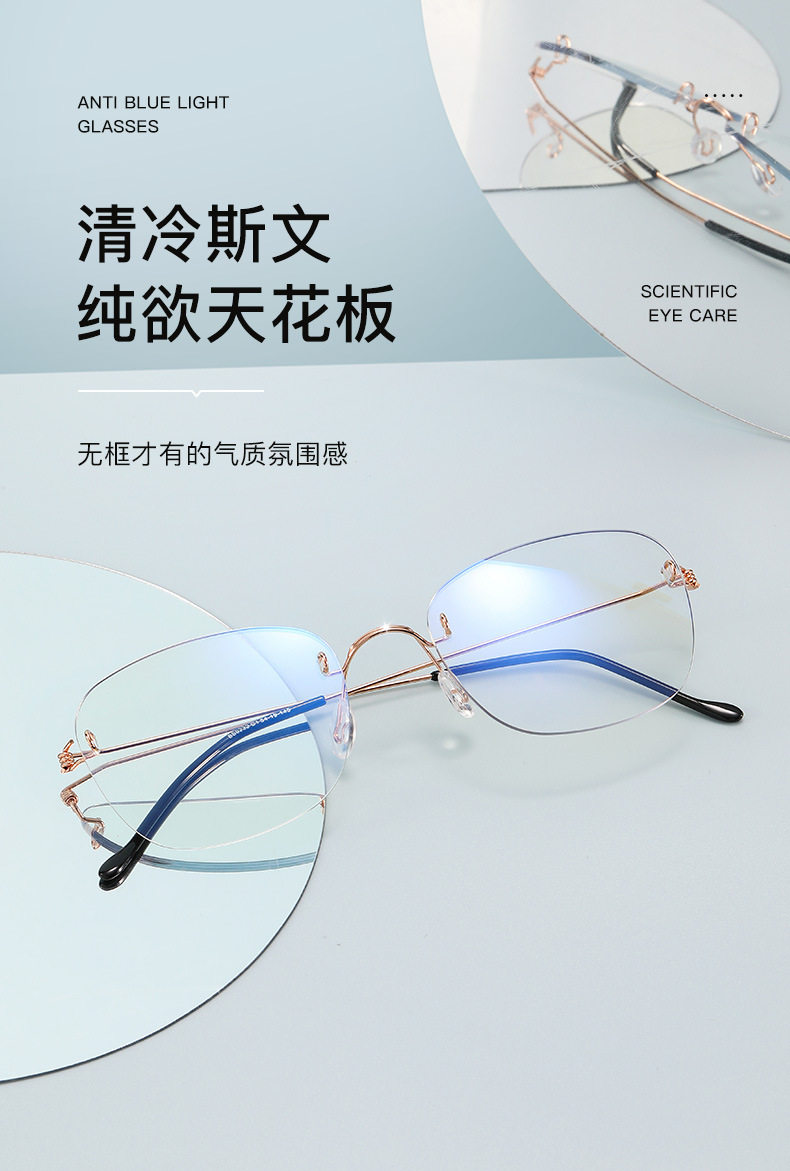 Frameless Glasses Frame, Screwless, Anti-Blue Light, Mobile Phone Glasses, Non-Prescription Glasses, Can Be Fitted with Prescription Lenses Bs9233