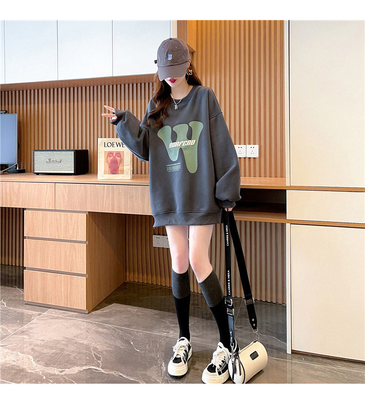 Silver Fox Velvet Thickened Warm Pregnant Women's Top Outer Wearing Base Shirt Mid-length Sweater Loose T-shirt Fashion suit Autumn and Winter