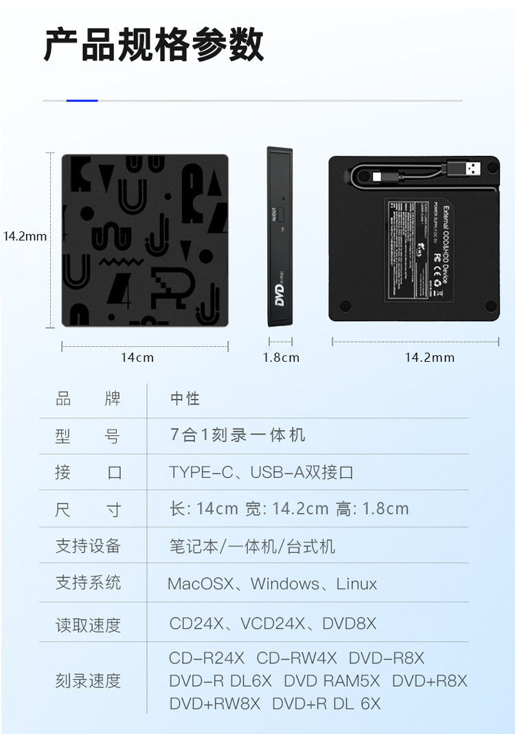 New USB3.0 external optical drive drive-free installation DVD burner notebook external usb-c burner optical drive
