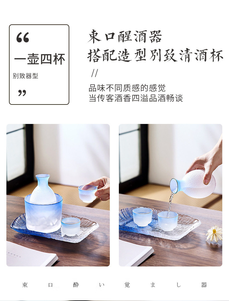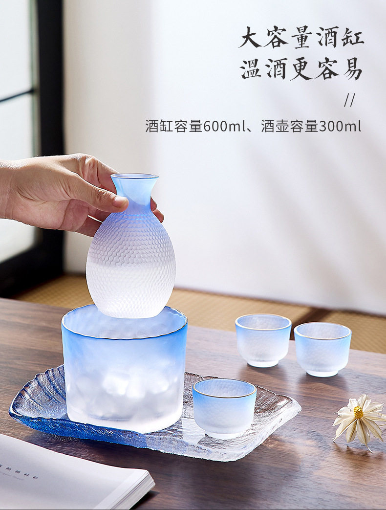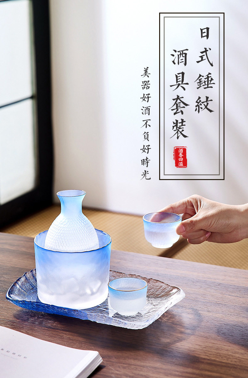Japanese-style hammered sake wine set suit household glass rice wine warmer ice wine sake hot wine pot small wine cup
