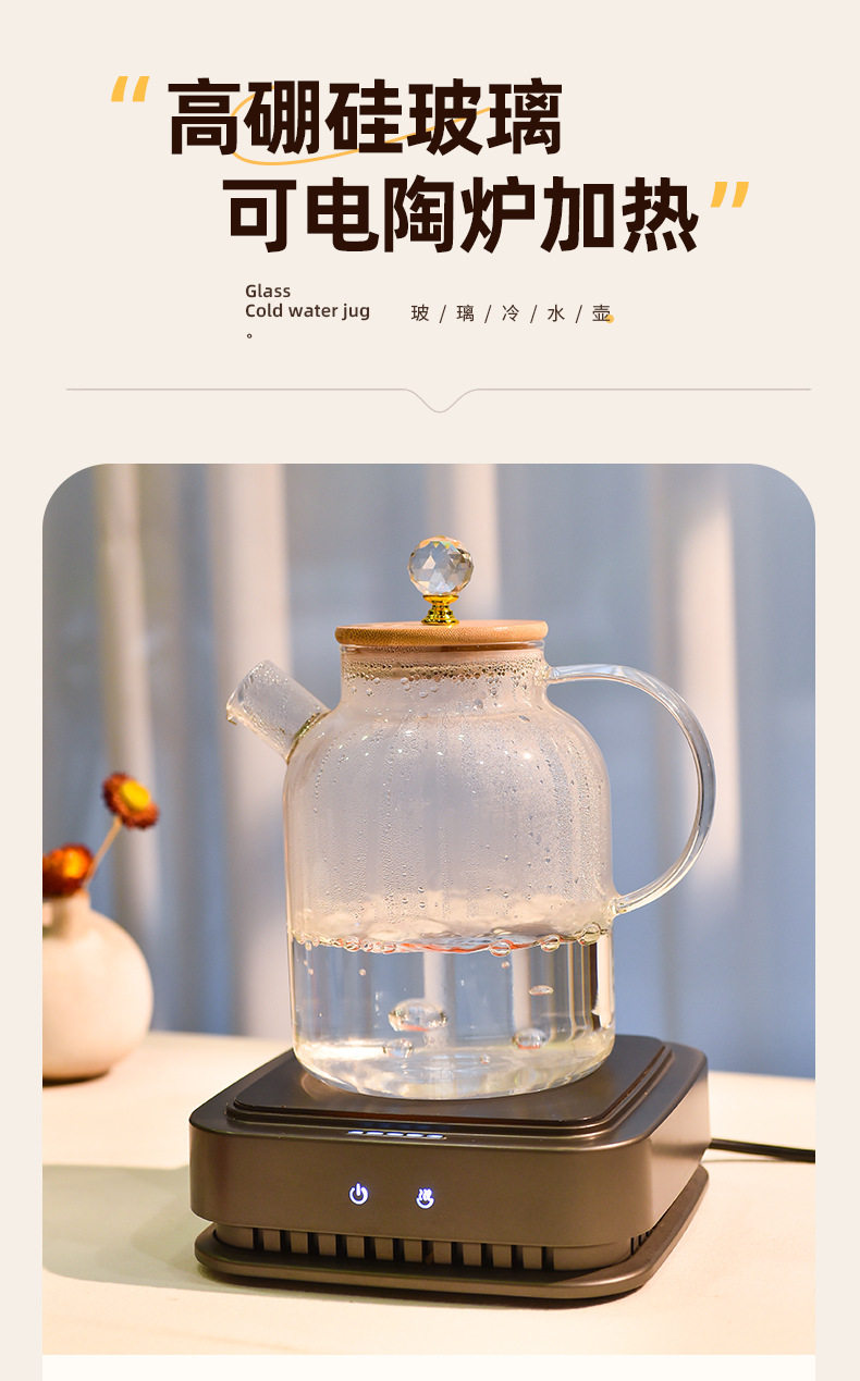Chinese-Style Teapot, Heat-Resistant Glass Pot, Electric Ceramic Stove, Teapot, Multi-Functional Hot Water Water Kettle, Glass High-End Flower Teapot
