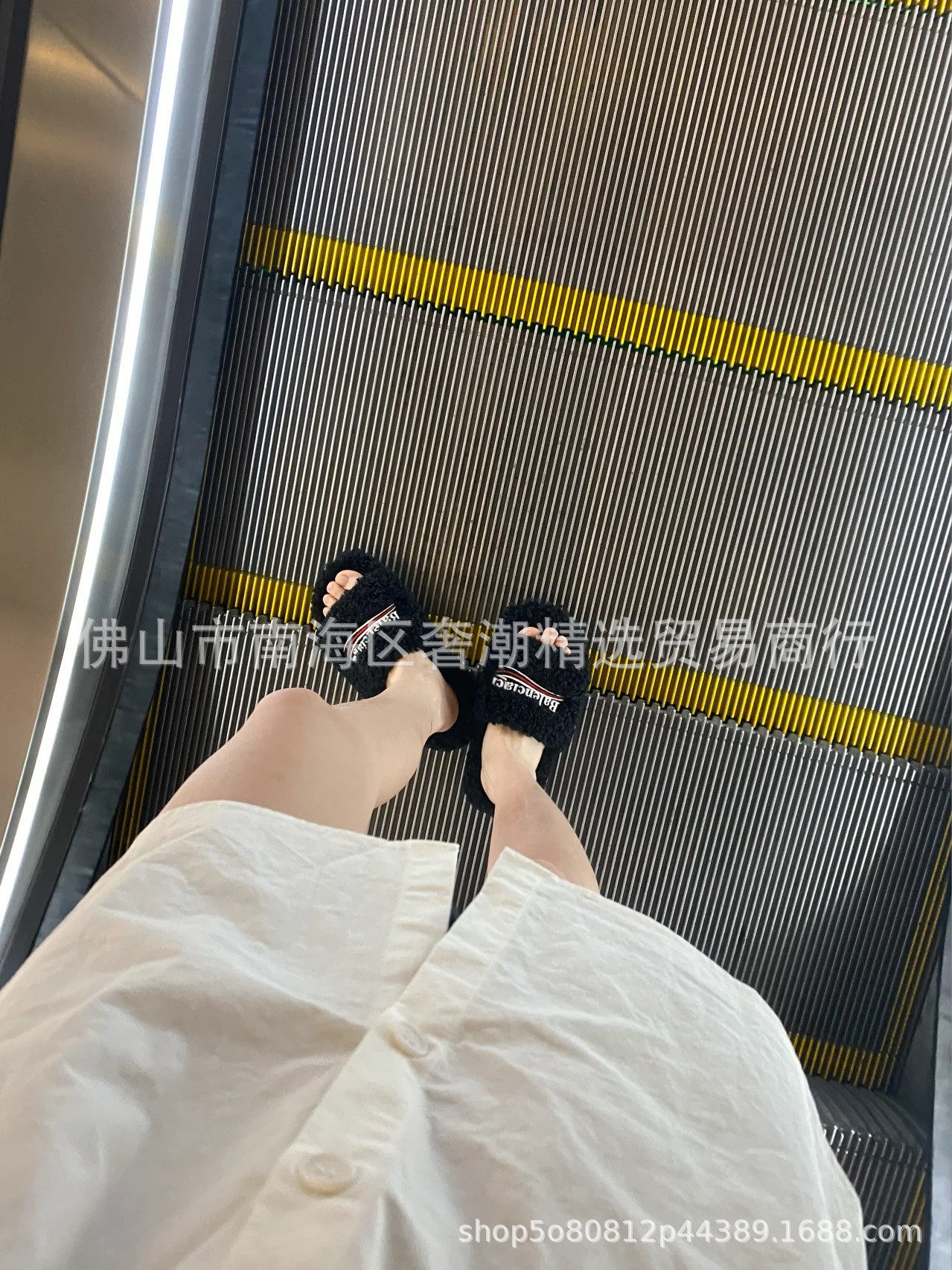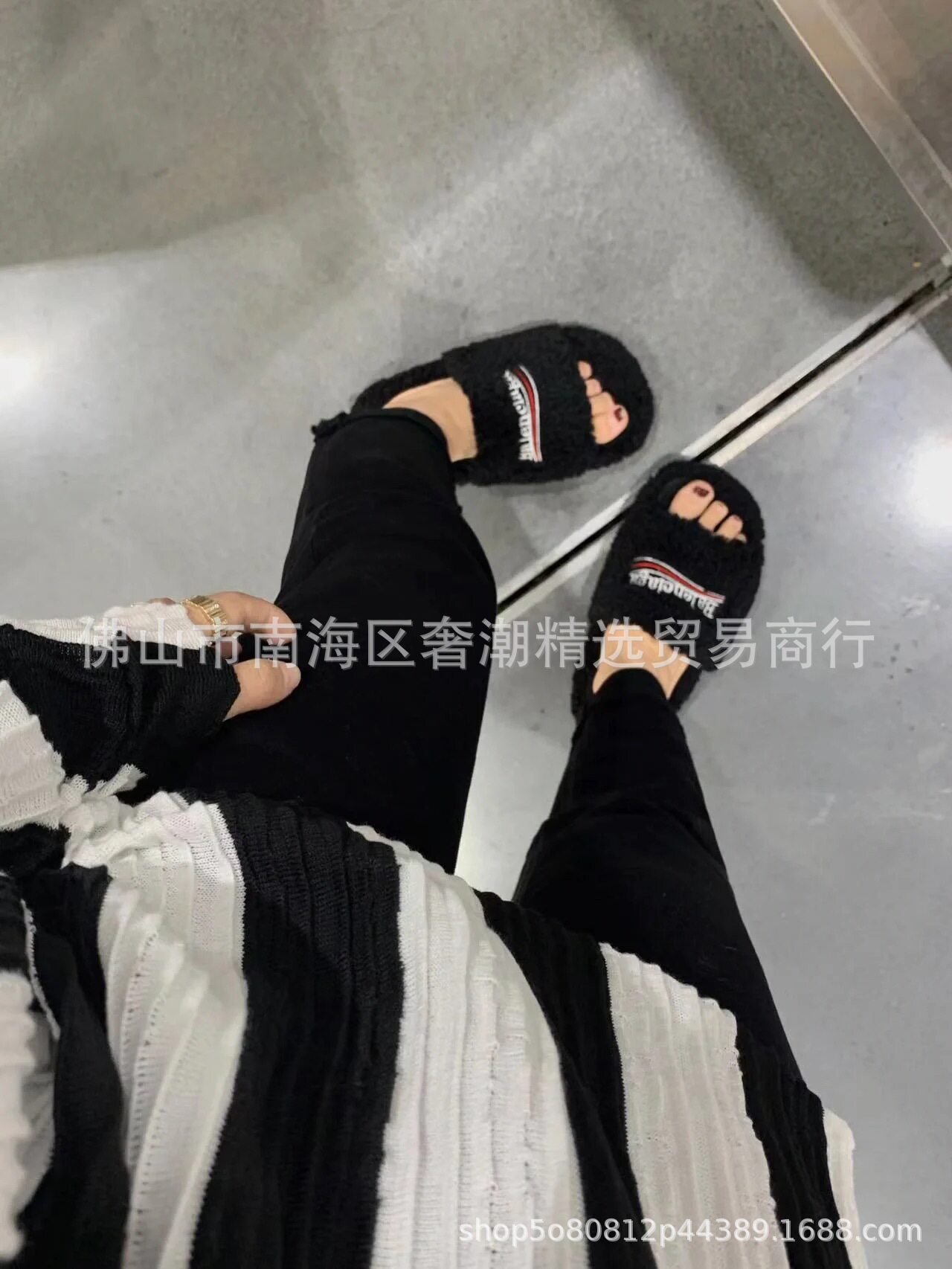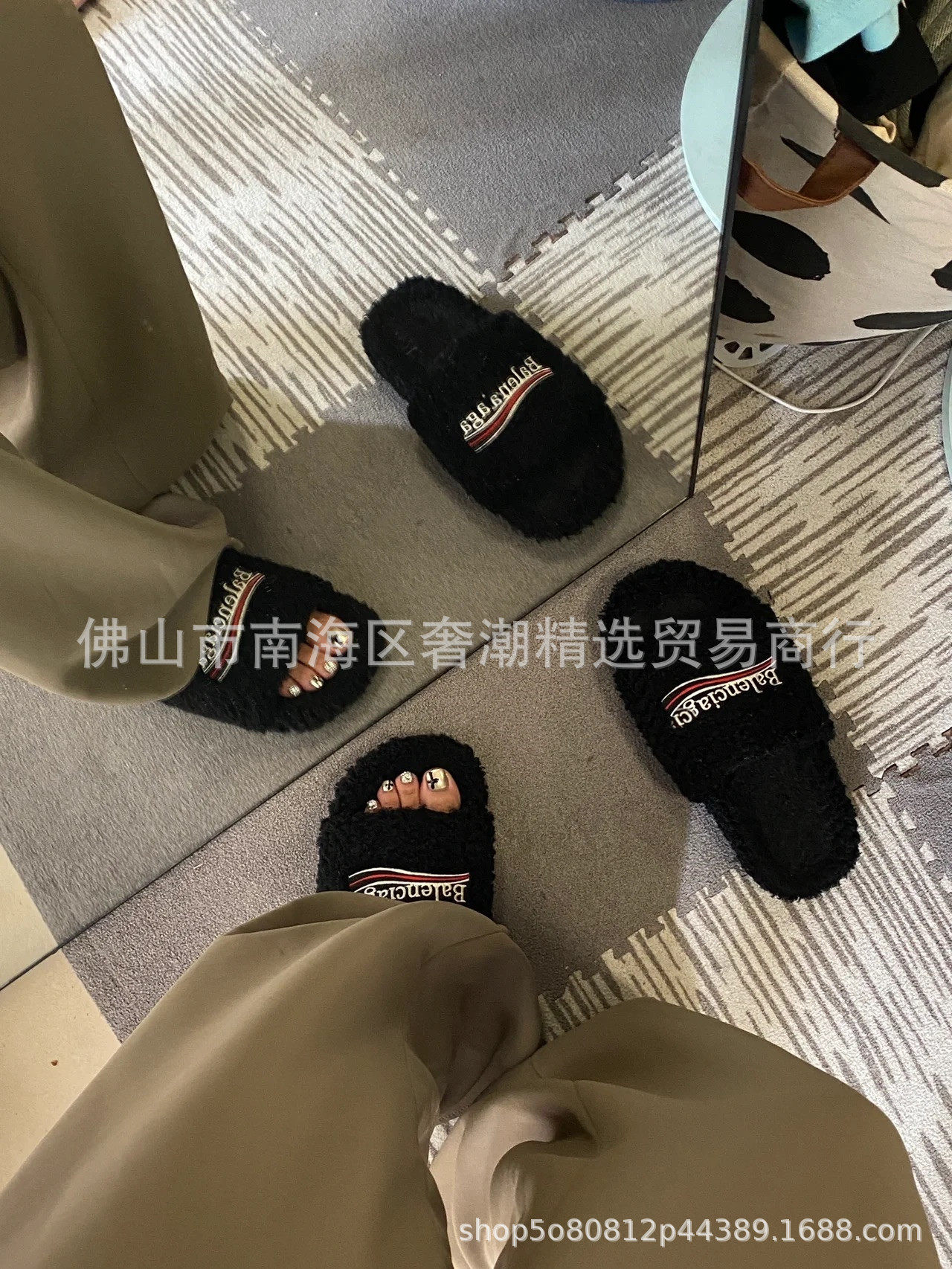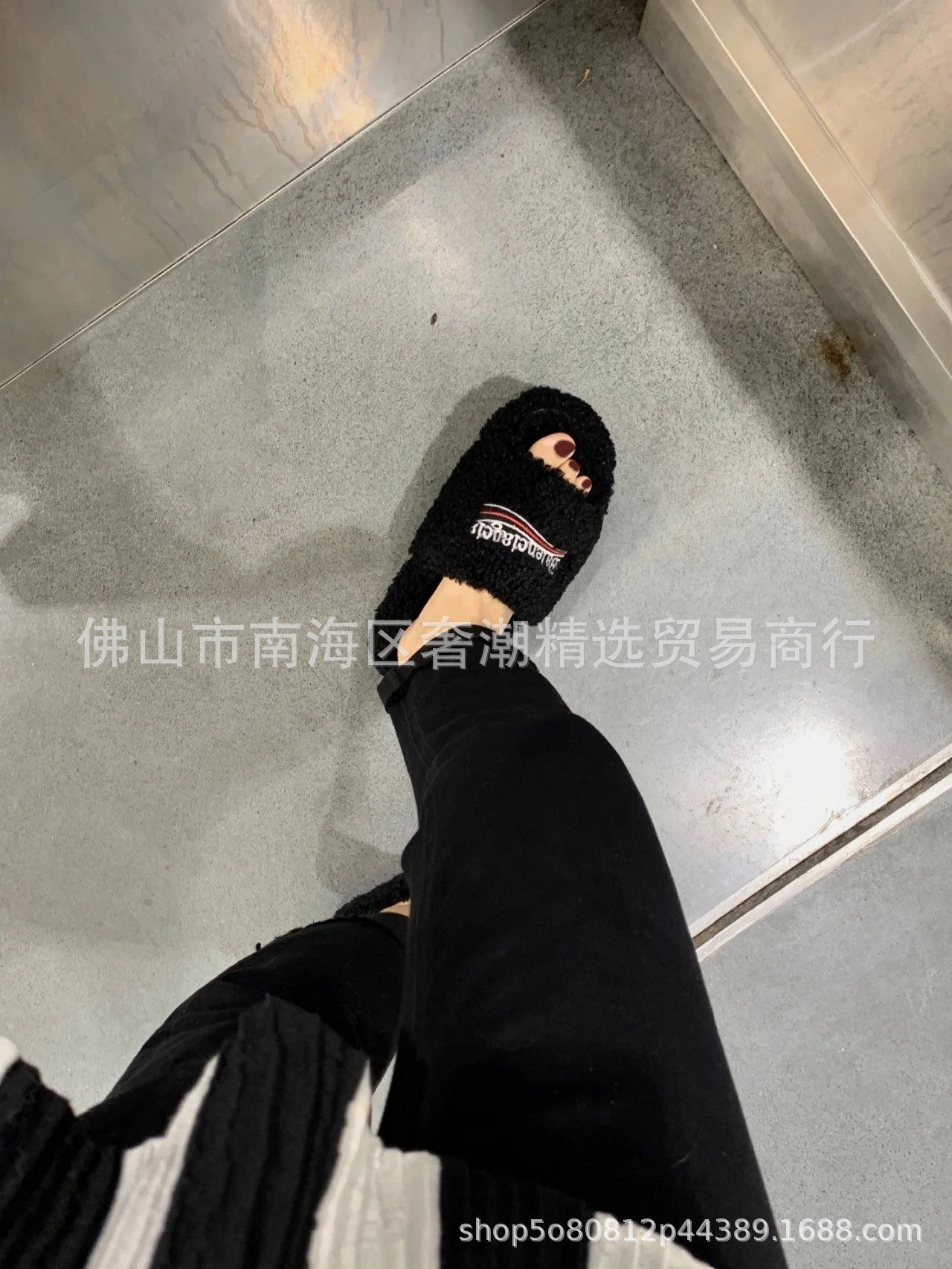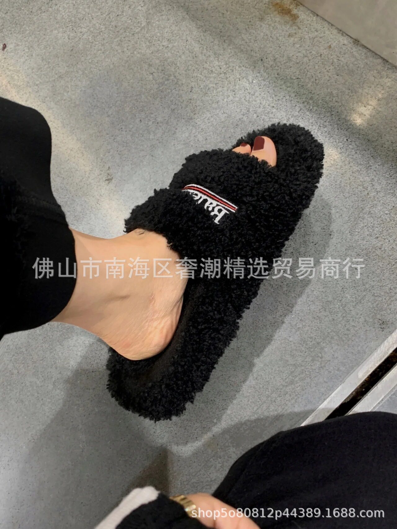 European Station Paris Furry Slippers for Women's Outer Wear 2023 Autumn and Winter Wool Lamb Fleece-Lined Family Outer Wear Slippers for Women