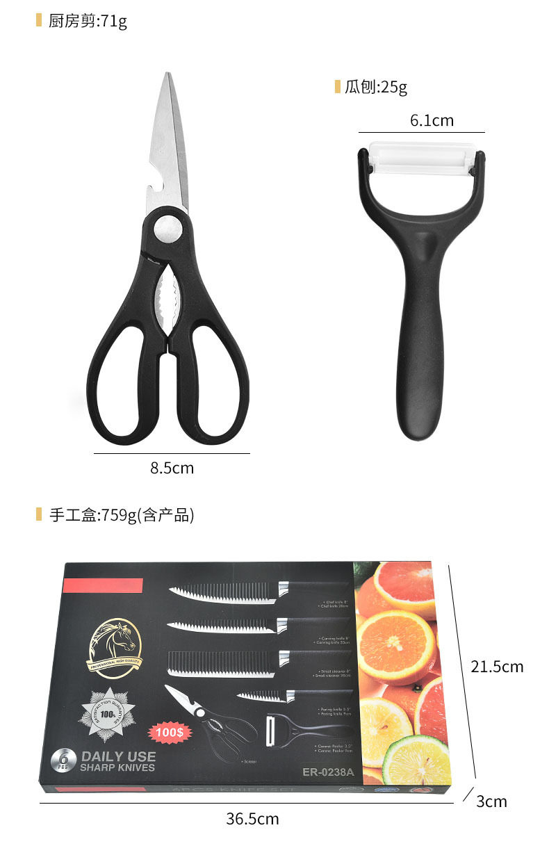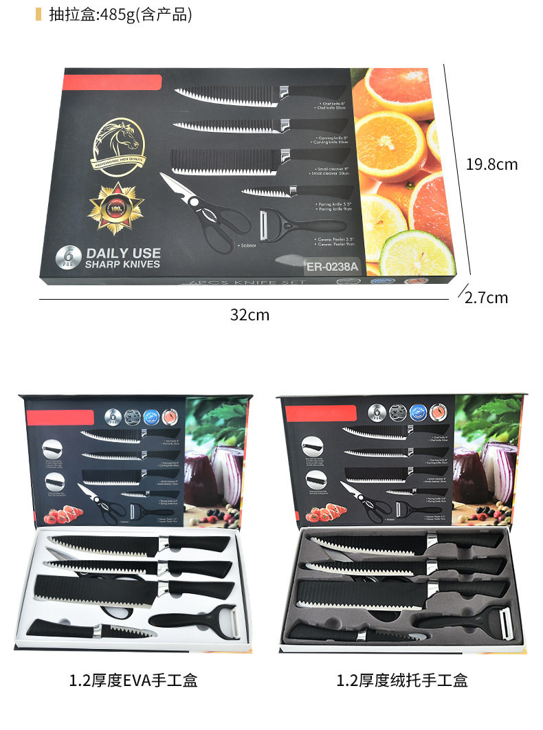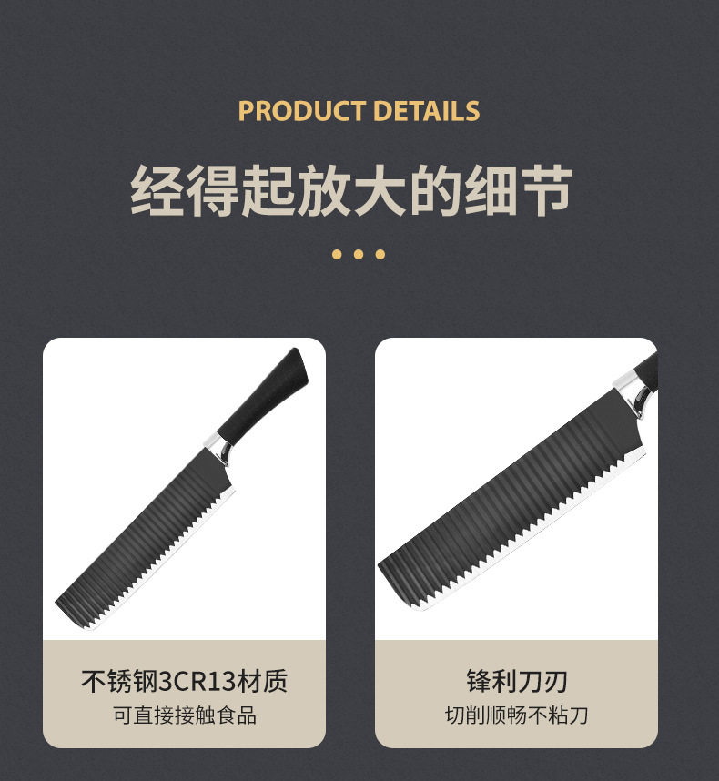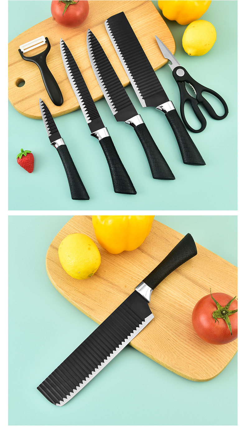 Cross-border Hot Sale 238A Six-piece Knives suit Black Wave Pattern Tie Pattern Not Stick Knives Meat Cutting Kitchen Knives suit