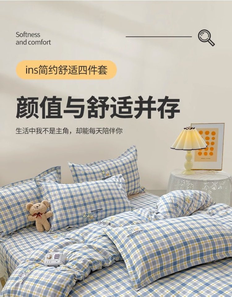 Autumn Four-Piece Bedding Set Pure Washed Cotton New Princess Style Student Dormitory Single Three-Piece Bedding Set
