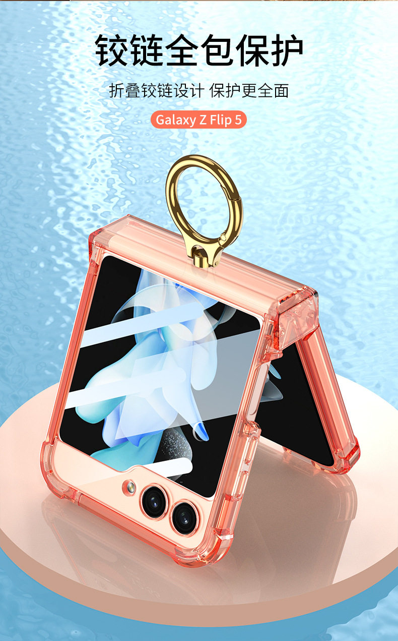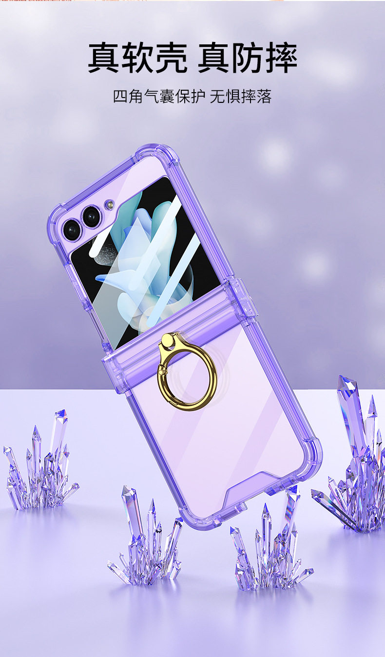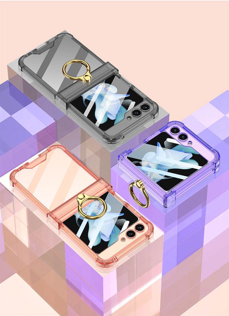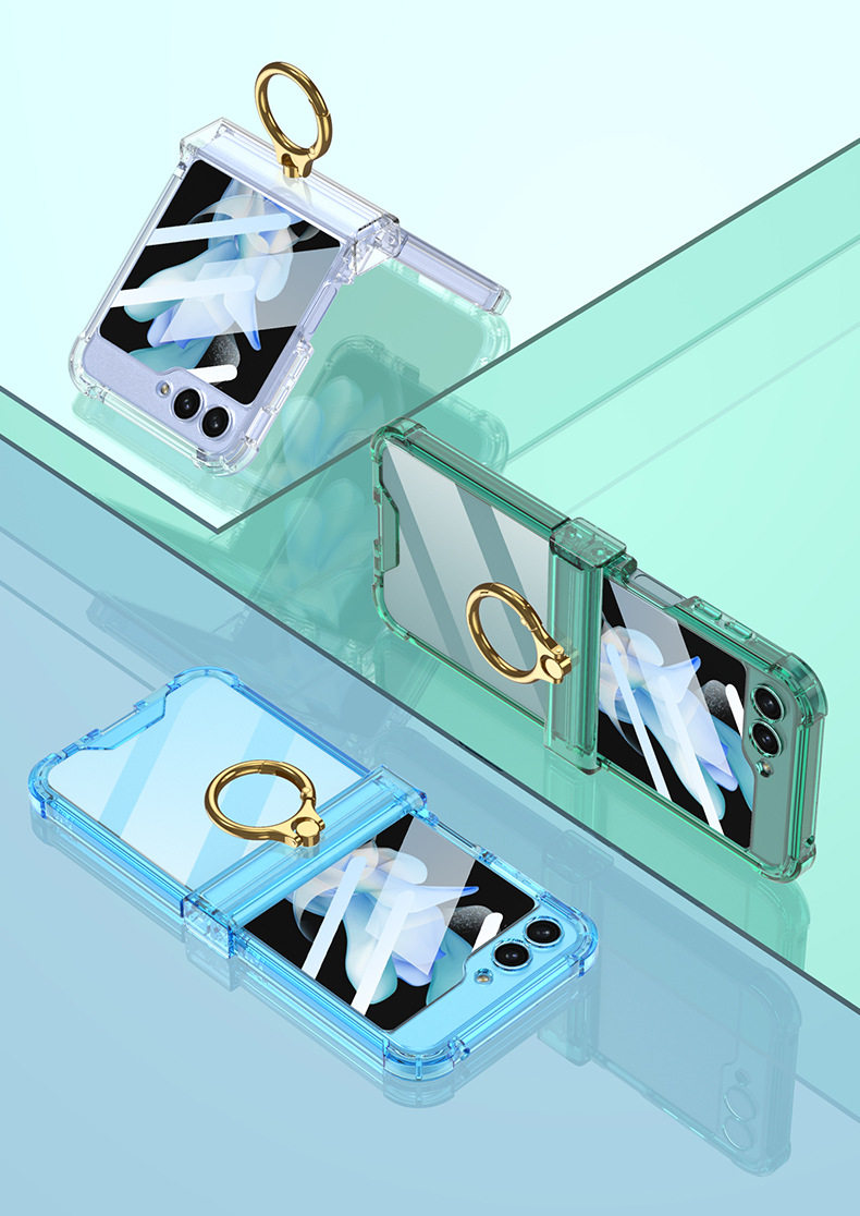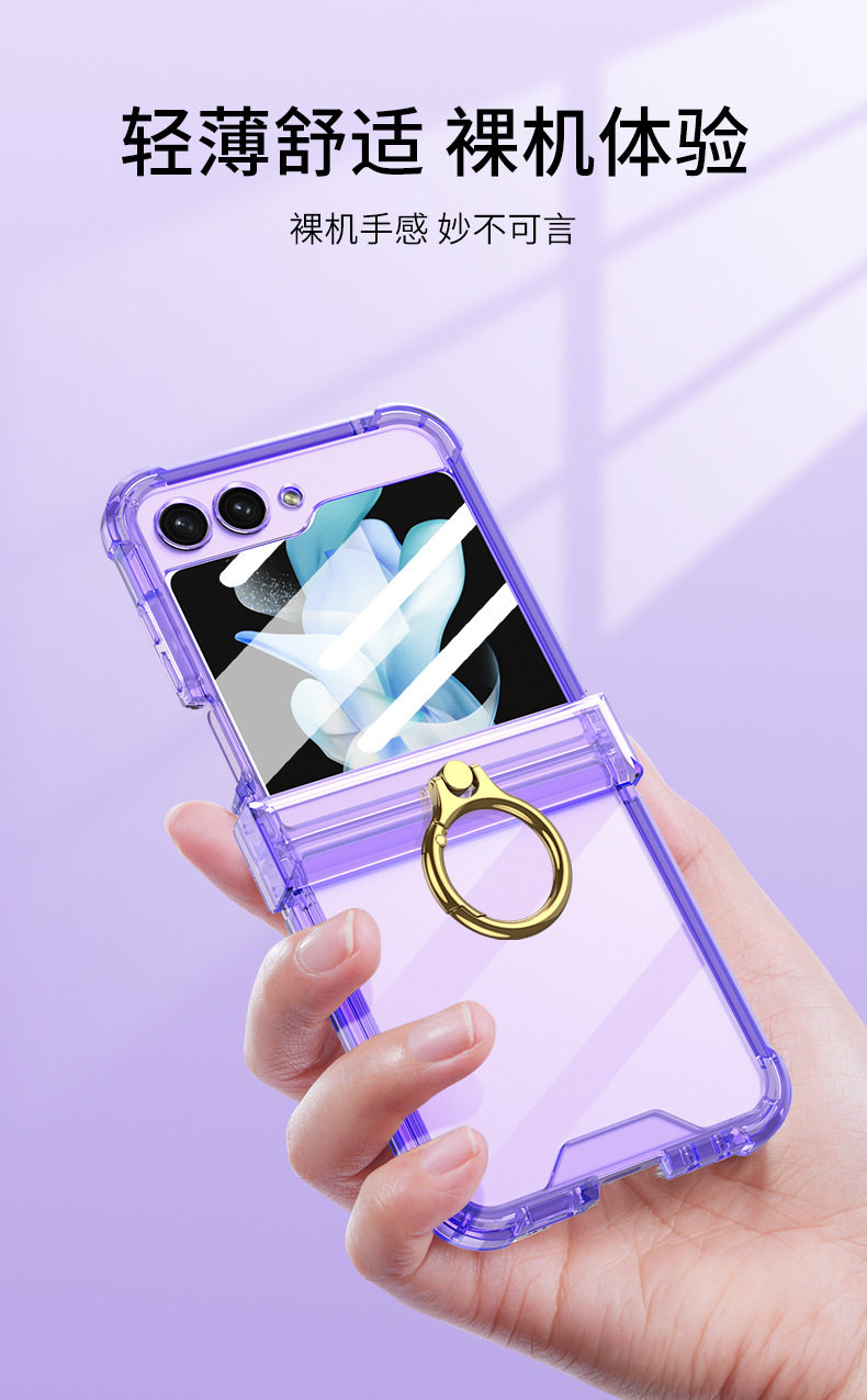 Cross-Border Applicable Samsung Zflip7 Transparent Airbag Mobile Phone Case Foldableing Zflip6 Ring Buckle with Film Protective Cover
