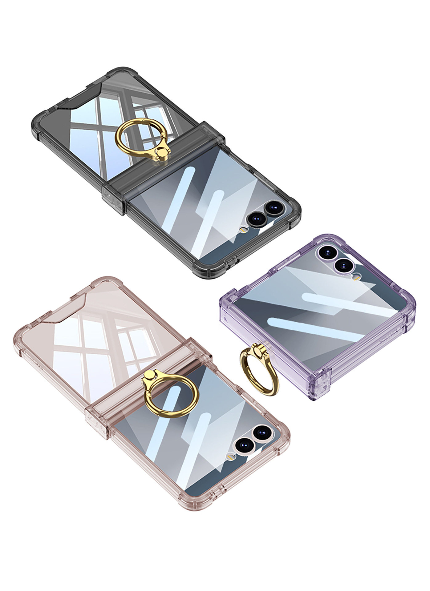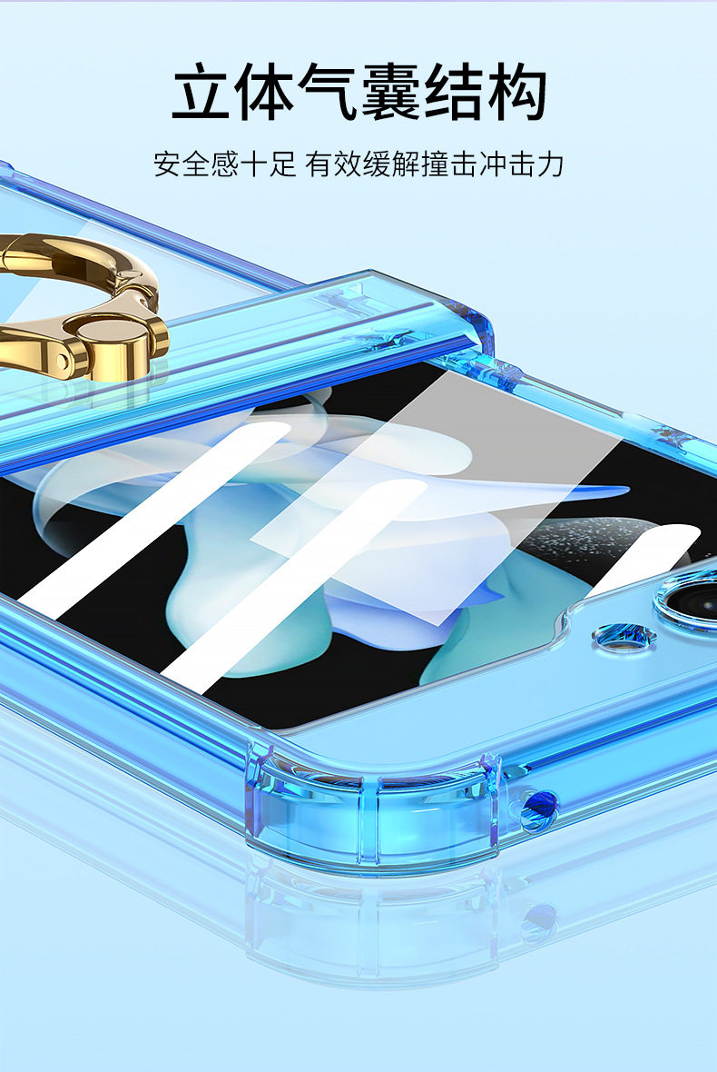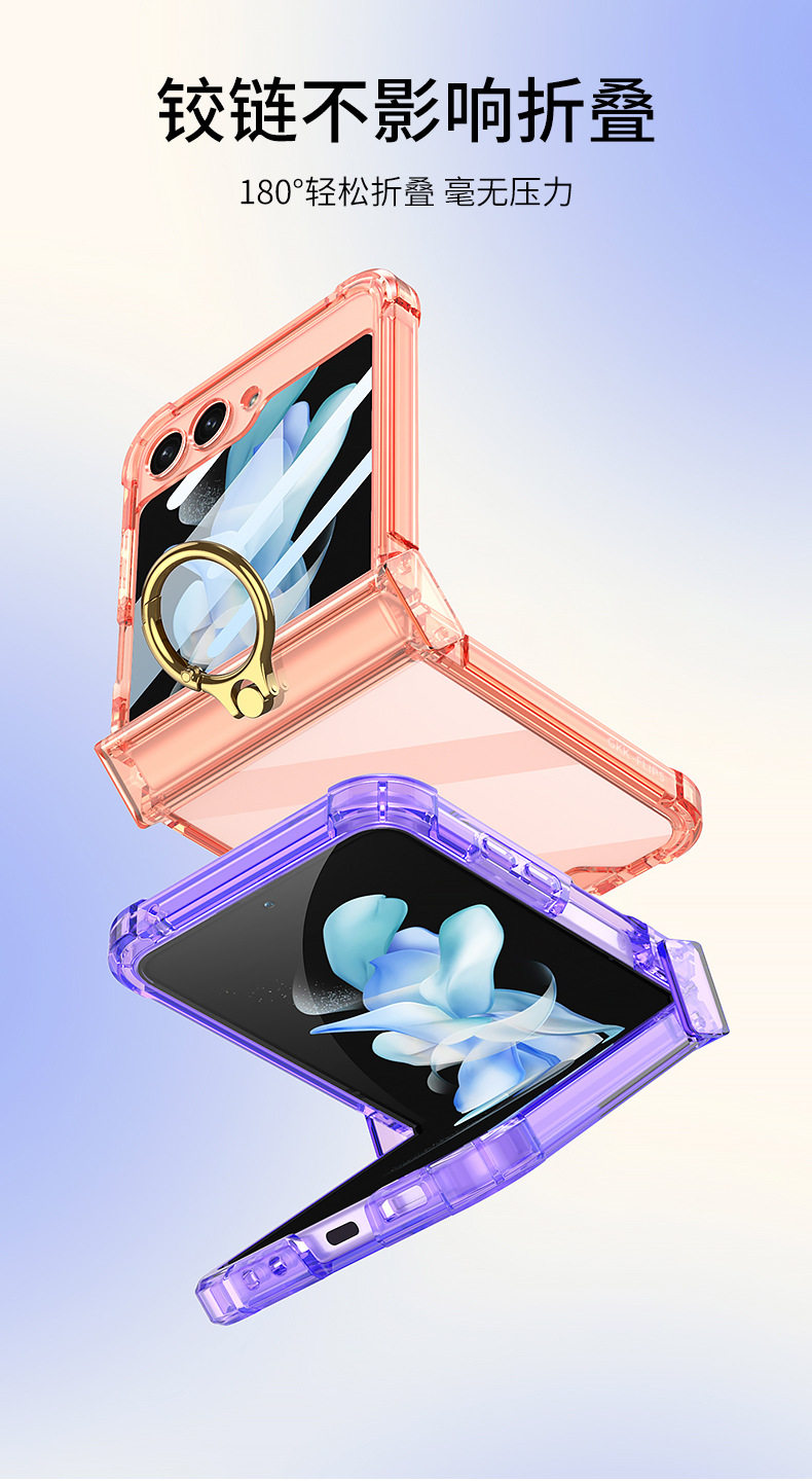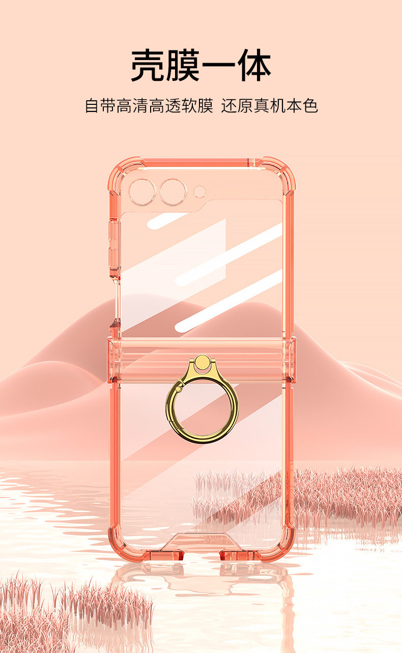 Cross-Border Applicable Samsung Zflip7 Transparent Airbag Mobile Phone Case Foldableing Zflip6 Ring Buckle with Film Protective Cover