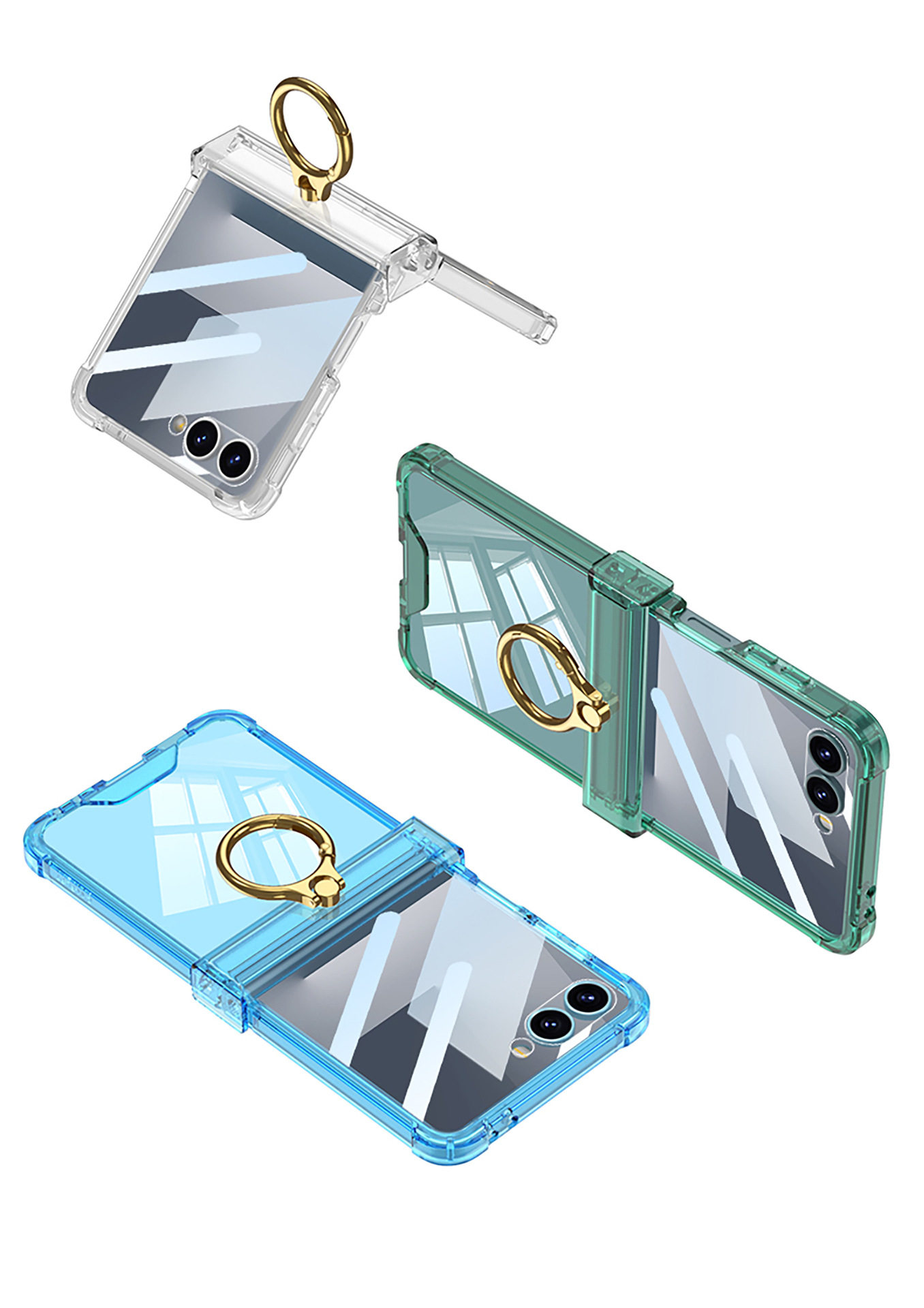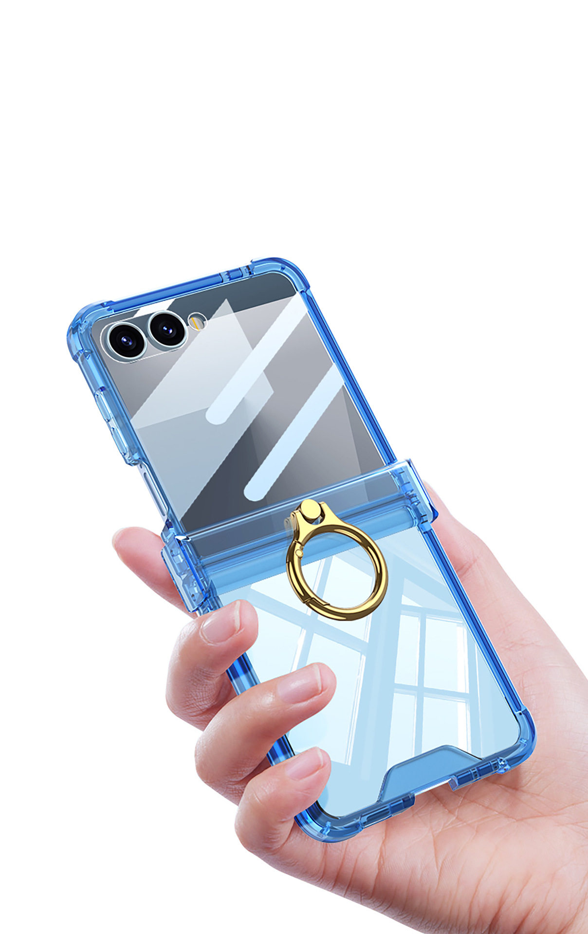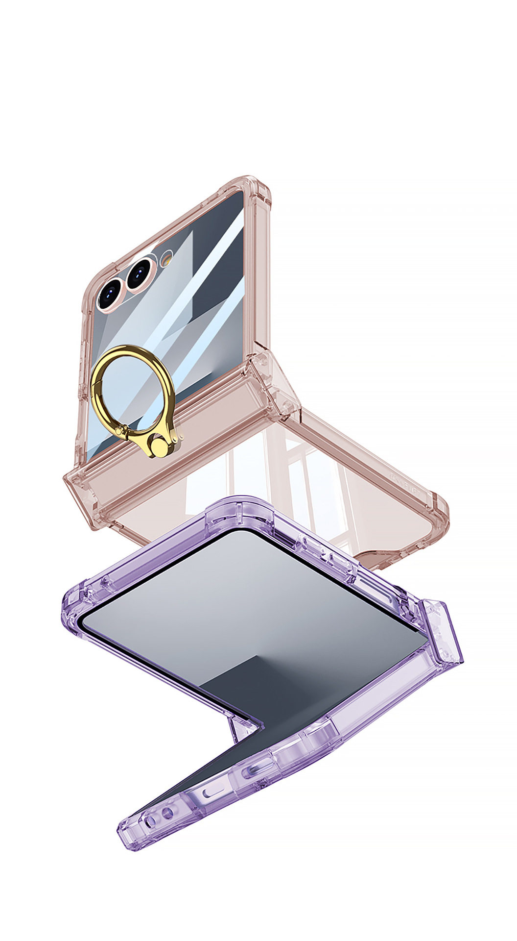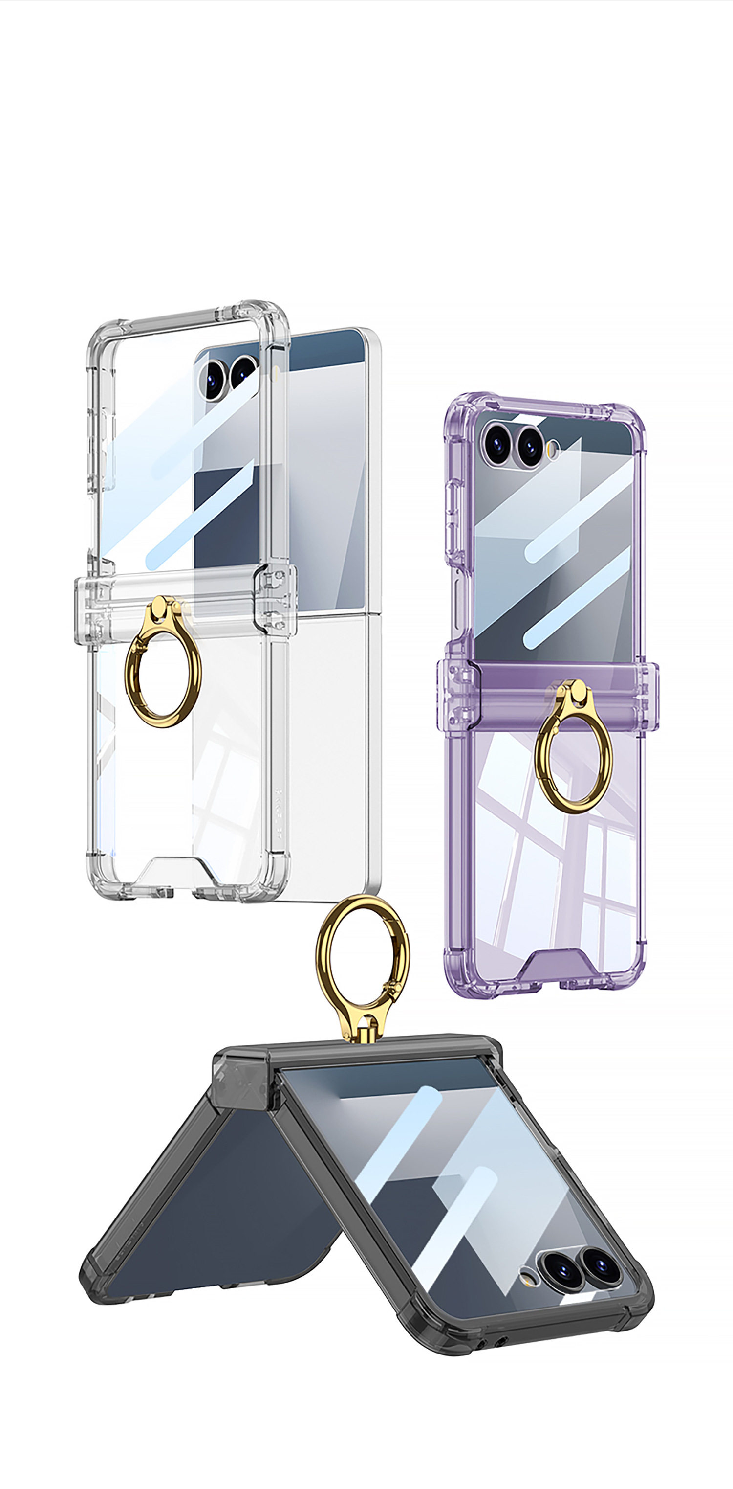 Cross-Border Applicable Samsung Zflip7 Transparent Airbag Mobile Phone Case Foldableing Zflip6 Ring Buckle with Film Protective Cover