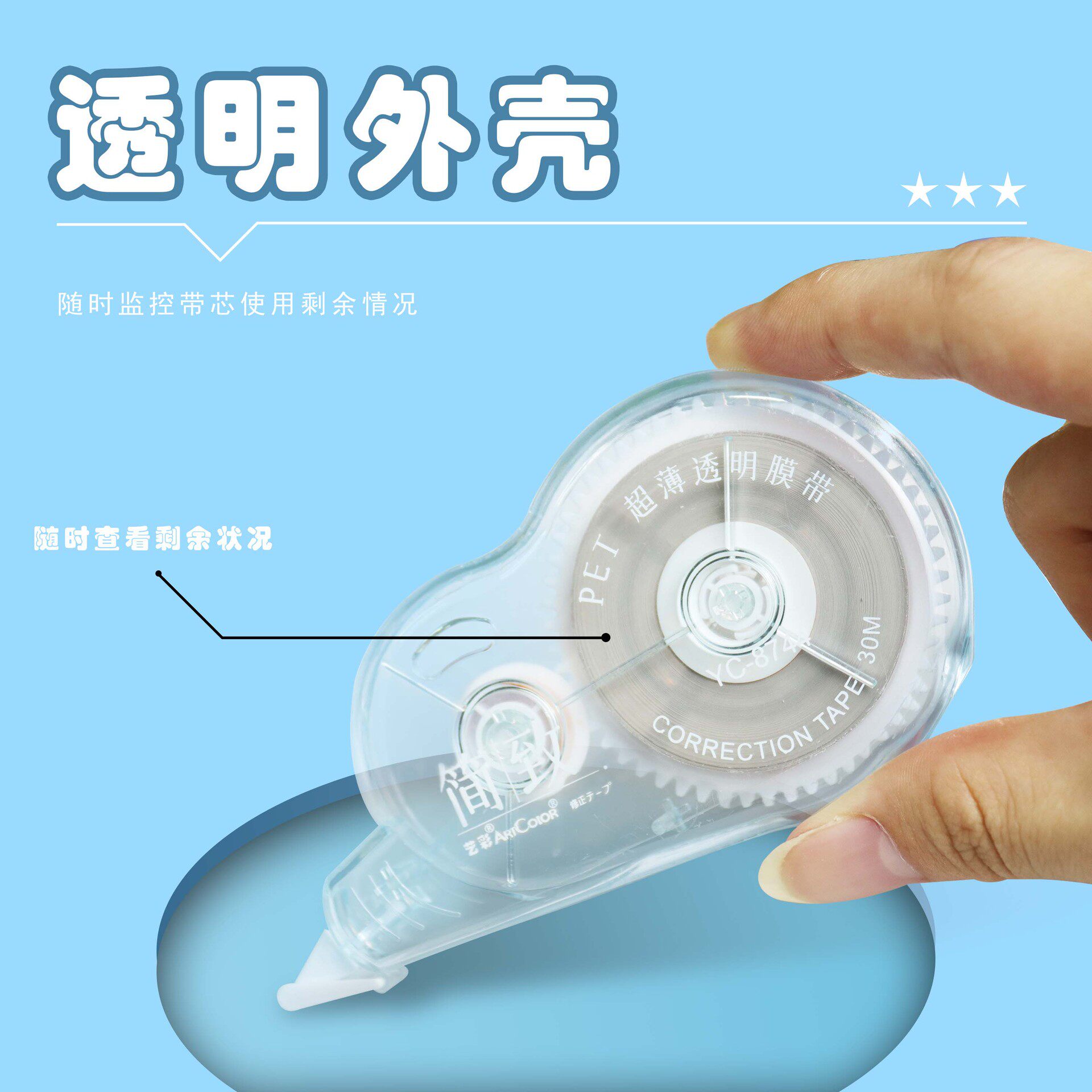 School supplies elementary school student kaleidoscope correction tape gradient correction tape 30 m large capacity cute correction tape New