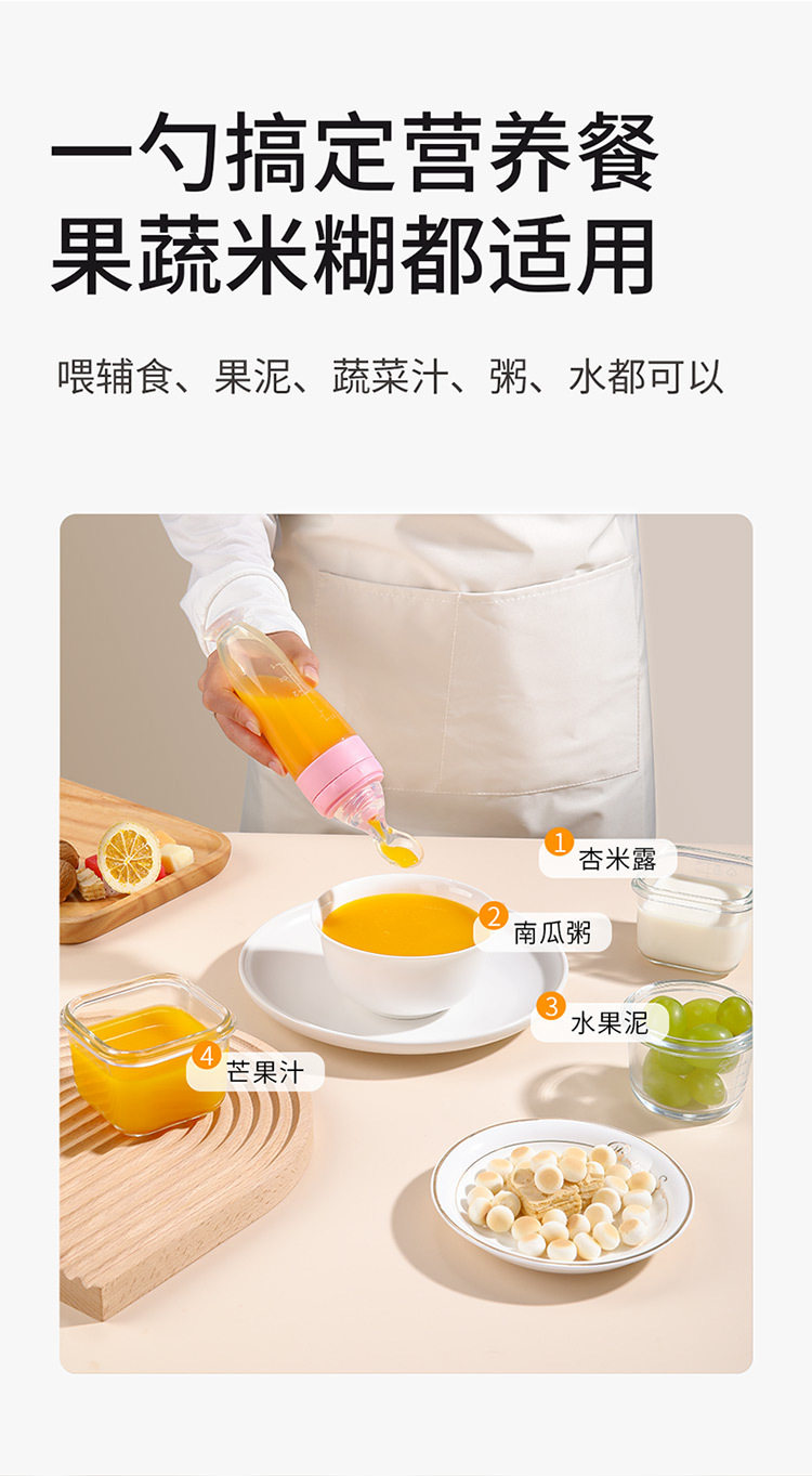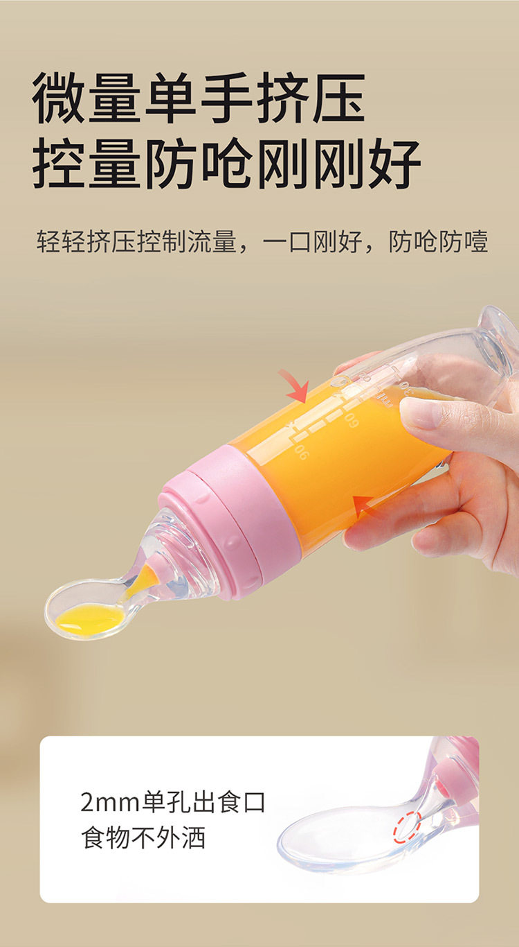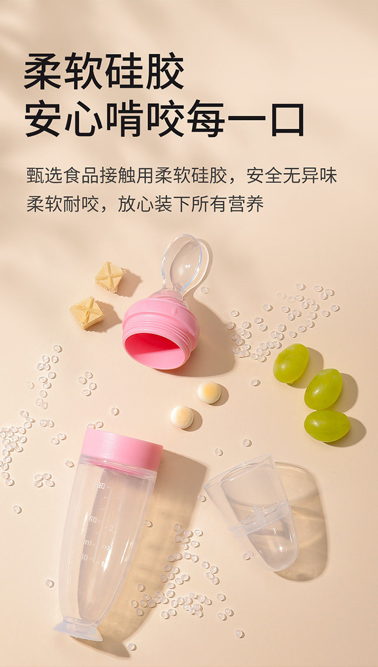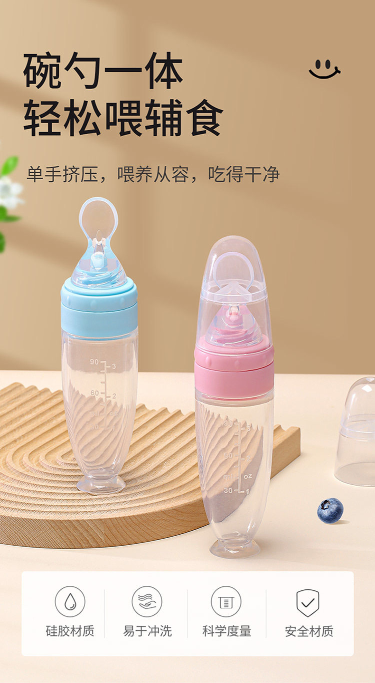 Baby rice paste spoon feeding bottle squeeze type feeding silicone soft spoon baby food supplement tool bowl rice flour feeding artifact