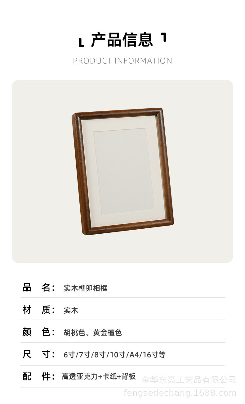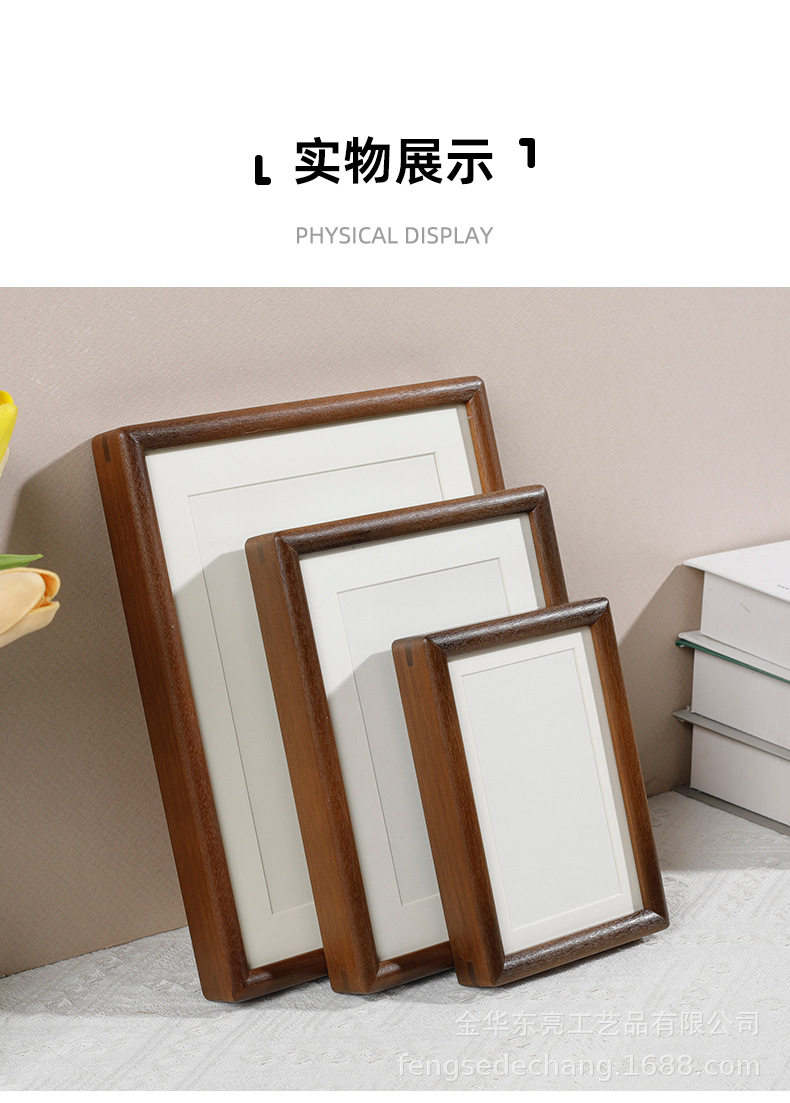 Solid wood mortise black walnut rounded photo frame decoration 6 7 8 10 inch couple photo frame wall hanging factory wholesale