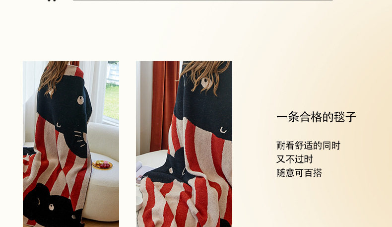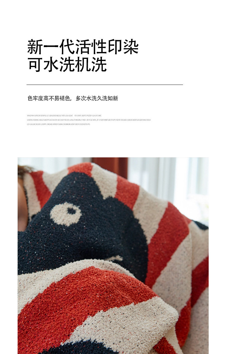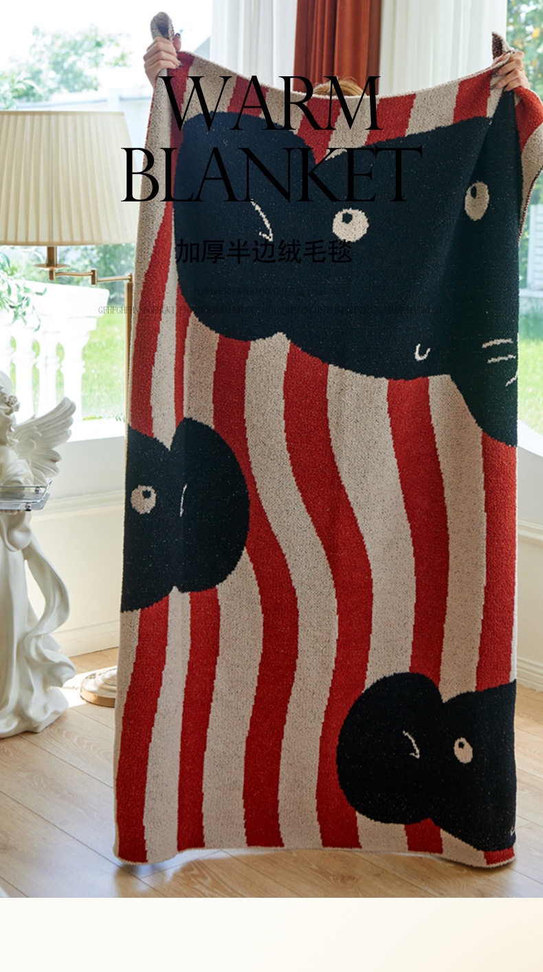 Cartoon French Bulldog Elephant Half-Fleece Knitted Blanket Sofa Throw Blanket Shawl Blanket Picnic Outdoor Ins Style