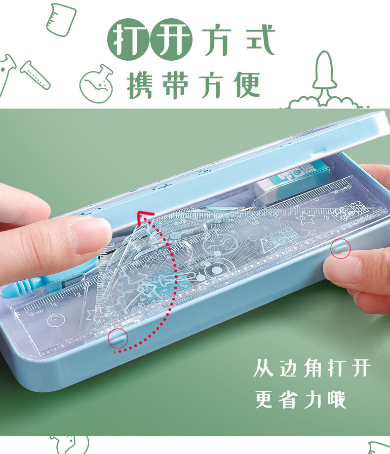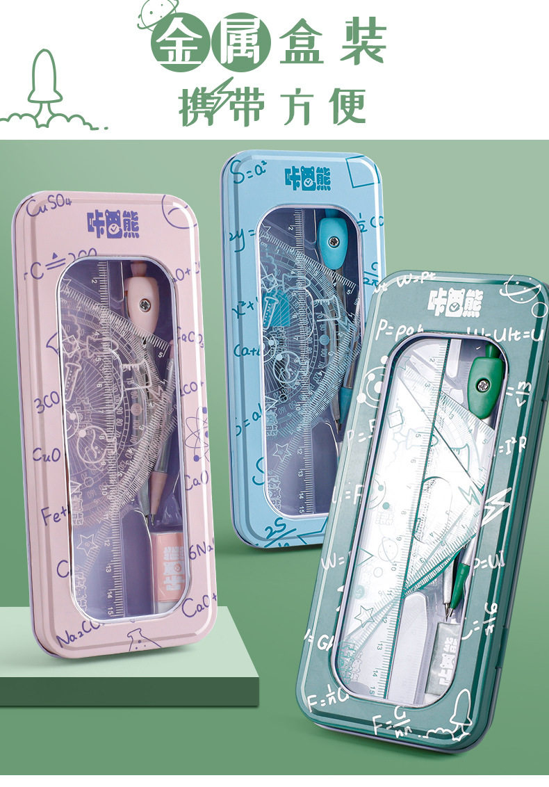 Kaba bear student special compasses suit triangle ruler ruler primary school student set ruler examination multifunctional learning supplies