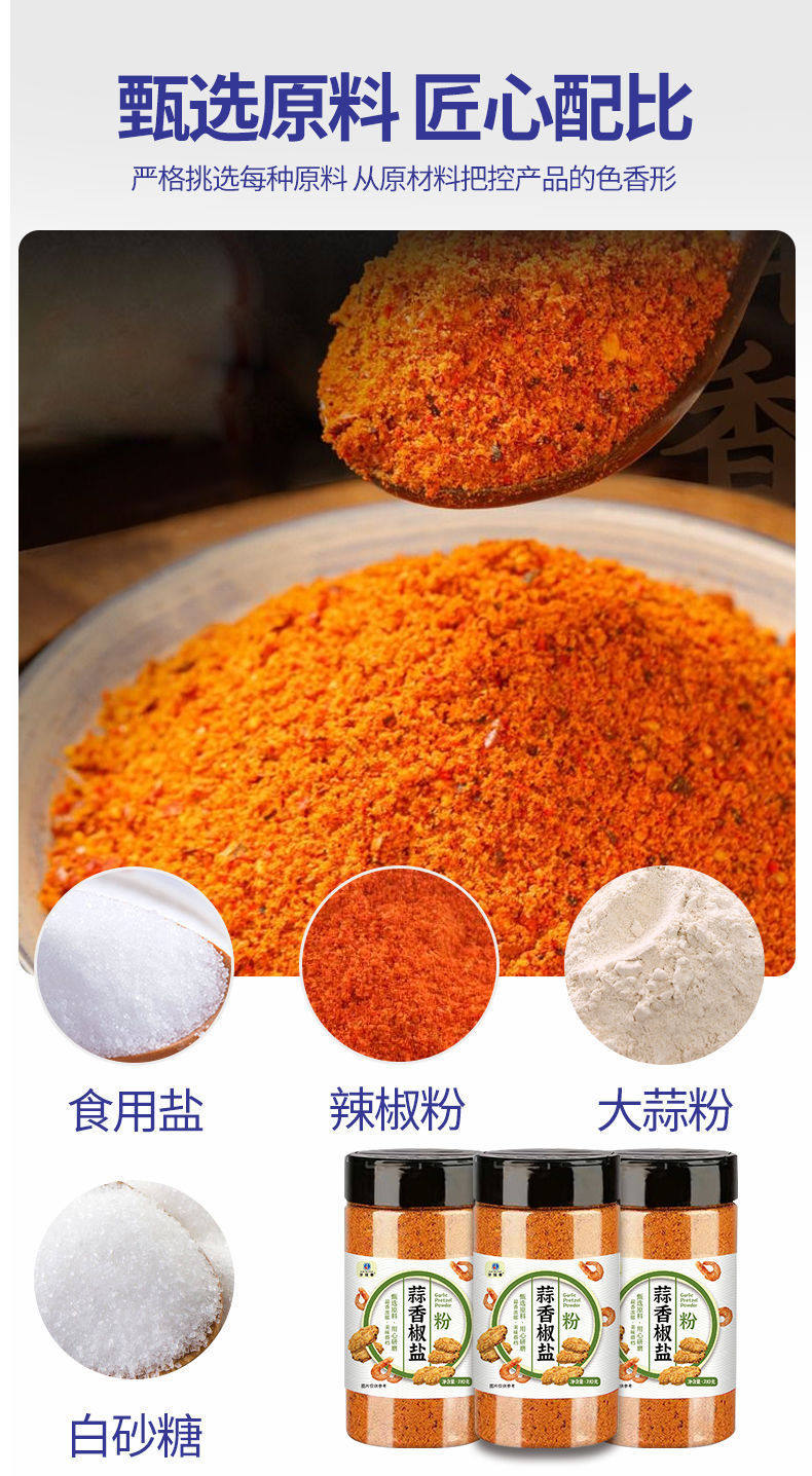 Garlic pepper salt powder seasoning package chili powder cumin barbecue fried teppanyaki fresh food for everyone