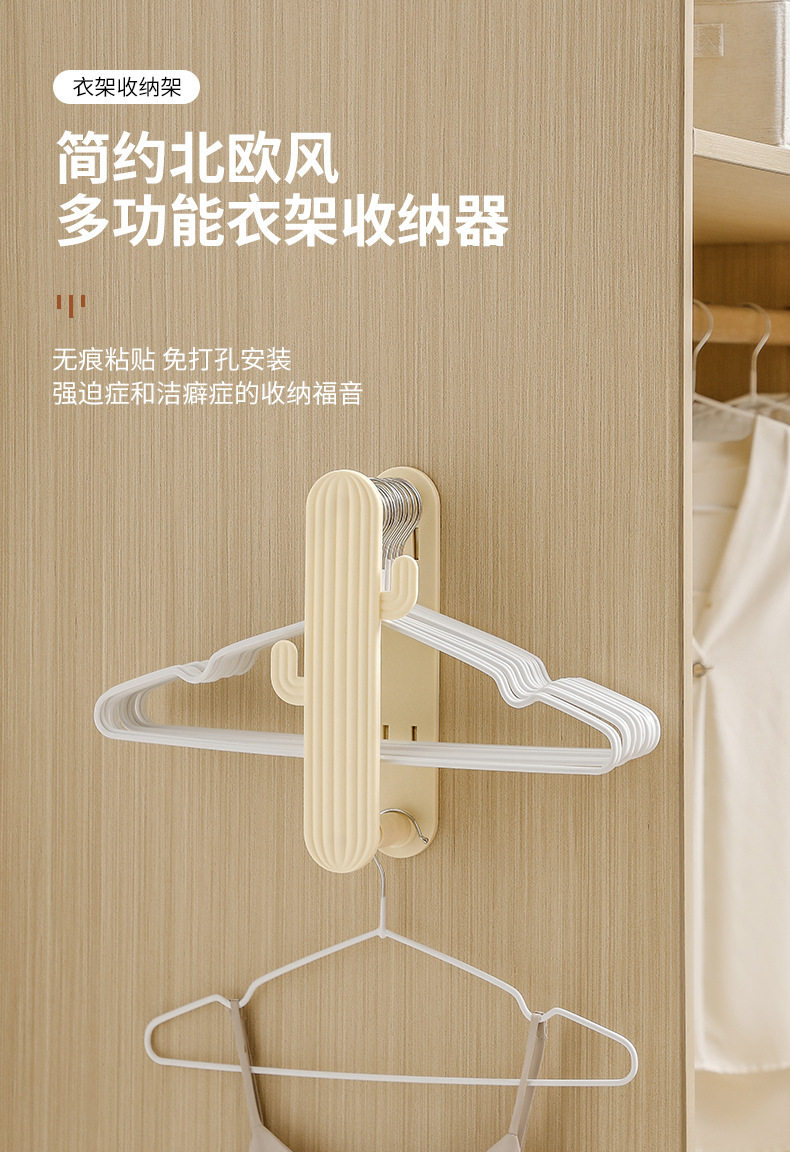 Retractable clothes hanger organizer punch-free household balcony wall hanging clothes hanger organizing rack multifunctional storage rack