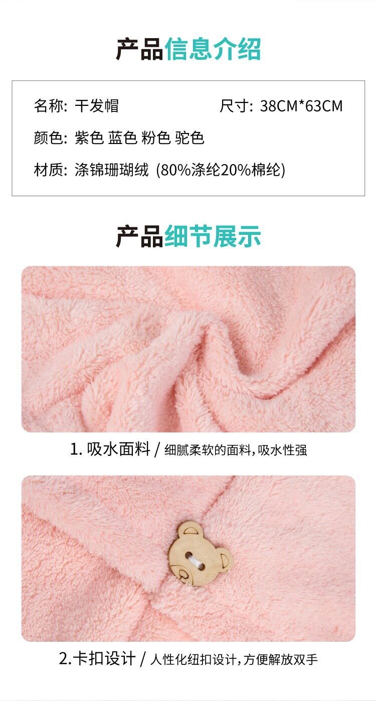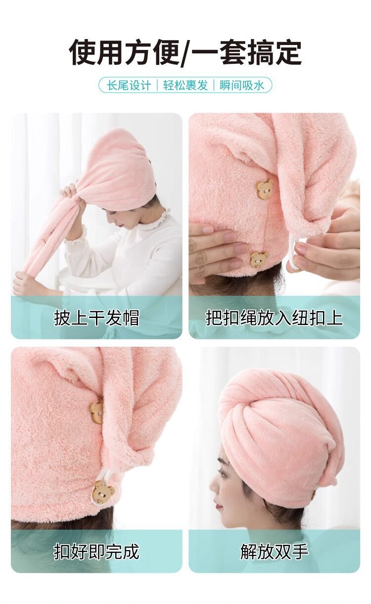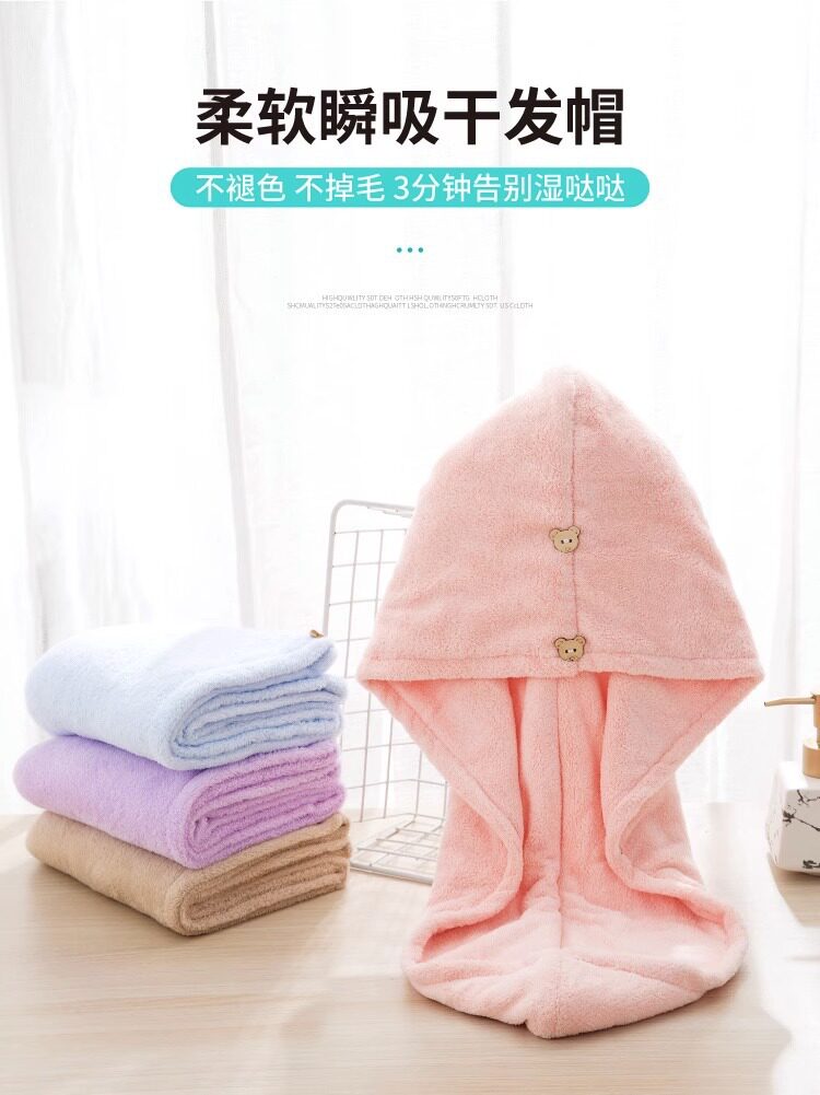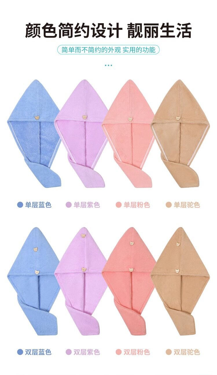Solid color double-layer hair drying cap female super absorbent quick-drying children's bag hair towel shower cap hair drying towel female