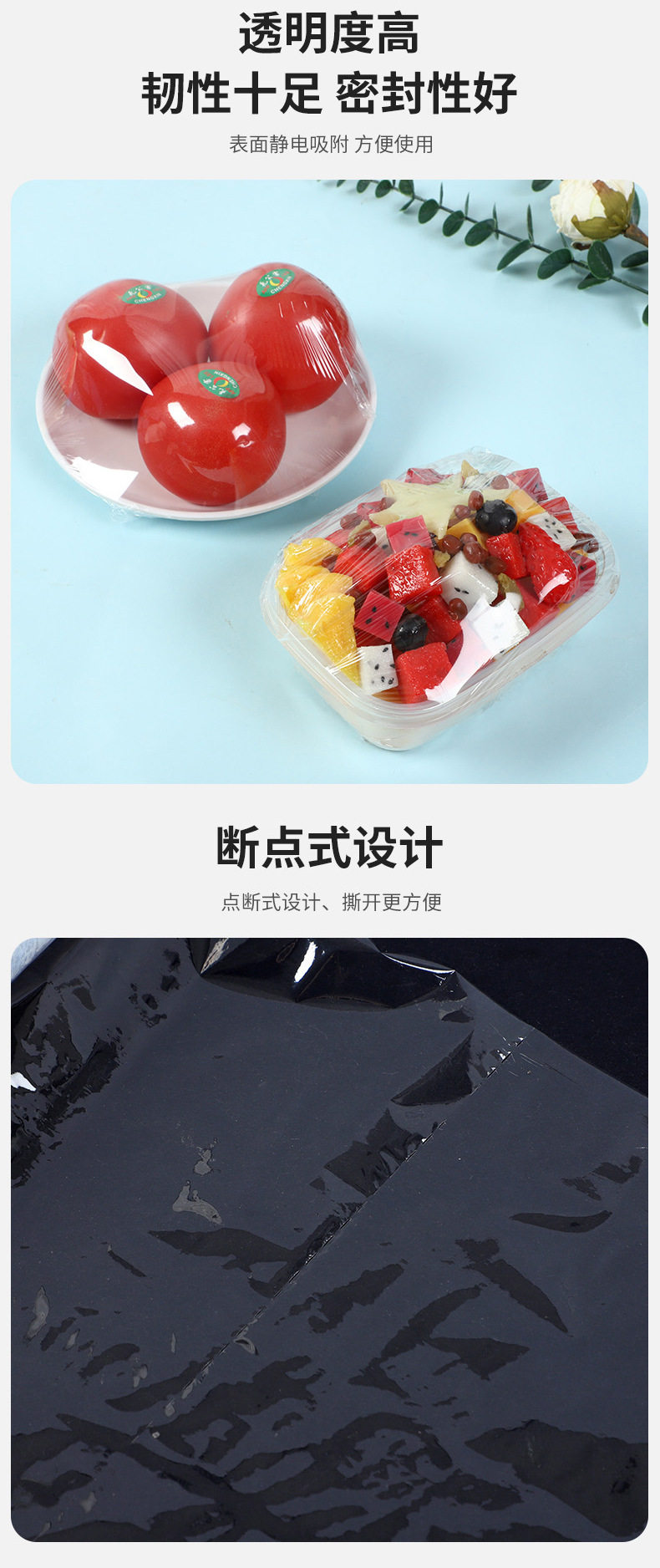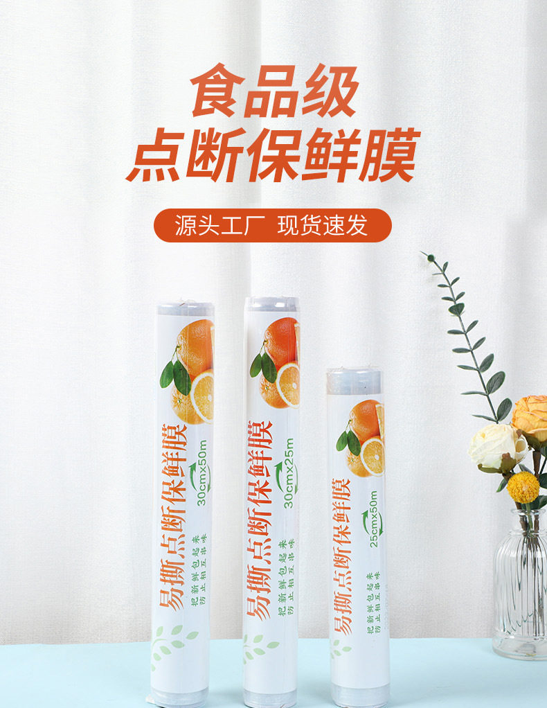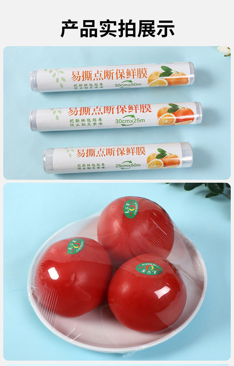 Longmian Mountain No-Cut Point-Break Pe Cling Film Kitchen Household Food-Grade Disposable Cling Film Household Large Roll