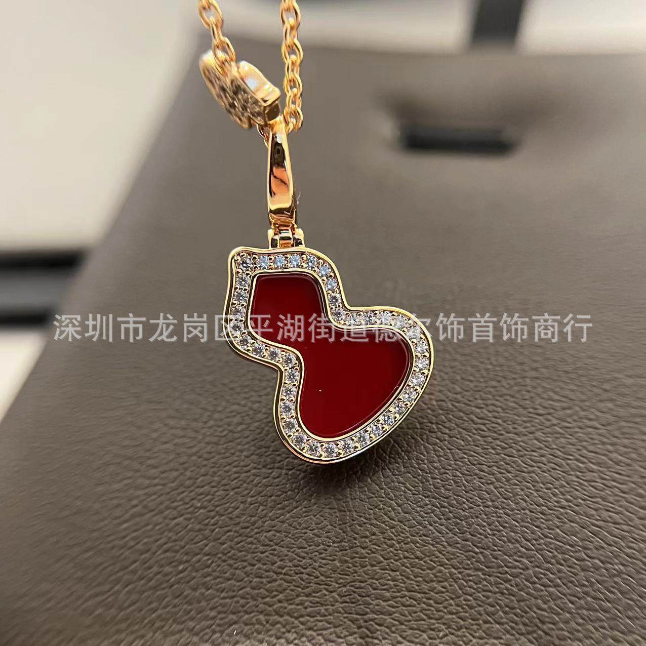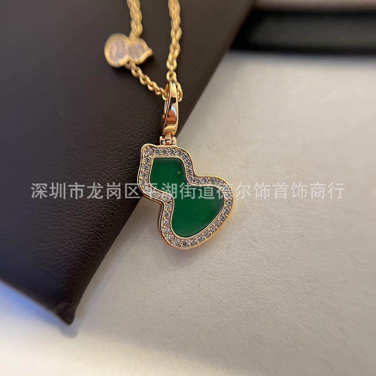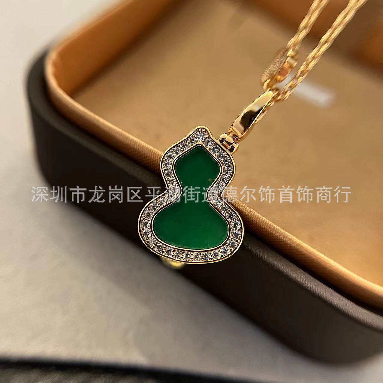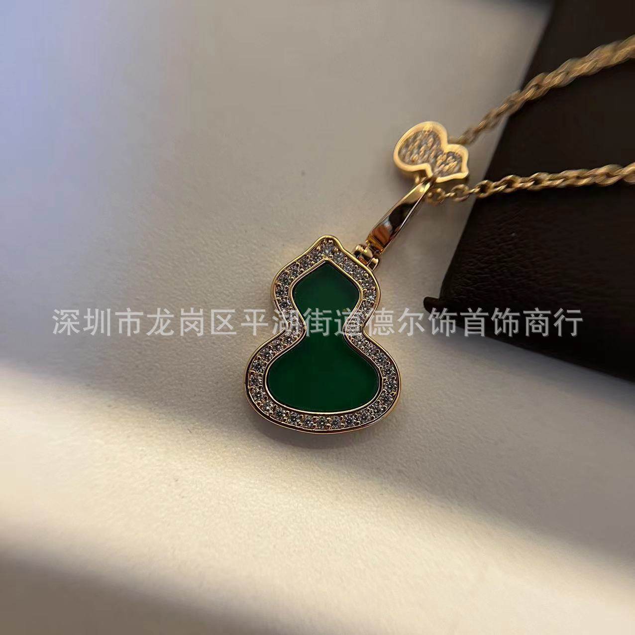 V gold material high quality medium gourd necklace White fritillary Red chalcedony green jade Chinese style elements all-match style