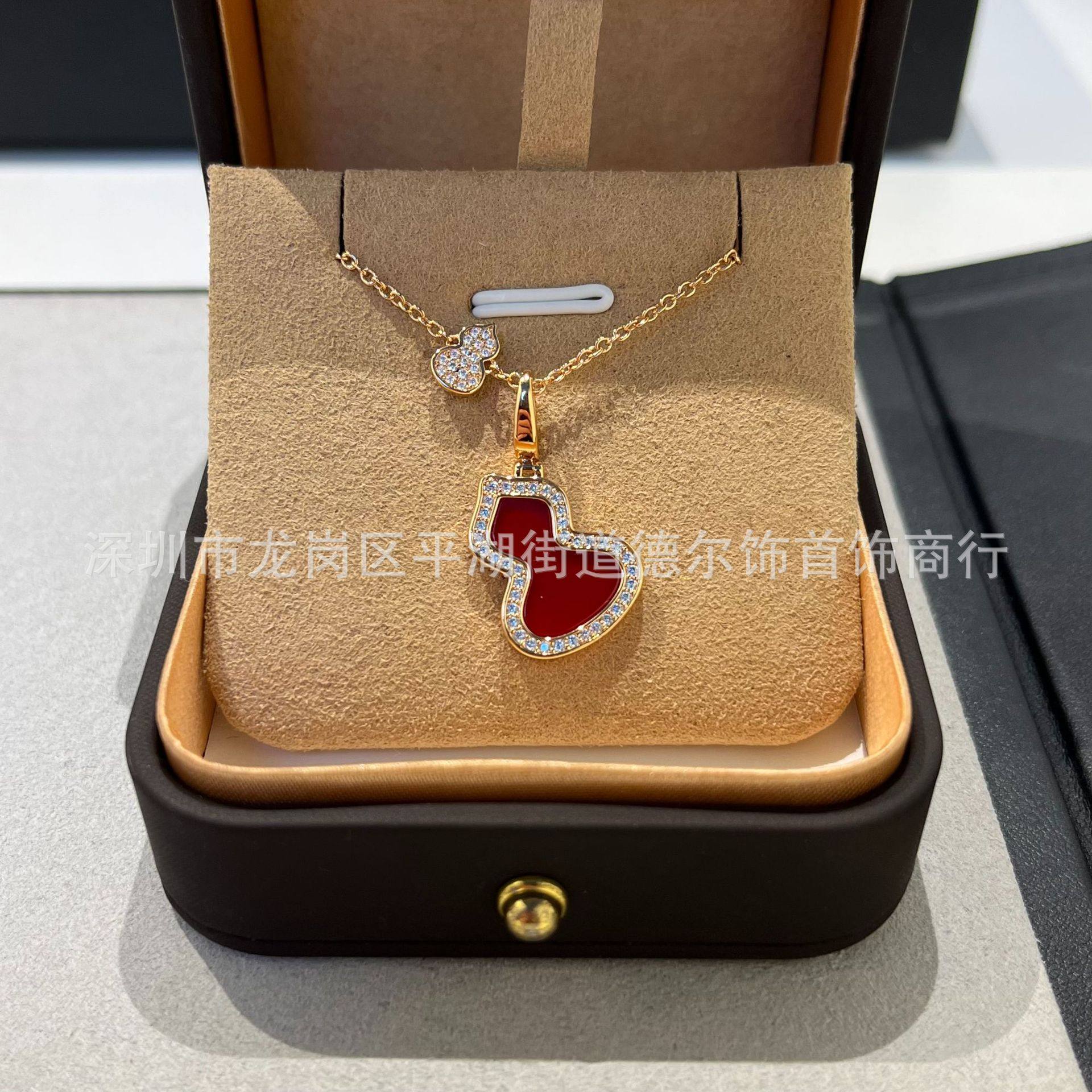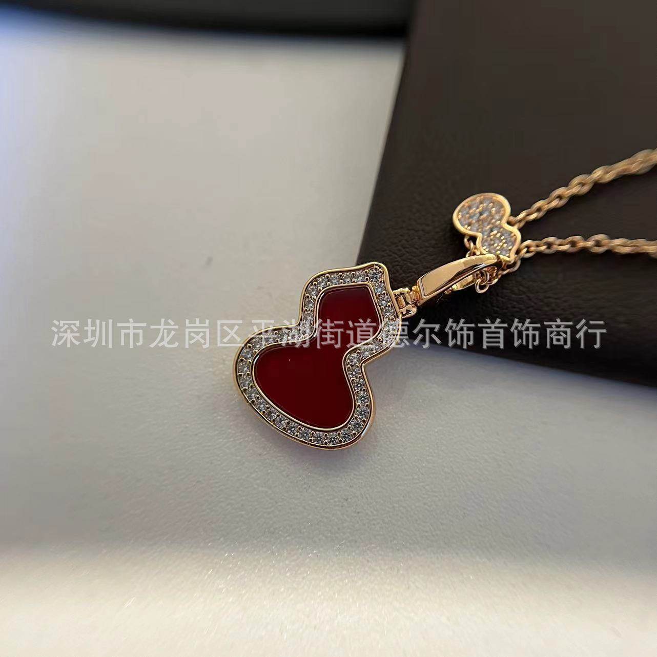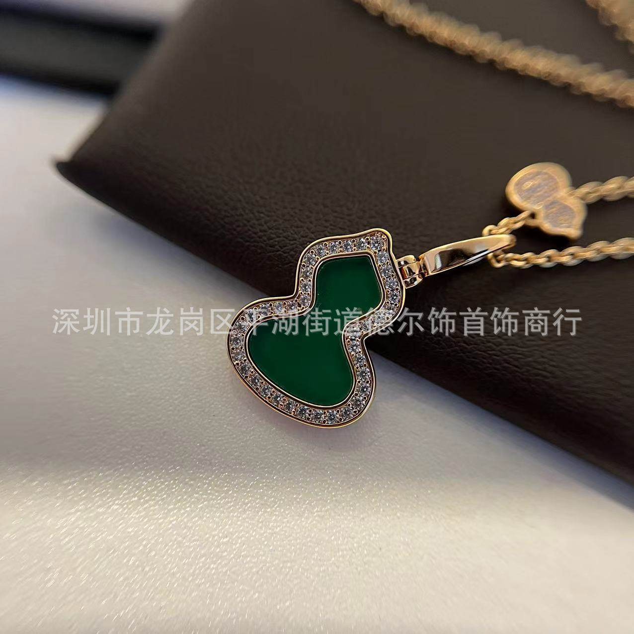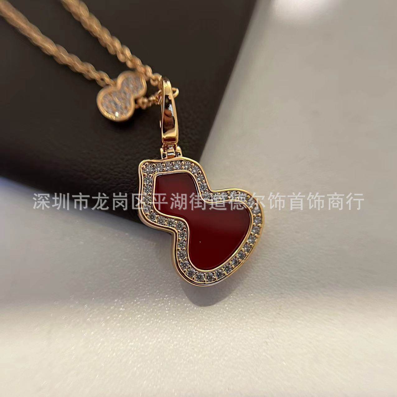 V gold material high quality medium gourd necklace White fritillary Red chalcedony green jade Chinese style elements all-match style