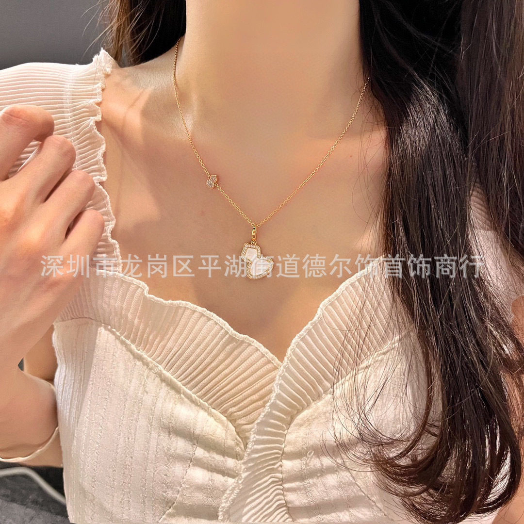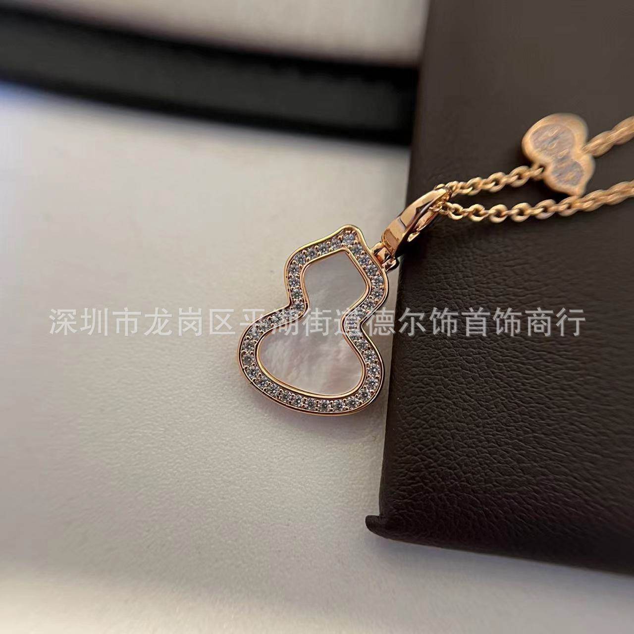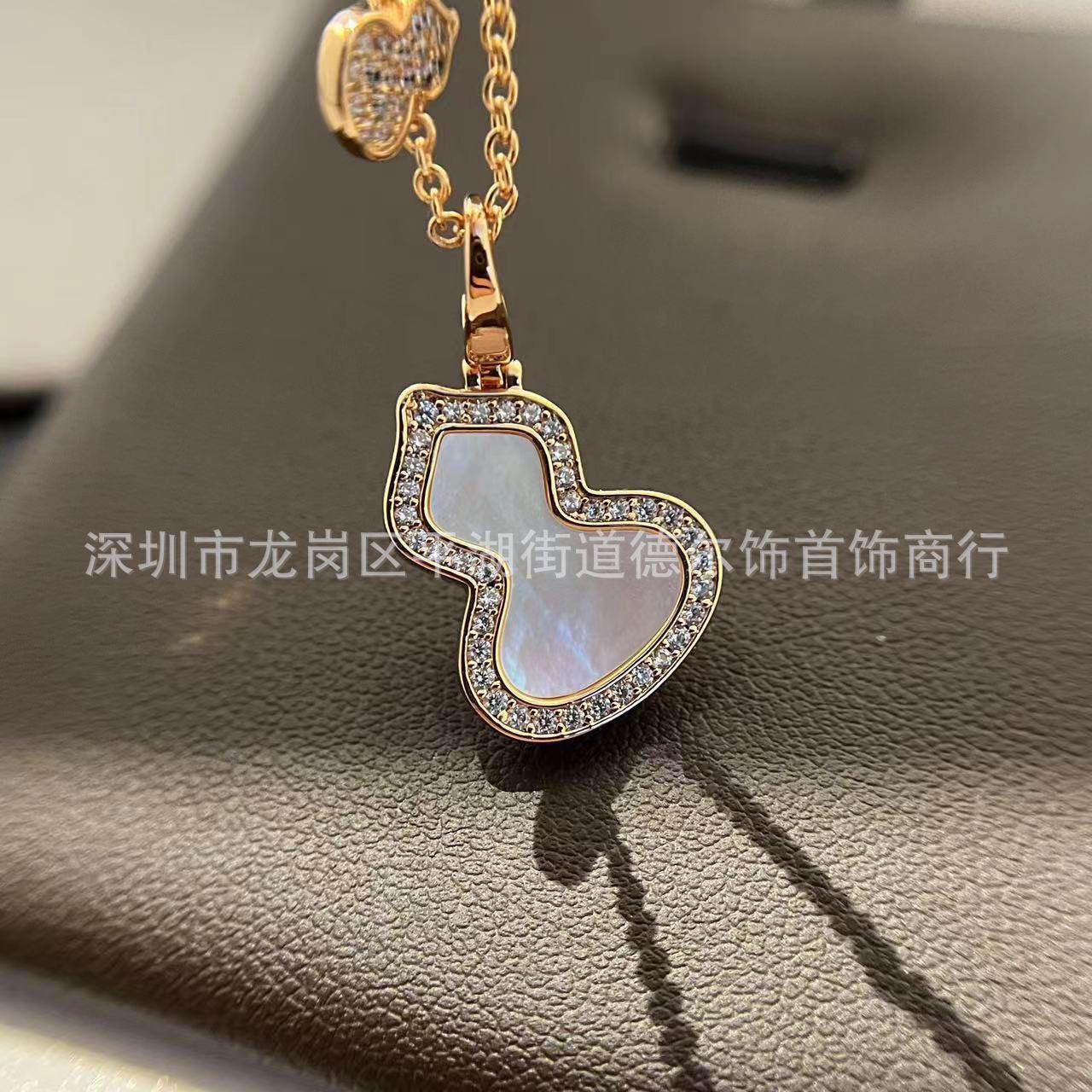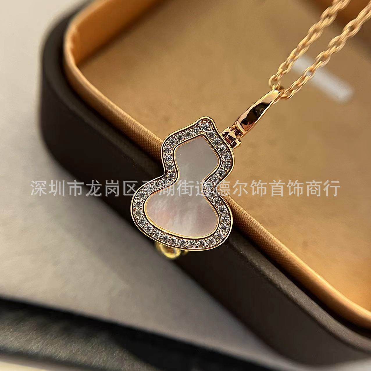 V gold material high quality medium gourd necklace White fritillary Red chalcedony green jade Chinese style elements all-match style