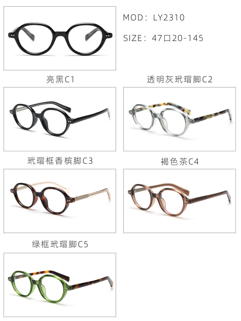 2310 Personalized Retro Oval Men's and Women's Literary Myopia Glasses Frames Trendy Flat Frames Plate Feet Can Be Matched with Prescription Trend