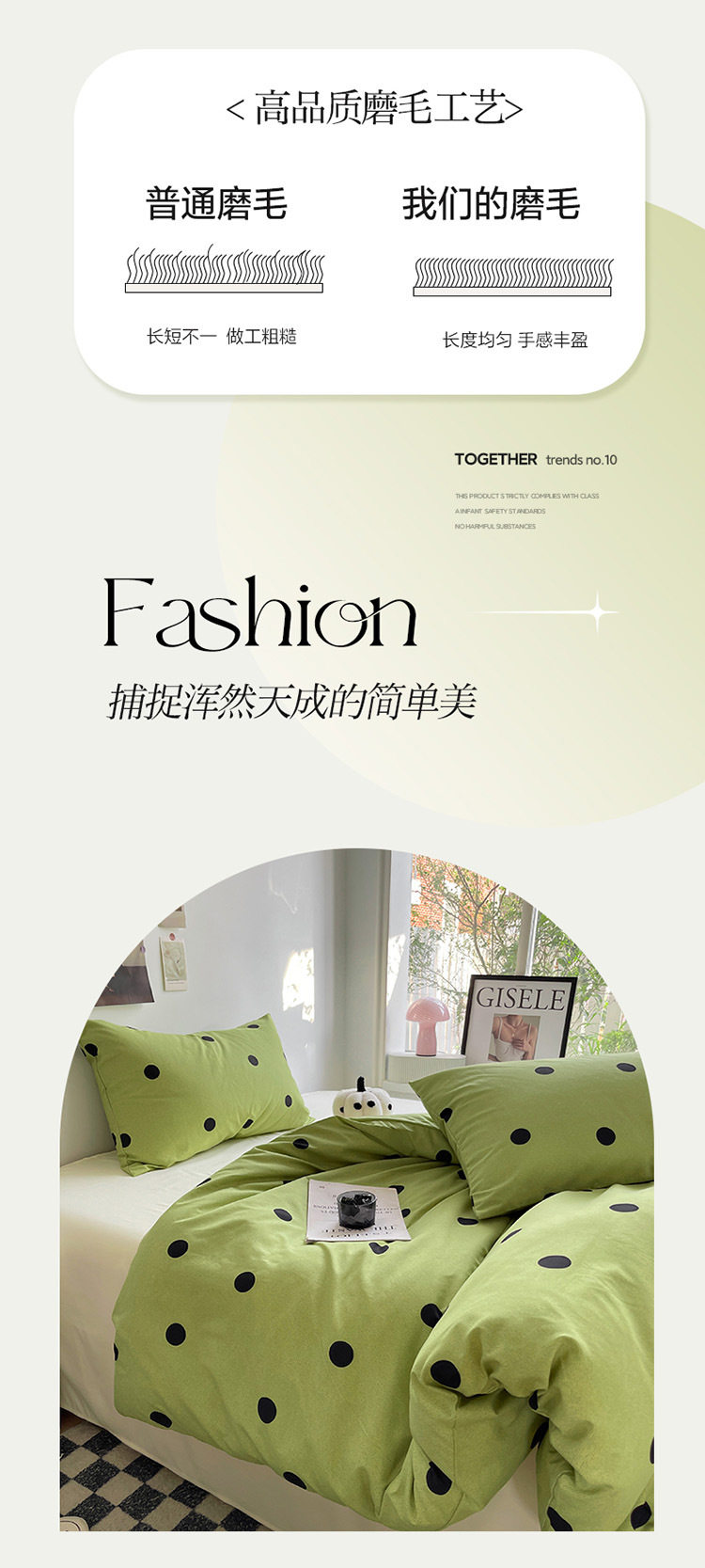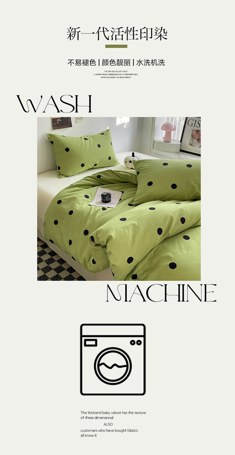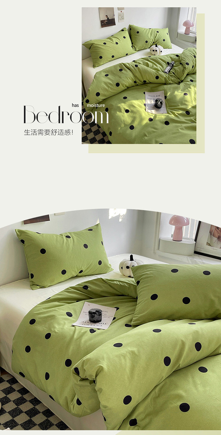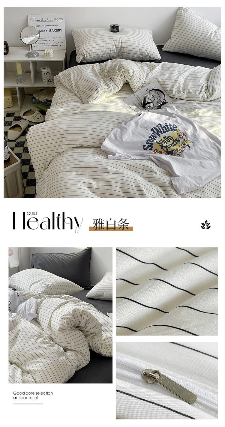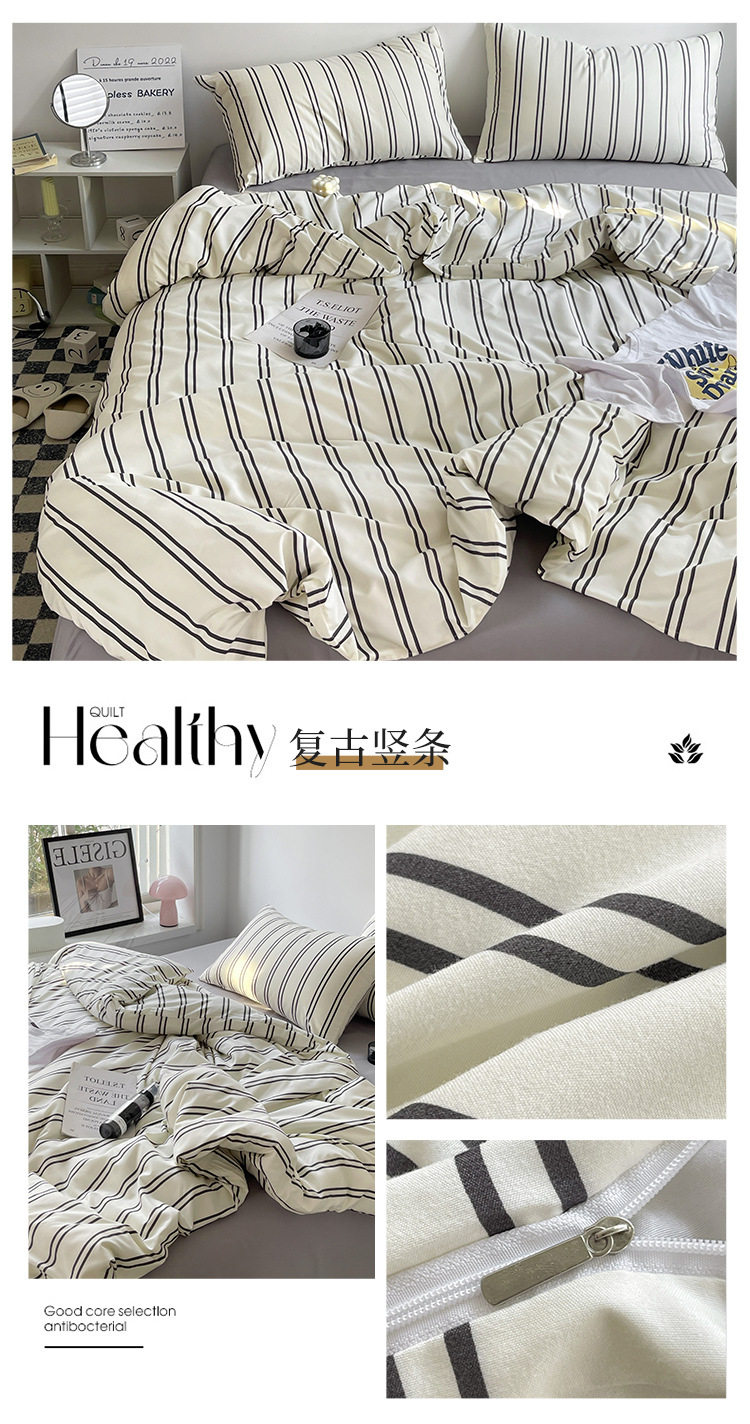 Korean style simple ins milky white polka dot skin-friendly brushed vintage striped bed sheet quilt cover 1.5 m1.8 three or four-piece set