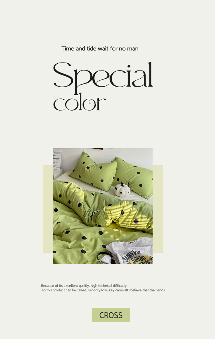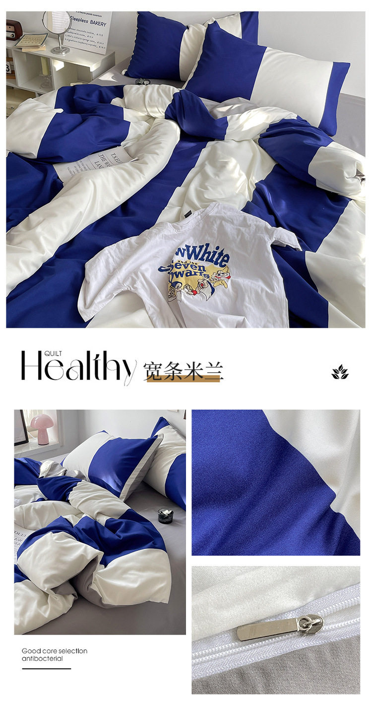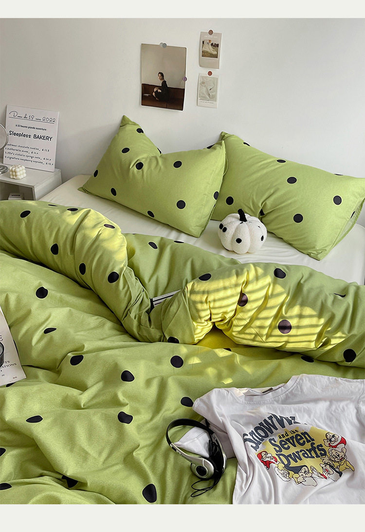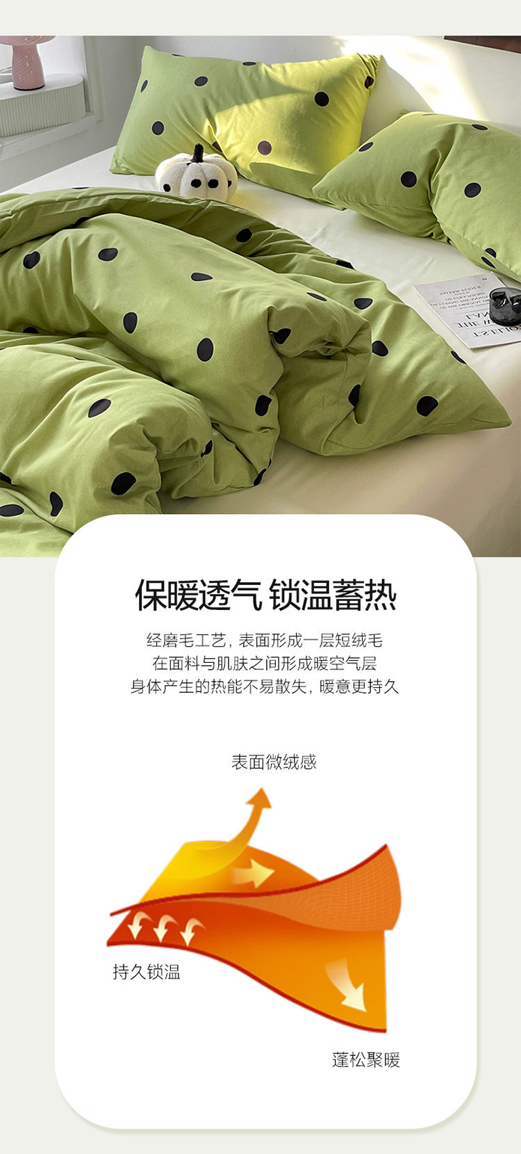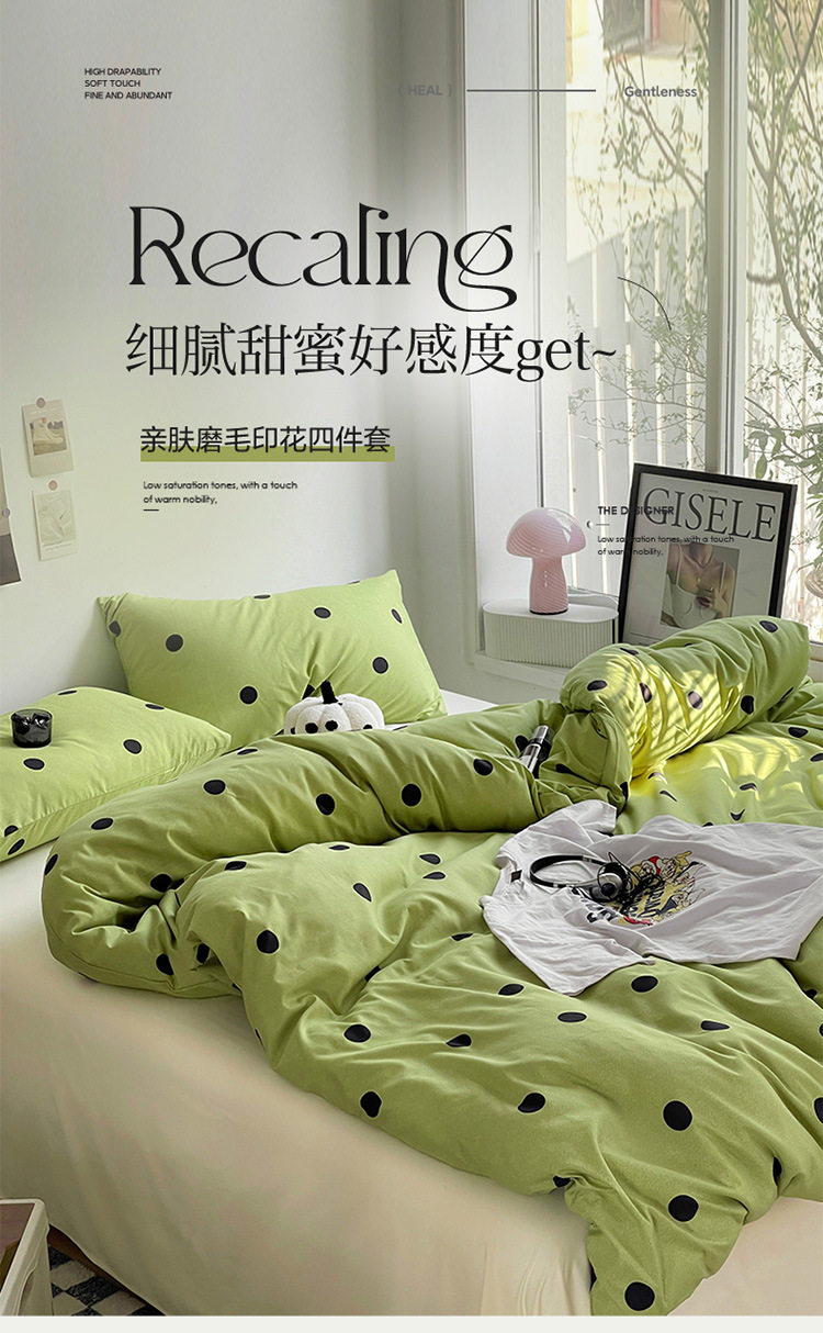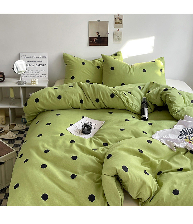 Korean style simple ins milky white polka dot skin-friendly brushed vintage striped bed sheet quilt cover 1.5 m1.8 three or four-piece set