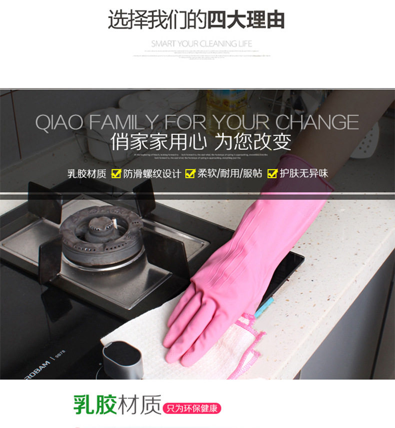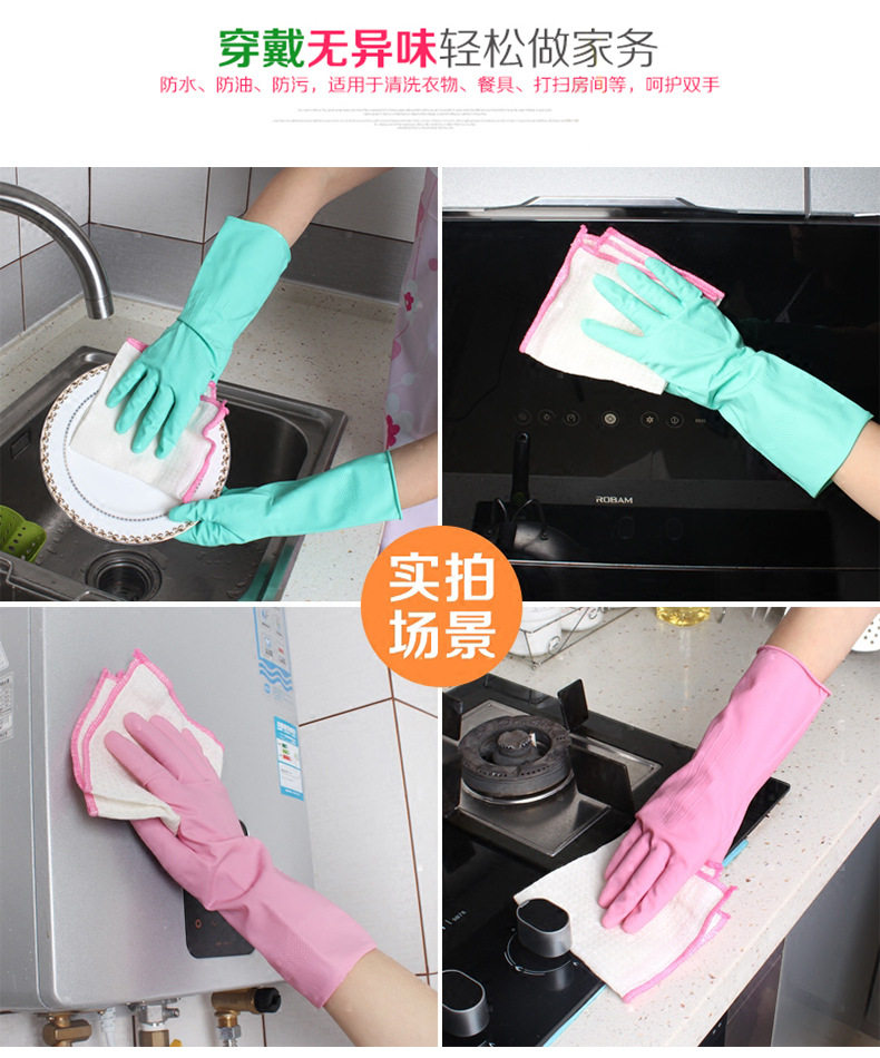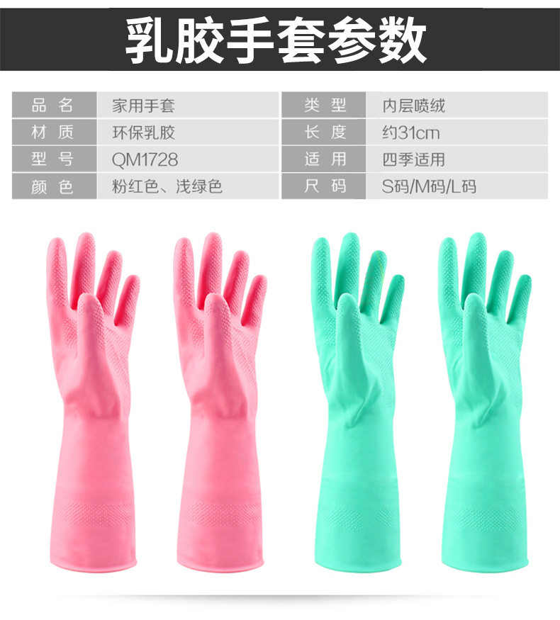 Qingqingmei dishwashing gloves household kitchen durable household rubber leather laundry female fleece-lined waterproof latex cleaning