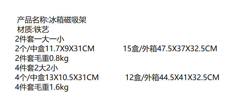 | Number of Layers (Specifications) | Two-piece set (box packaging one large and one small),Four-piece set (box packaging two large two small),Black refrigerator rack small (magnetic),Black refrigerator rack large (magnetic),3m tissue holder |