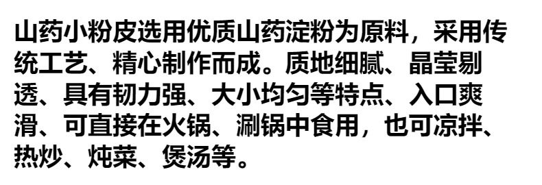 | Raw materials and ingredients | Sweet potato starch, yam powder ≥30%, edible salt, drinking water |