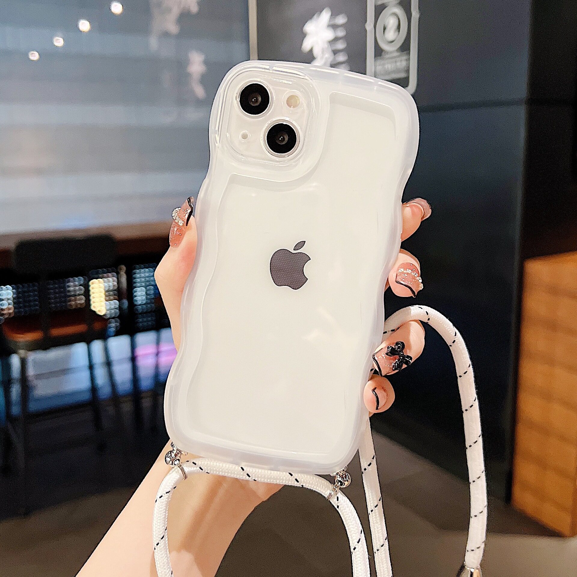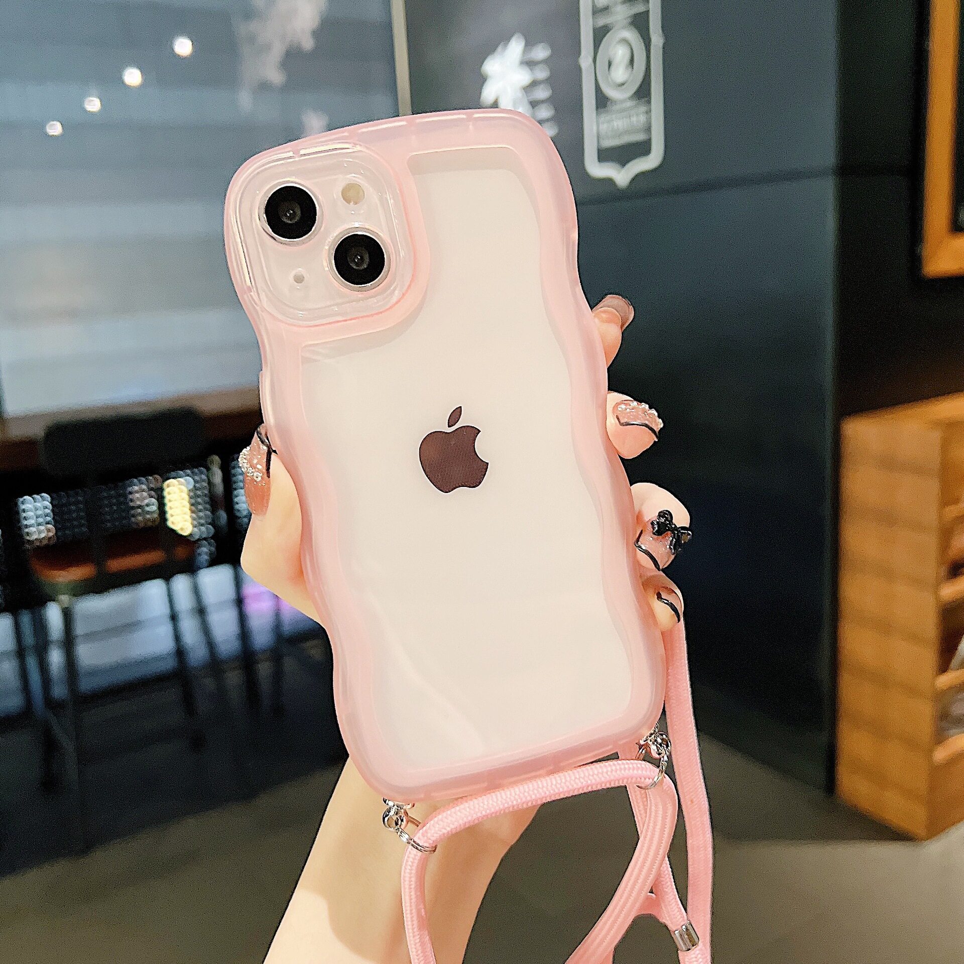 Candy Color Wavy Edge Crossbody Lanyard Suitable for Iphone17 Mobile Phone Case Apple 16E Fine Hole Silicone S25 Soft