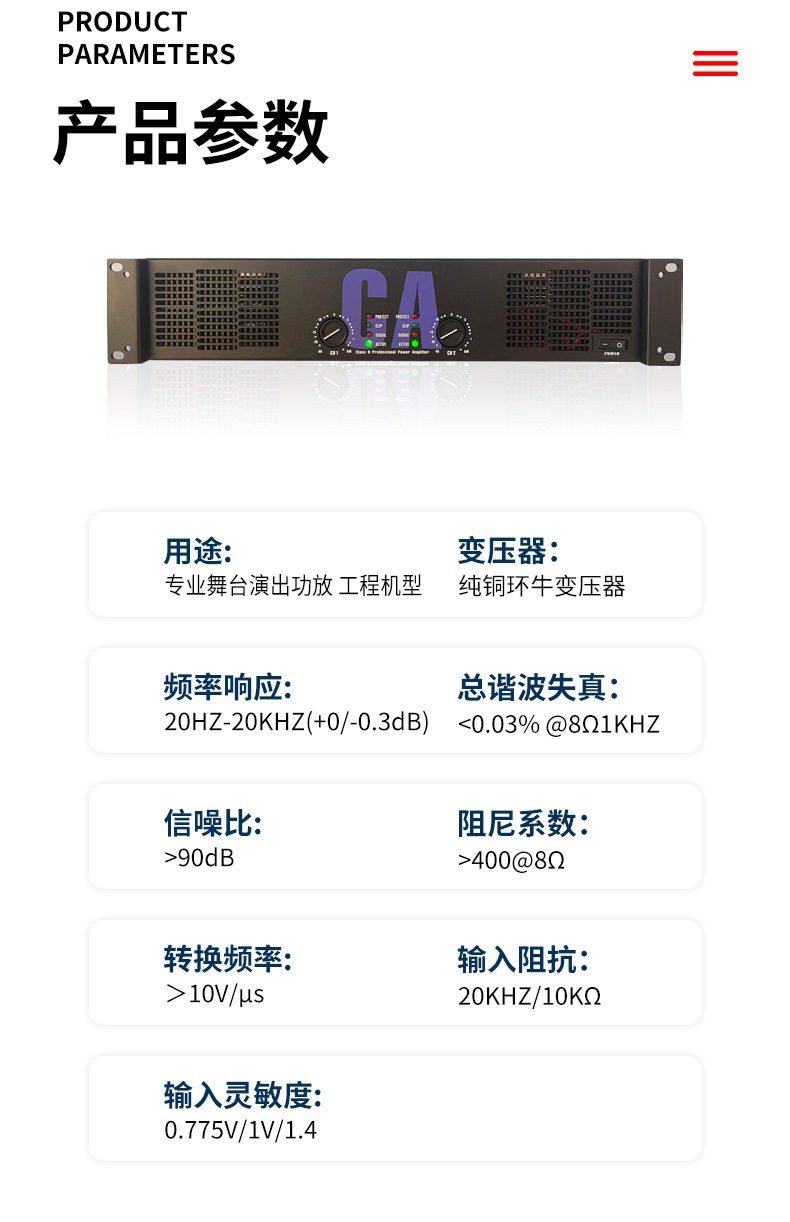 | Power amplifier type | Constant voltage power amplifier |