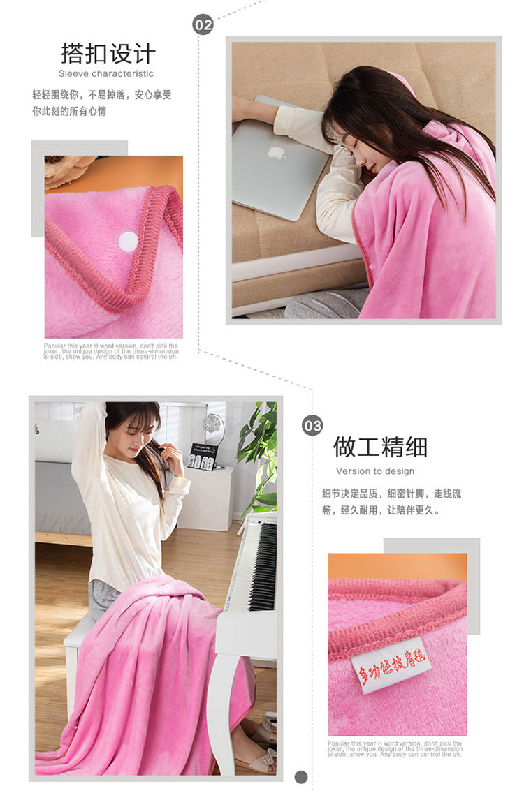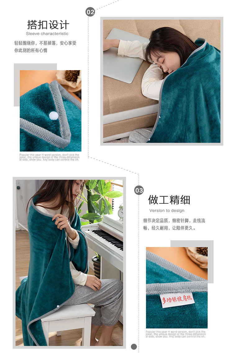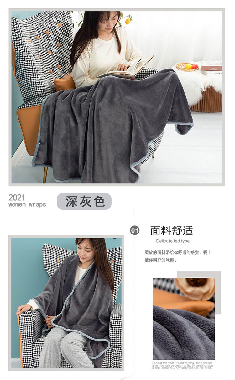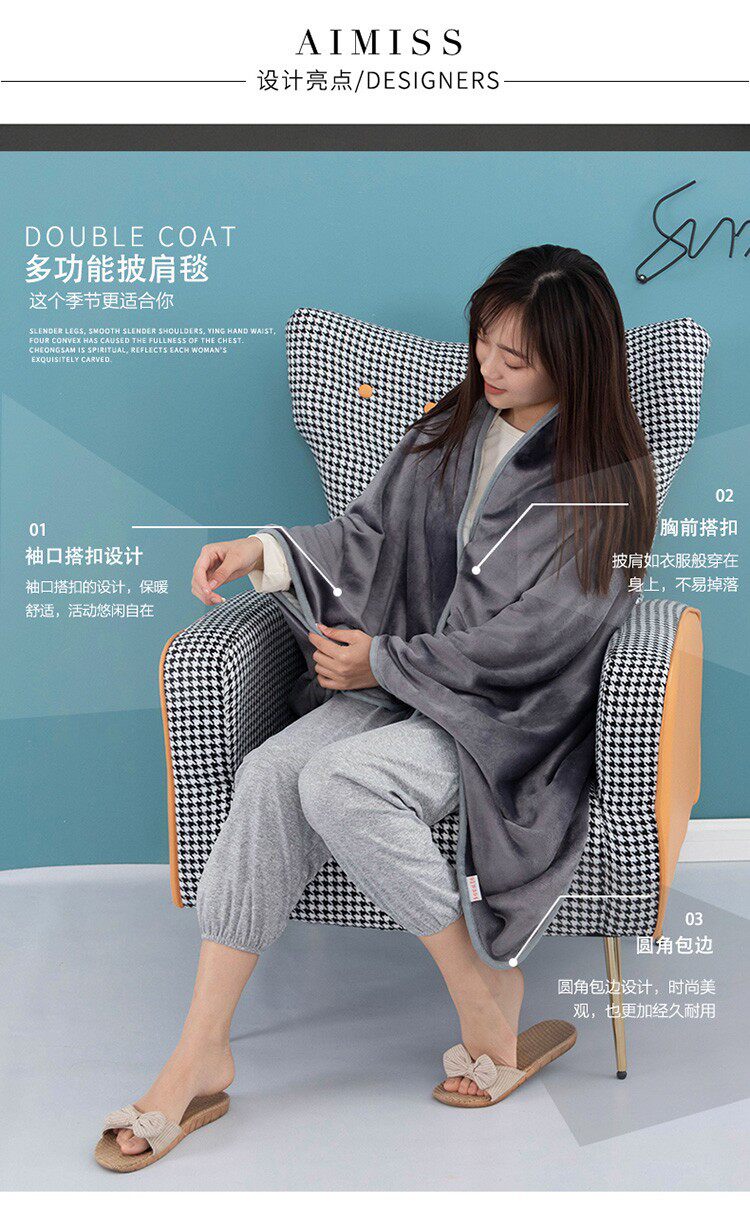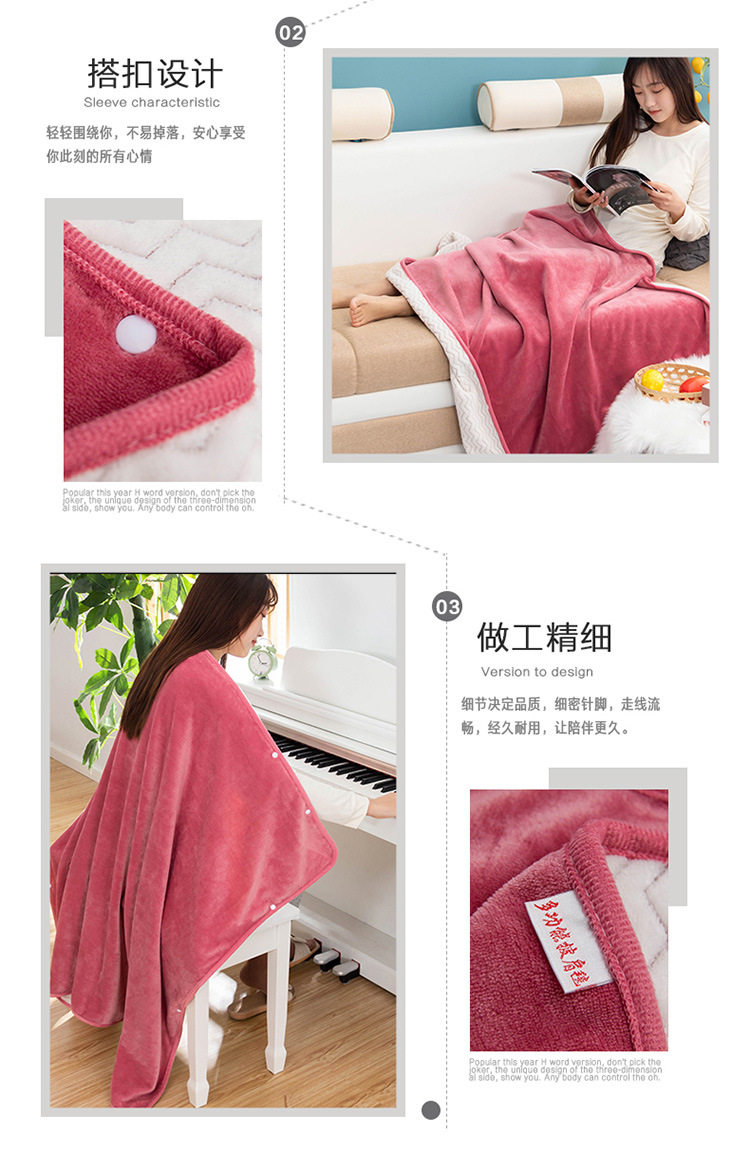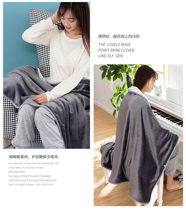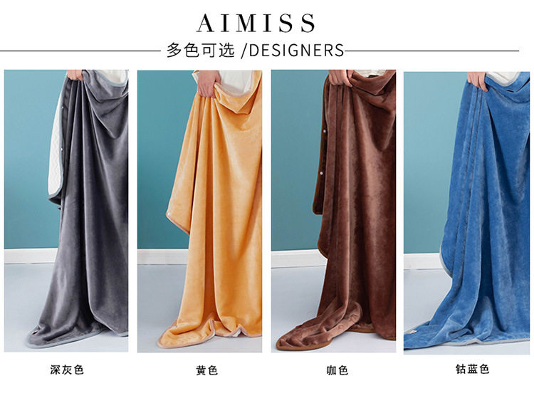 Factory wholesale solid color thickened multifunctional shawl blanket double-layer nap air conditioning blanket heating buckle lazy blanket
