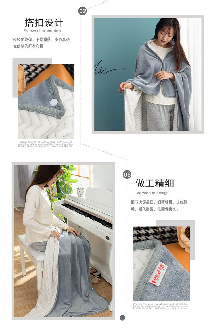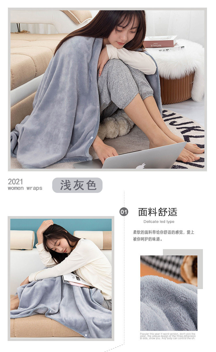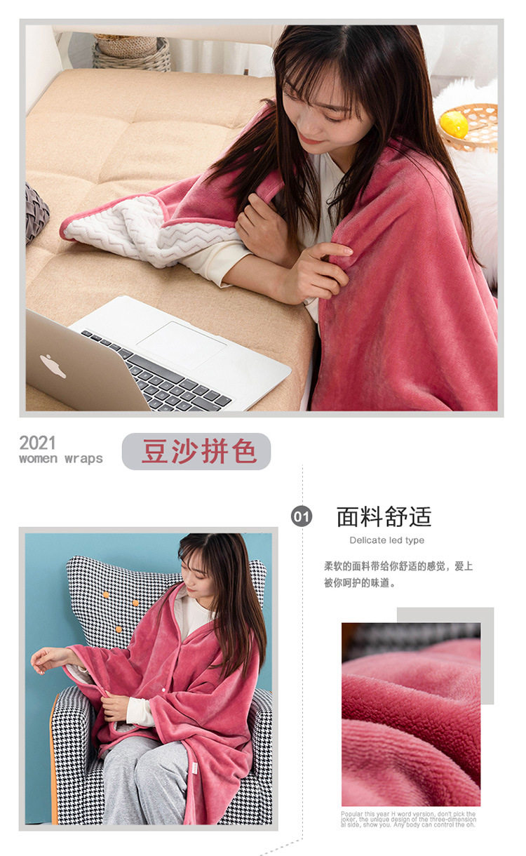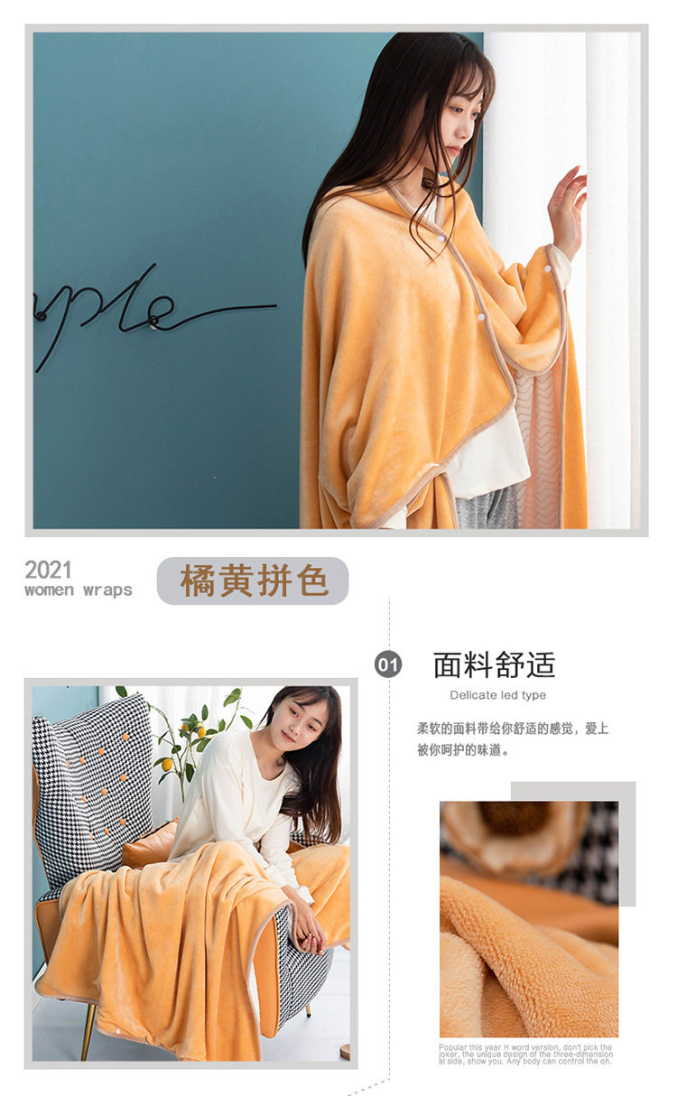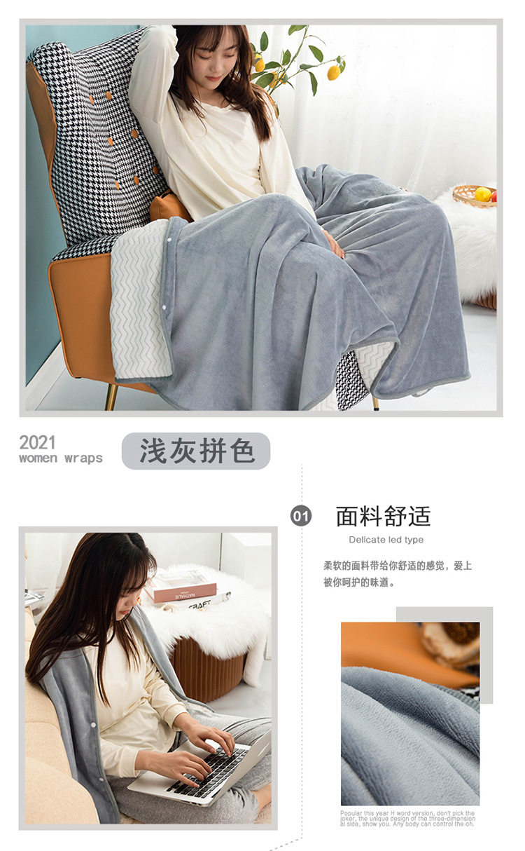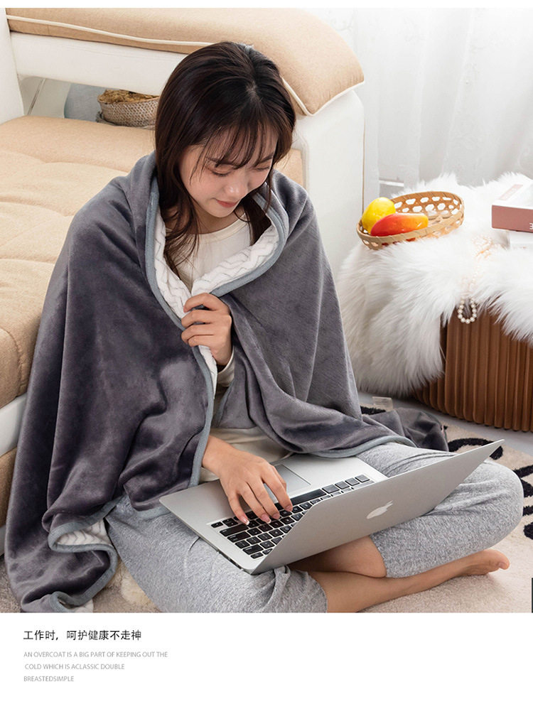 Factory wholesale solid color thickened multifunctional shawl blanket double-layer nap air conditioning blanket heating buckle lazy blanket