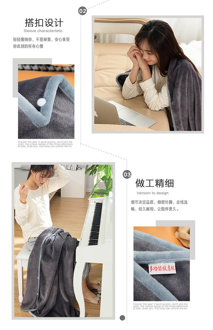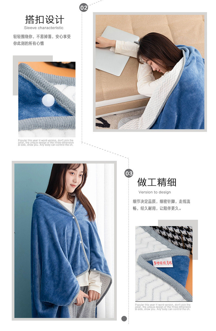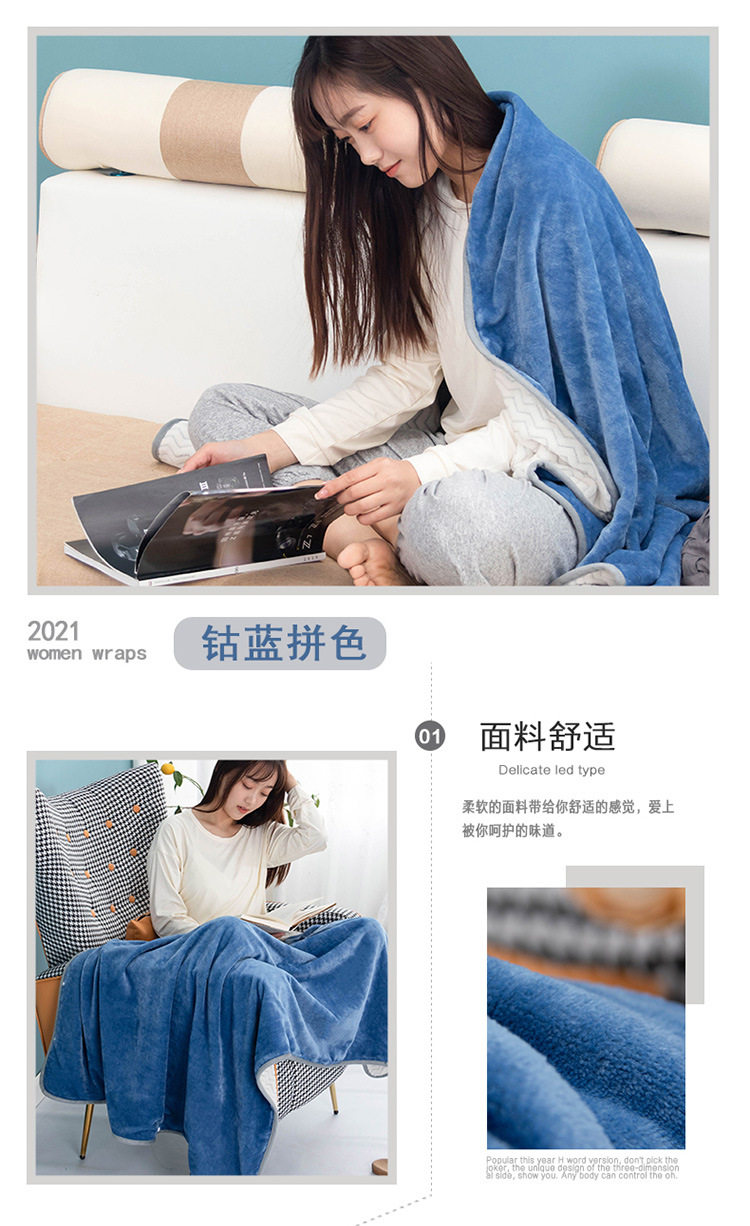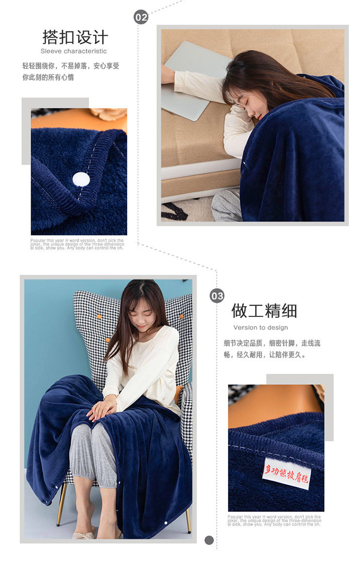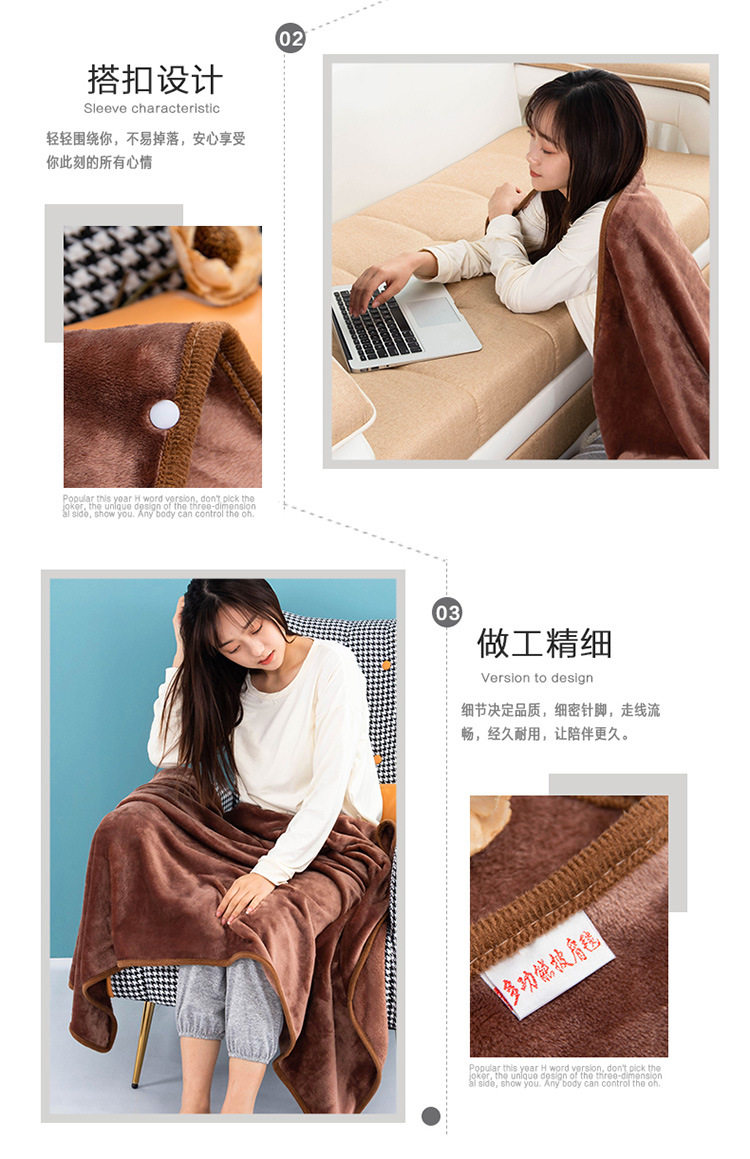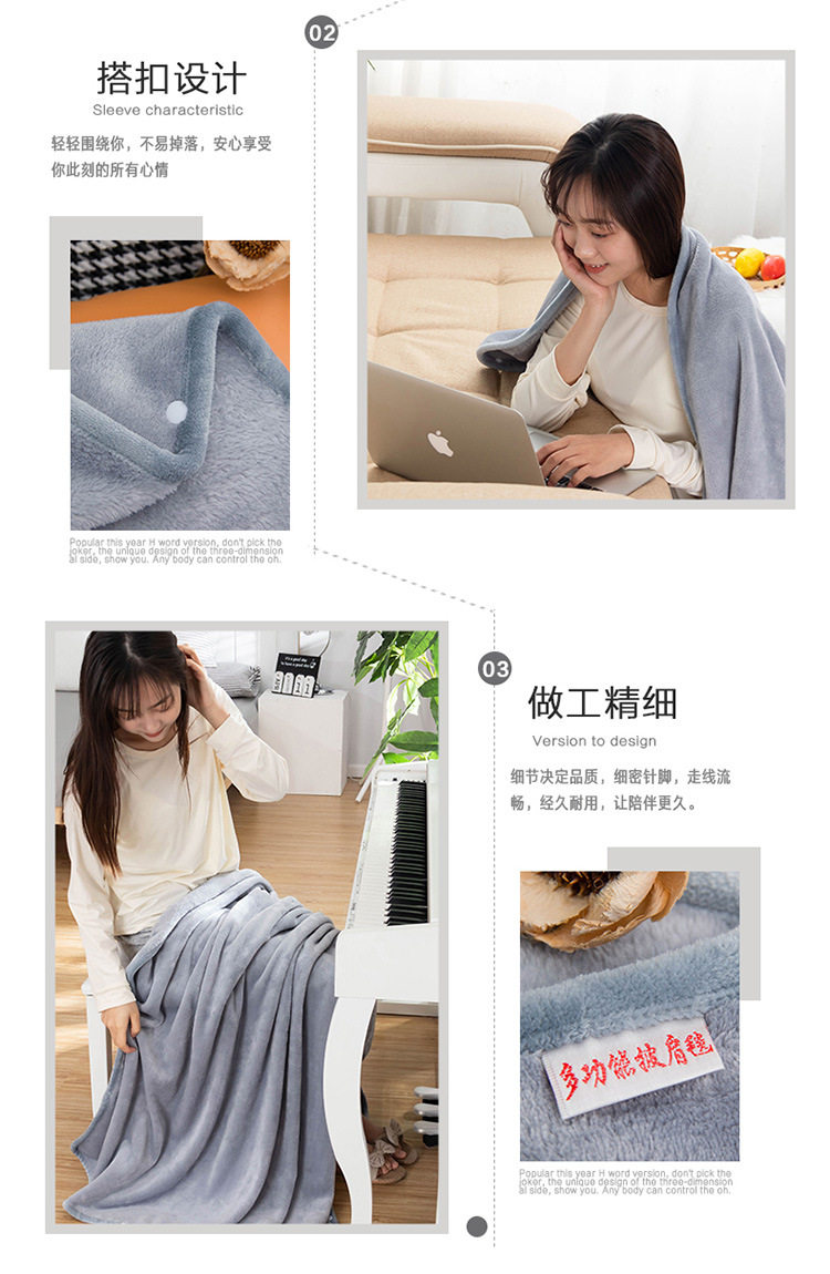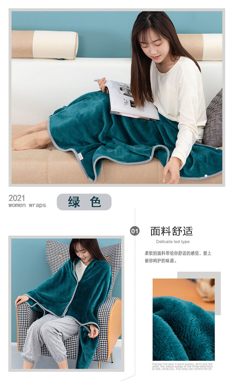 Factory wholesale solid color thickened multifunctional shawl blanket double-layer nap air conditioning blanket heating buckle lazy blanket