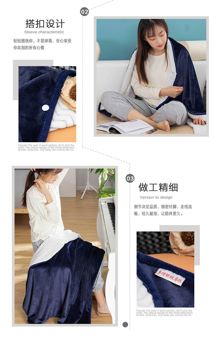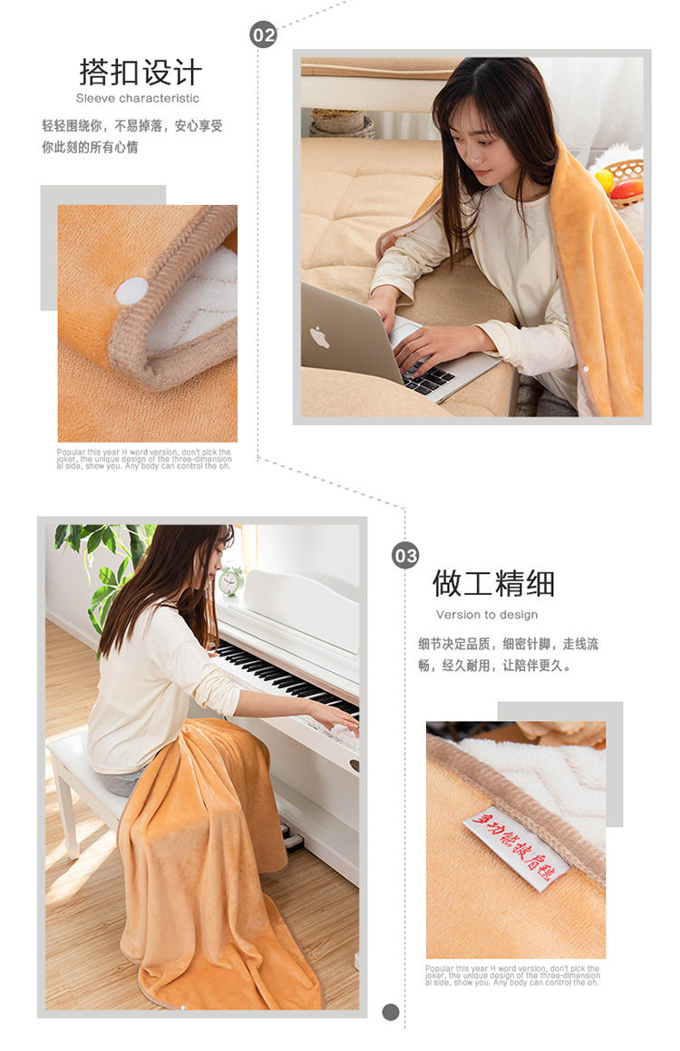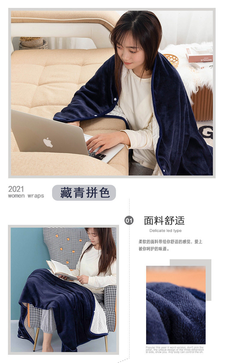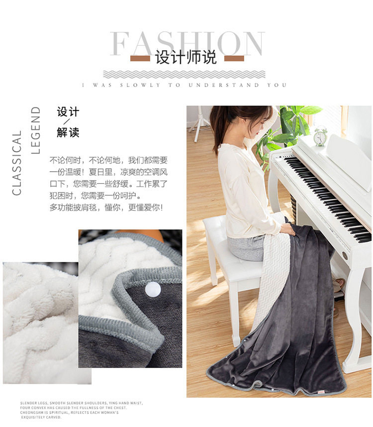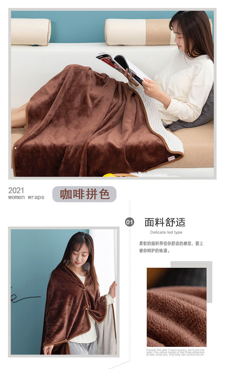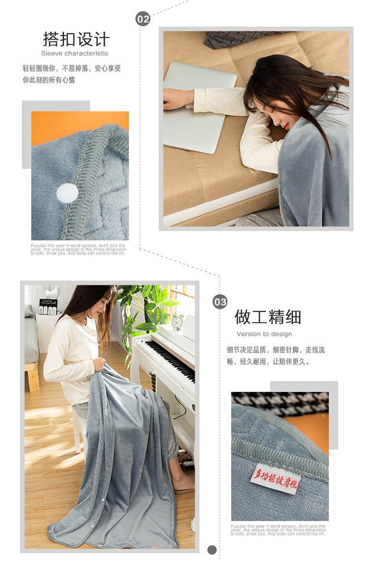 Factory wholesale solid color thickened multifunctional shawl blanket double-layer nap air conditioning blanket heating buckle lazy blanket