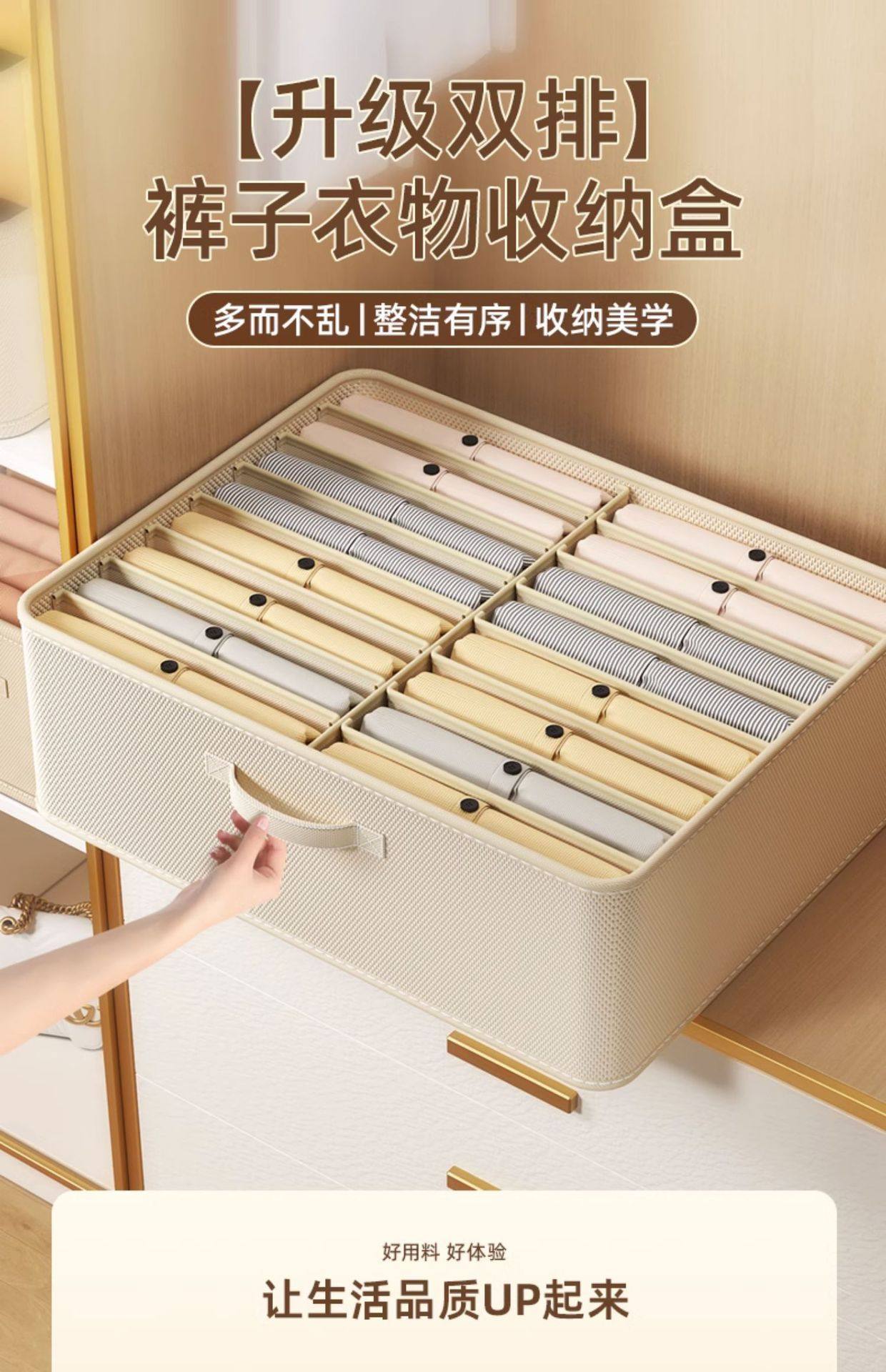 In stock large capacity double row clothes storage organizing box pants compartment storage artifact fabric clothing storage box