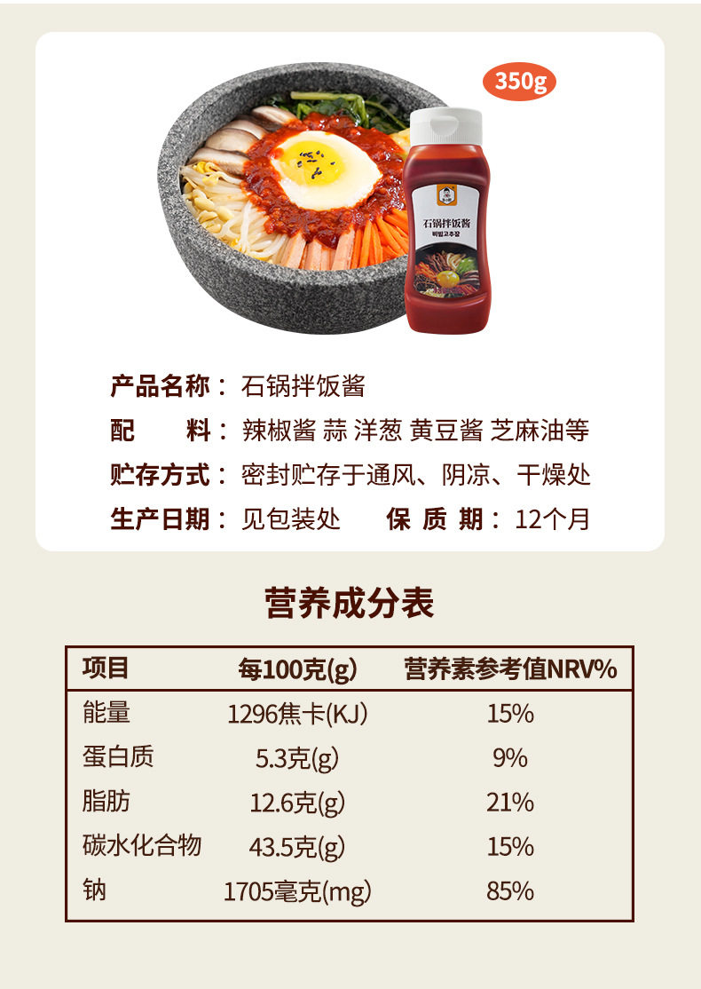 | Item number | Stone pot bibimbap sauce 350g |