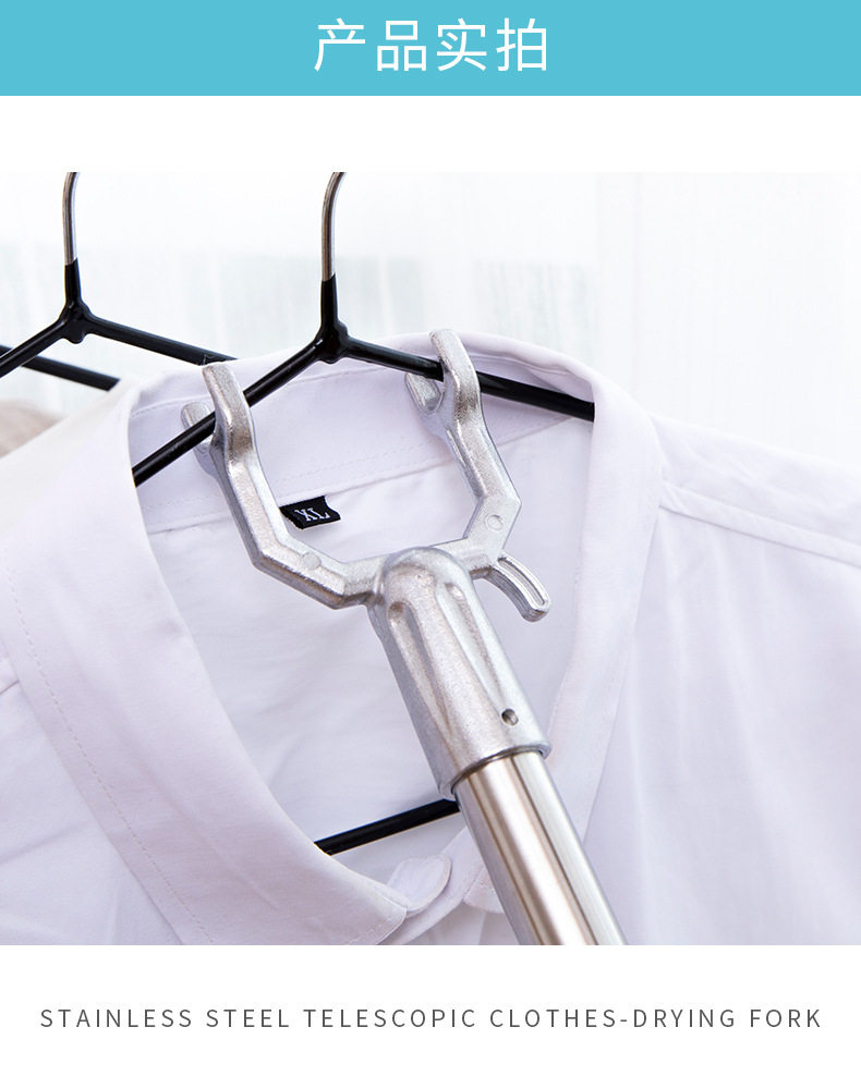 Retractable Stainless Steel Clothes Fork, Free Adjustable Clothes Fork, Balcony Clothes Support, Clothes Drying Rod, Clothes Hanger, Household Clothes Rod