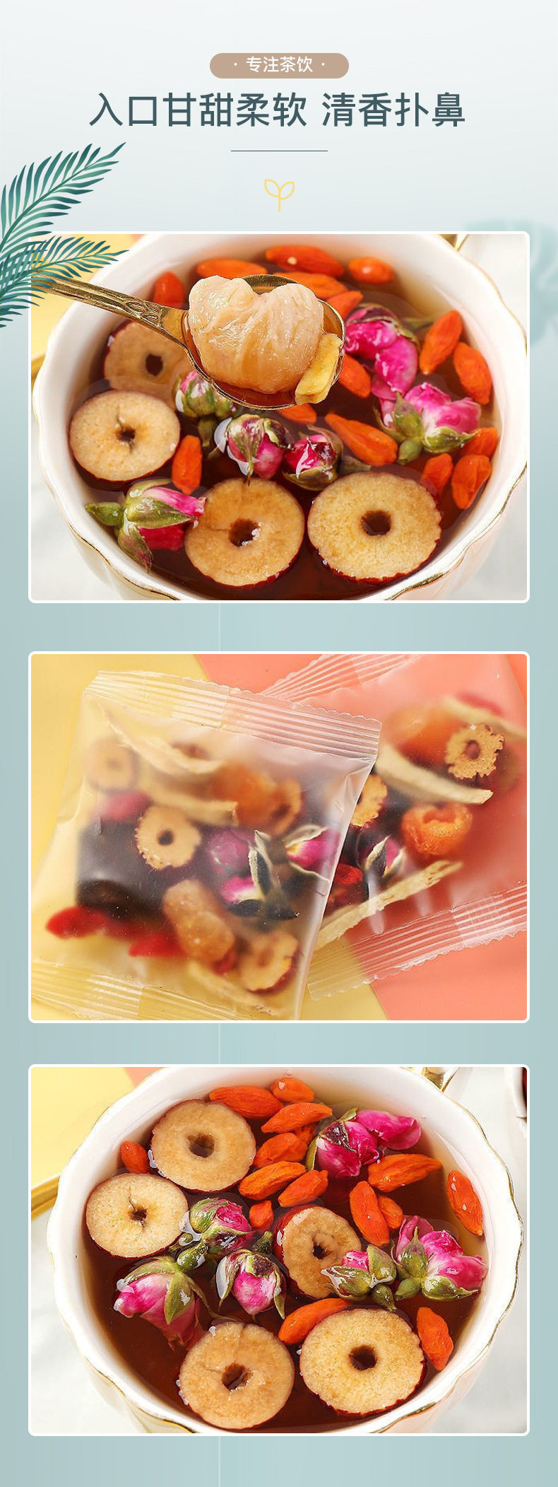 | Raw materials and ingredients | Brown sugar, red dates, medlar, double red rose, longan, shredded ginger |