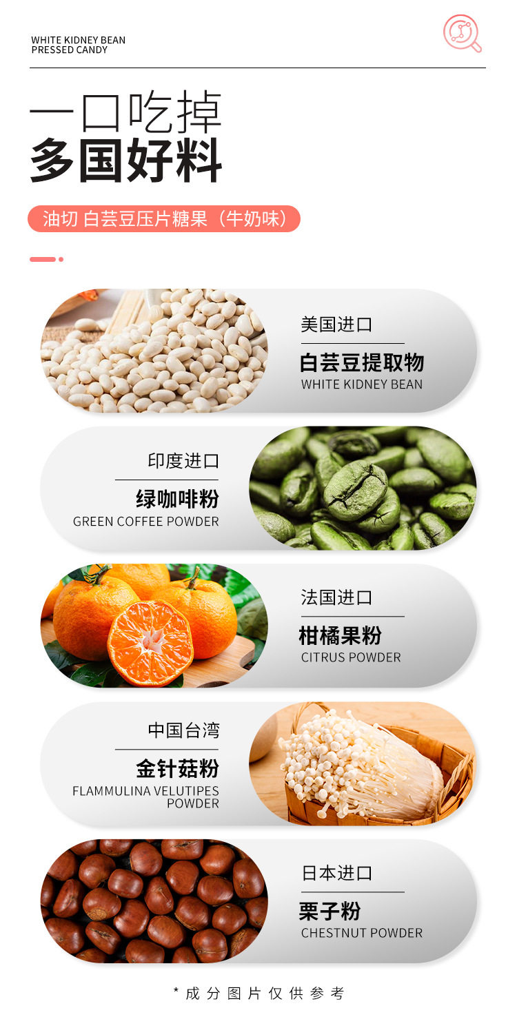 | Main raw materials | White kidney bean extract |