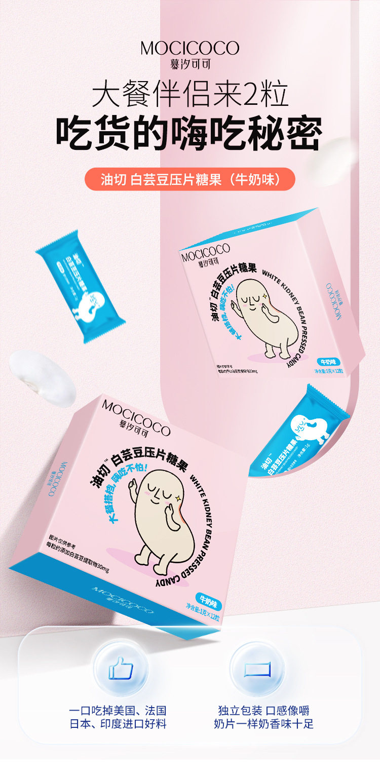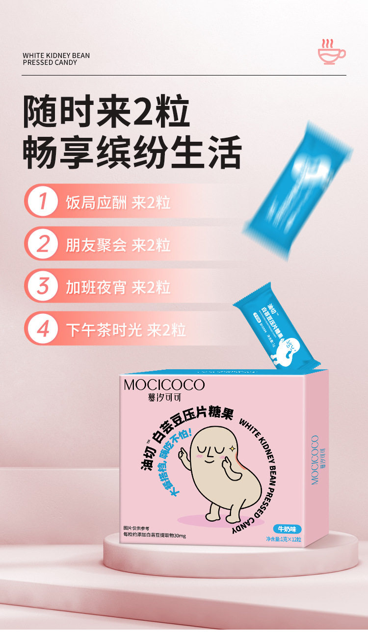 Customized Oem White Kidney Bean Dietary Fiber Tablets Chewable Tablets Fruit 0 Fat Plant Extract Pre-Meal Tablet Candy