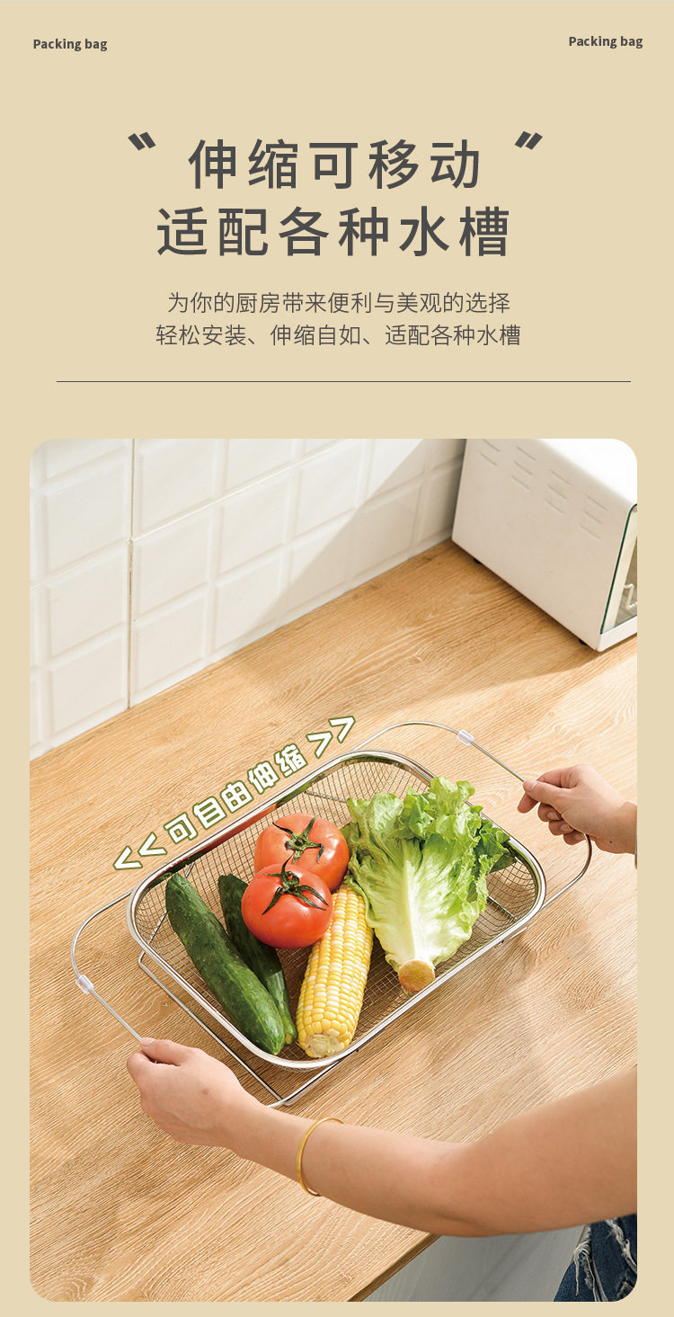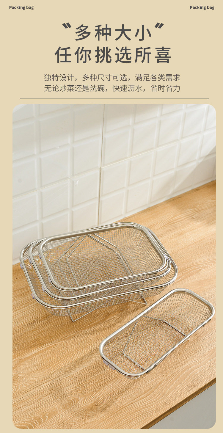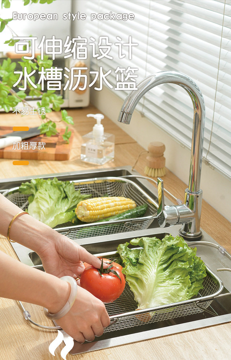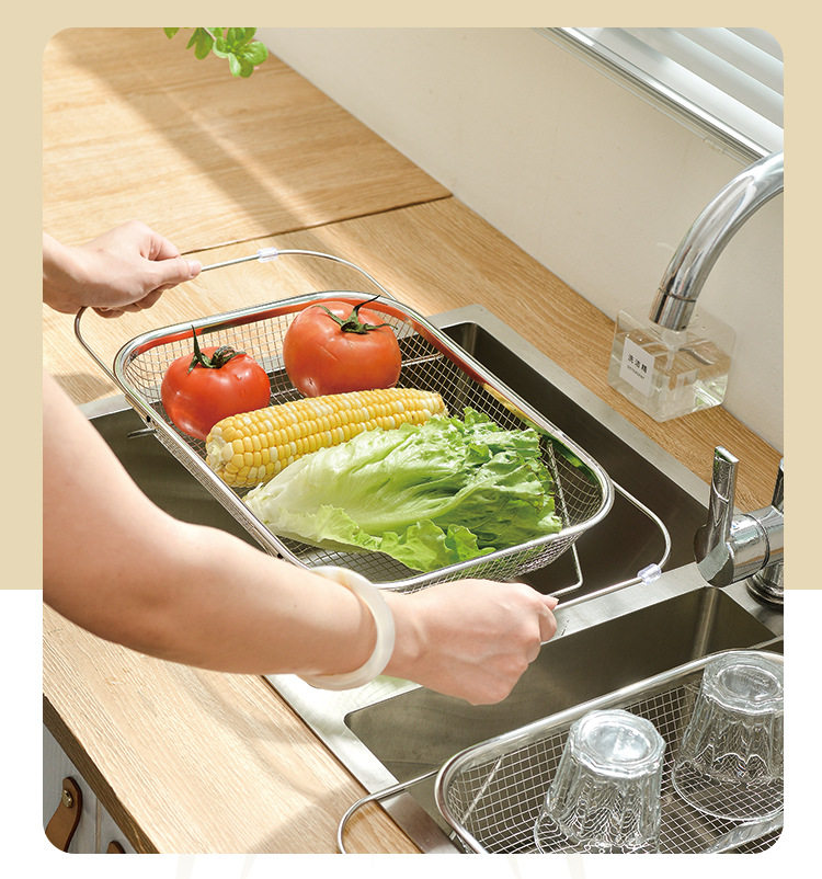 Thickened Stainless Steel Draining Basket for Home Use, Vegetable Washing Basket, Chopstick Basket, Japanese-Style Retractable Draining Rack, Sink Draining Rack