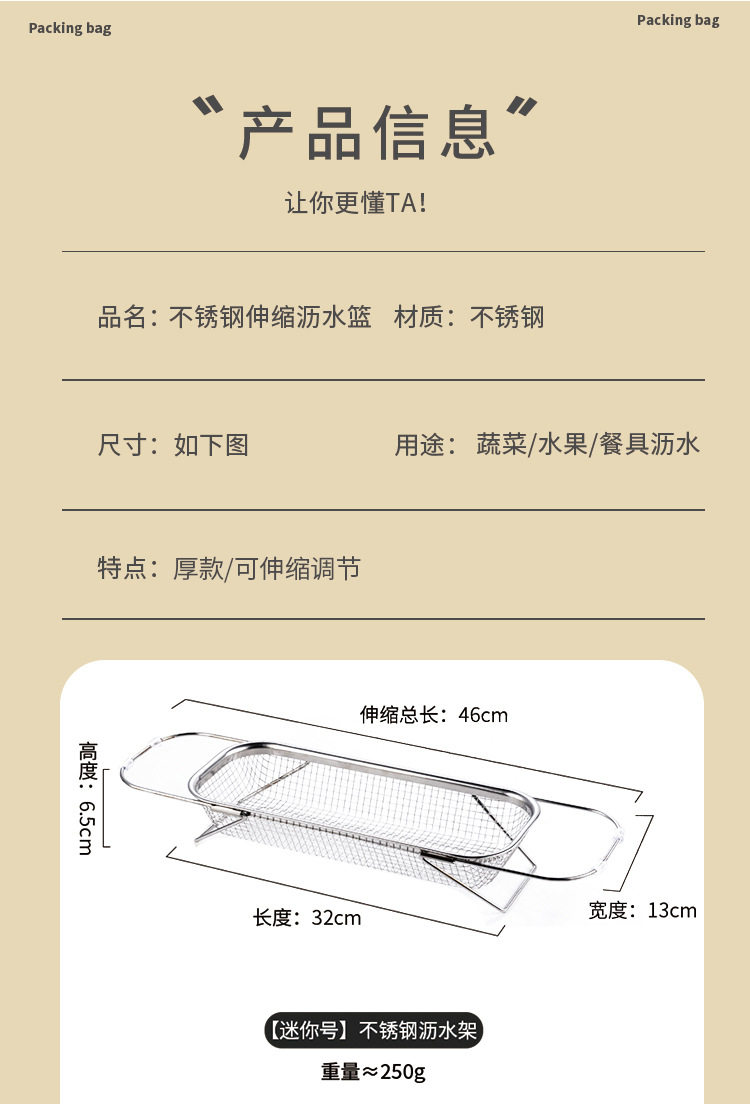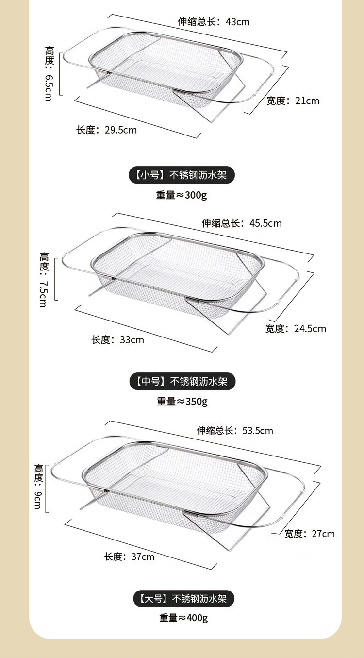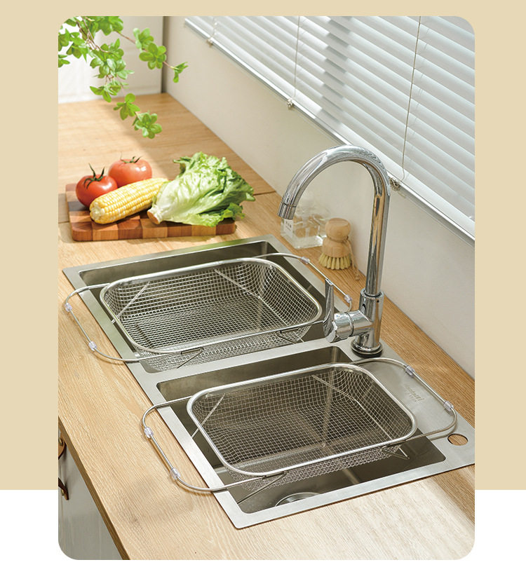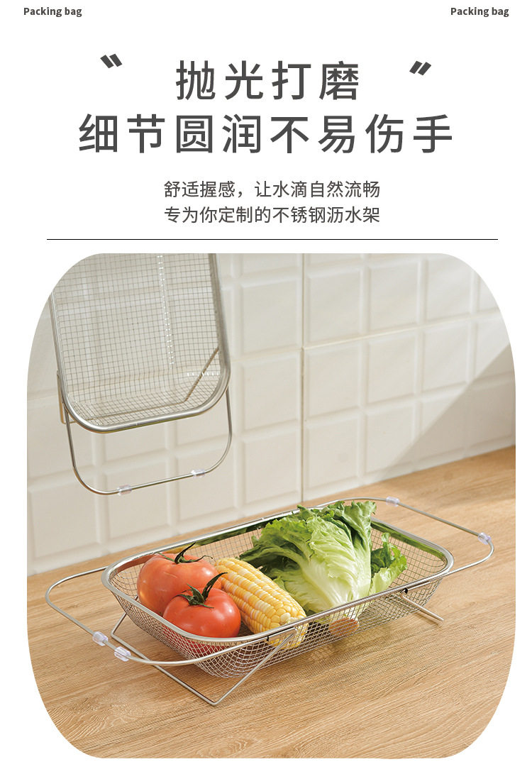 Thickened Stainless Steel Draining Basket for Home Use, Vegetable Washing Basket, Chopstick Basket, Japanese-Style Retractable Draining Rack, Sink Draining Rack