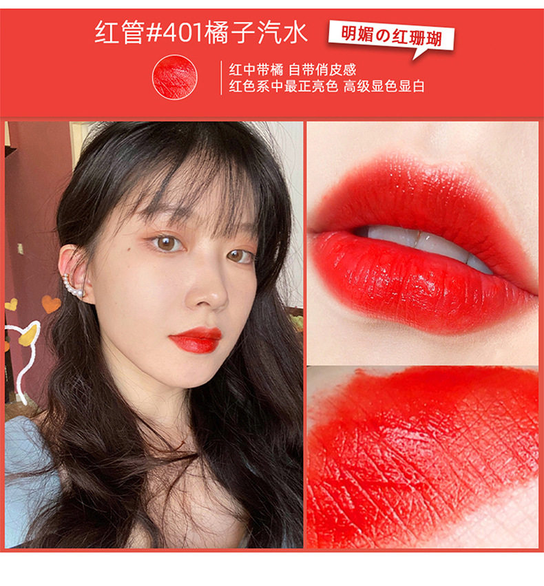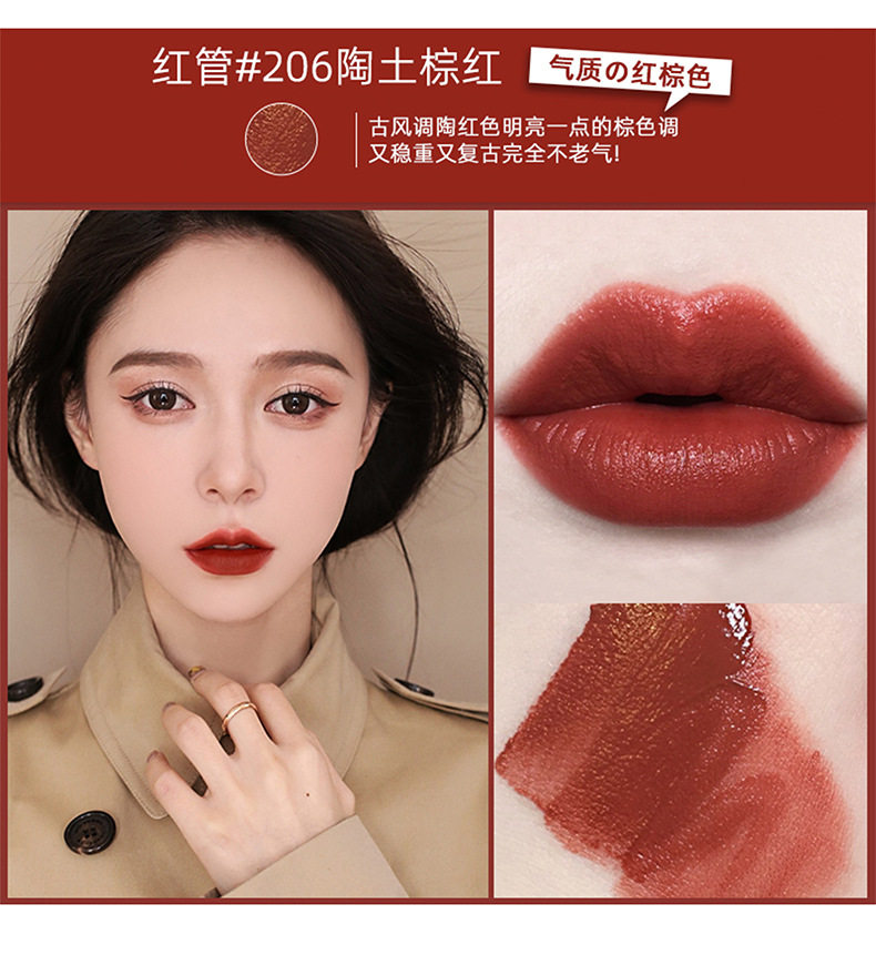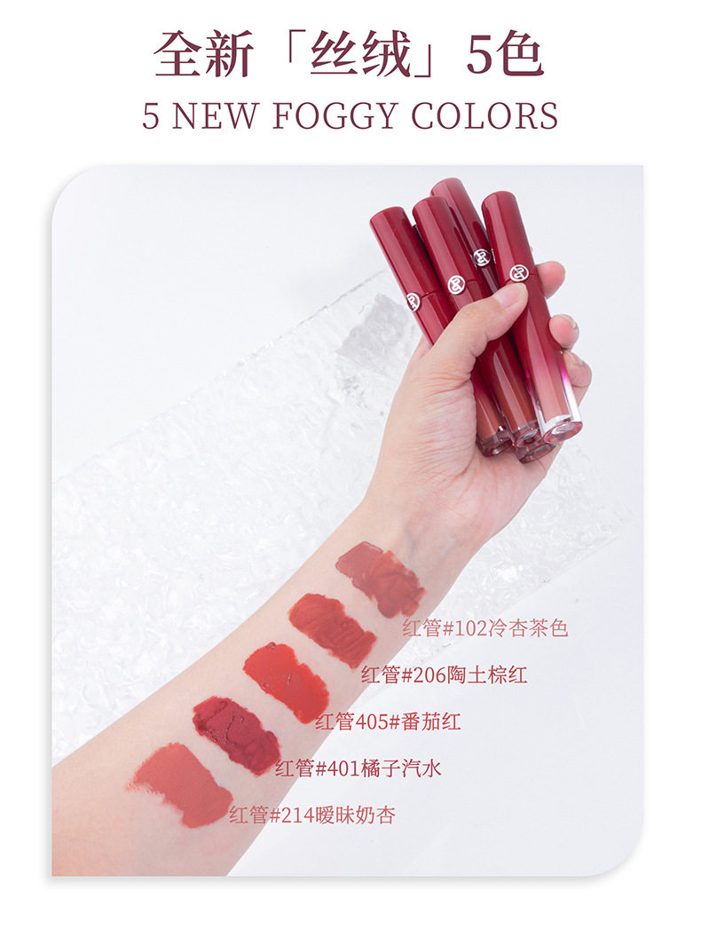 | Color | Red tube 405# velvet tomato red,Red tube #401 orange soda,#214 ambiguous milk apricot,#206 clay brown red,#102 cold apricot Brown |