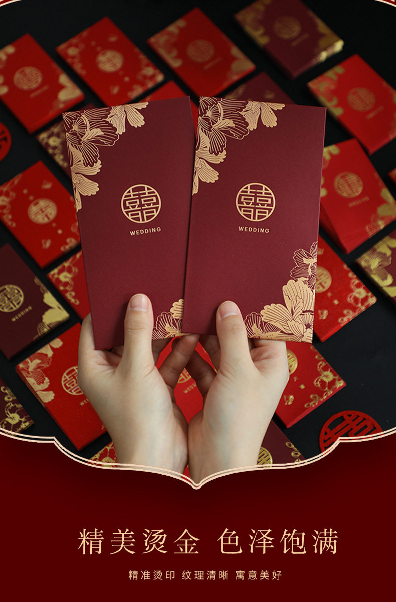 2025 New Wedding Special High-End Red Envelope Wholesale Wedding Red Envelope Bag with Happy Words to Block the Door and Pick up the Bride with Red Envelope