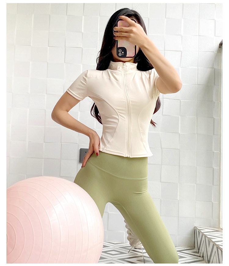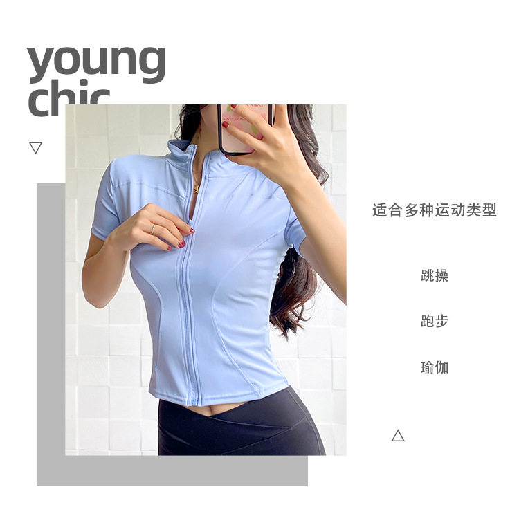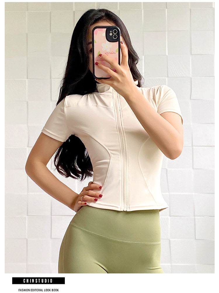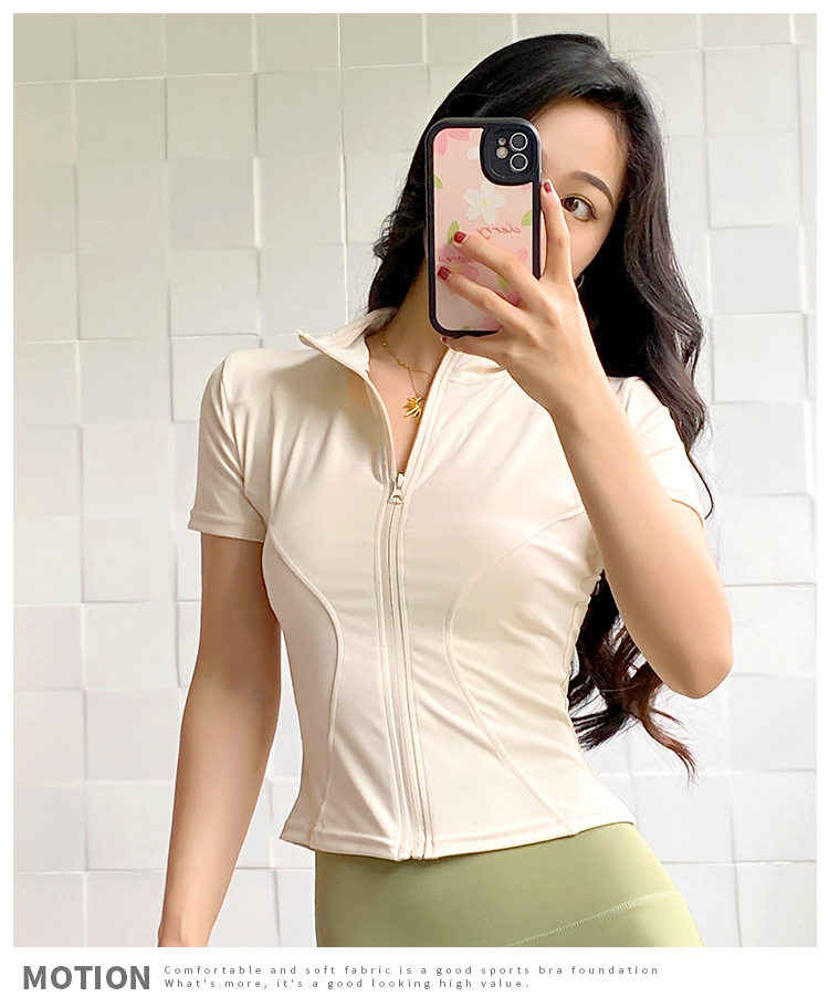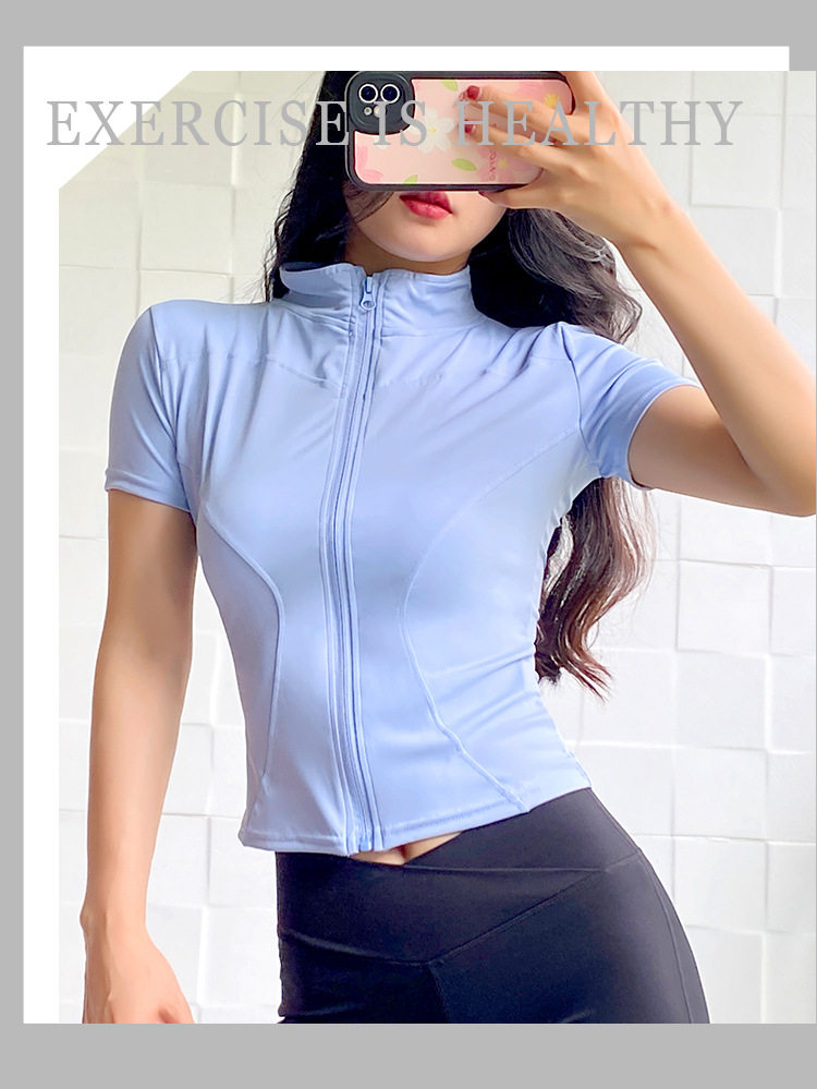 Sports Short-sleeved Women's 2024 Summer New Zipper Fitness Top Morning Run Quick-drying Jacket High-end Yoga Clothes