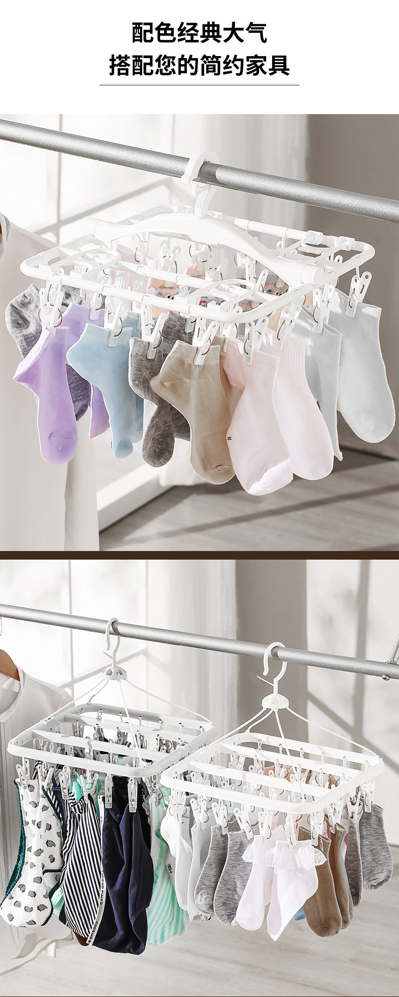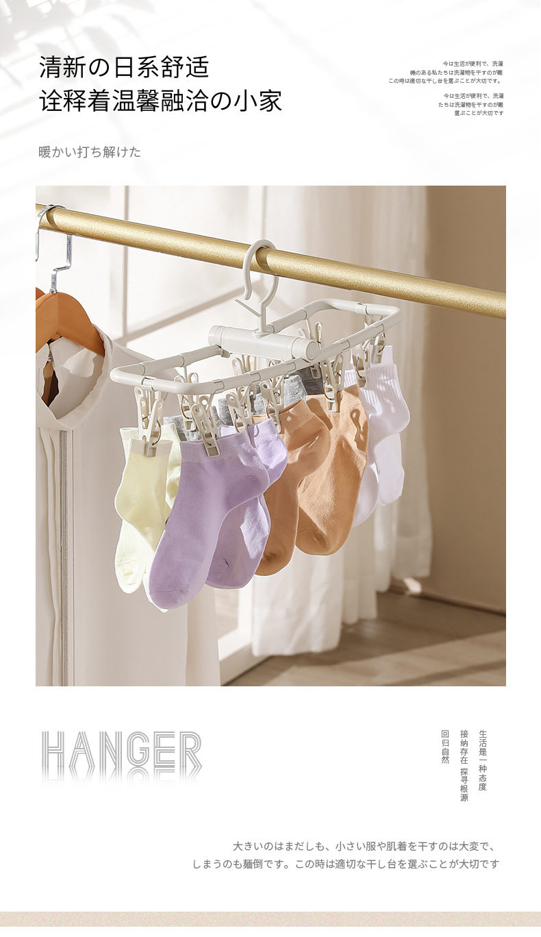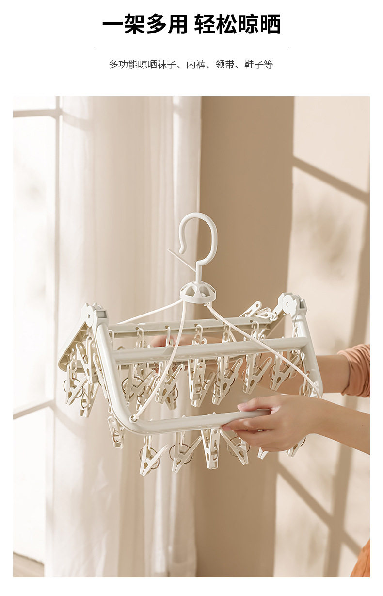 Foldable clothes hanger portable travel multi-functional windproof clothes hanger socks underwear underwear for multi-student dormitory