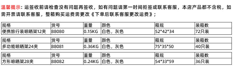 | Color | Folding drying rack 8 clips white,Folding drying rack 12 clips--white 88080,Folding drying rack 24 clips--white 88081,Folding drying rack 28 clips--white 88082,Folding drying rack 12 clips--grey 88080,Folding drying rack 24 clips--grey 88081,Folding drying rack 28 clips--grey 88082 |