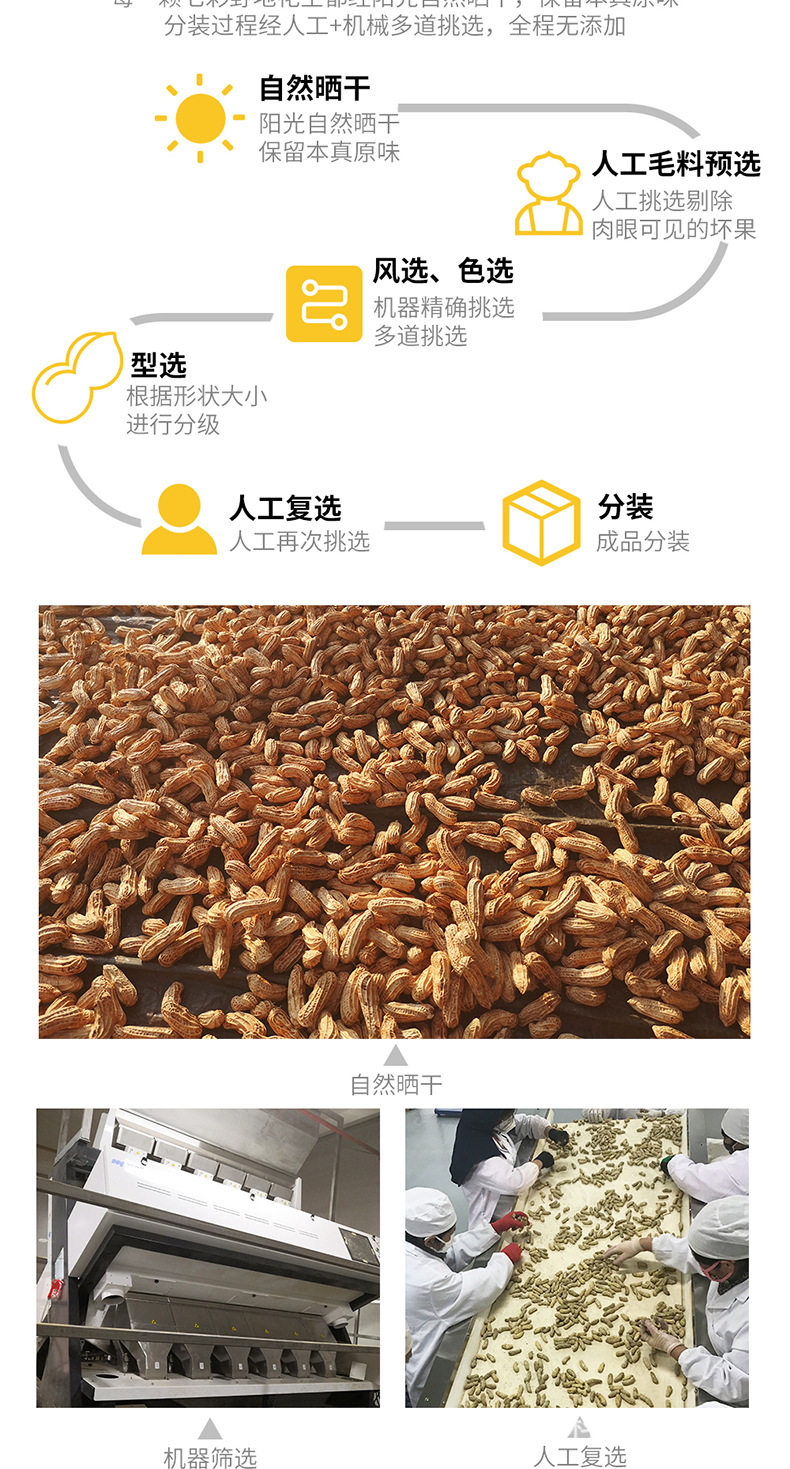 | Packaging specifications | 238g colorful shelled raw [precision grade],210g colorful shell cooked [precision grade],400g colorful peanuts [precision grade],[raw materials] 30kg wholesale price, please consult customer service to place an order,5kg colorful shelled raw material [carton raw material],5kg colorful shell cooked [boxed raw materials],5kg colorful peanuts [carton raw materials] |