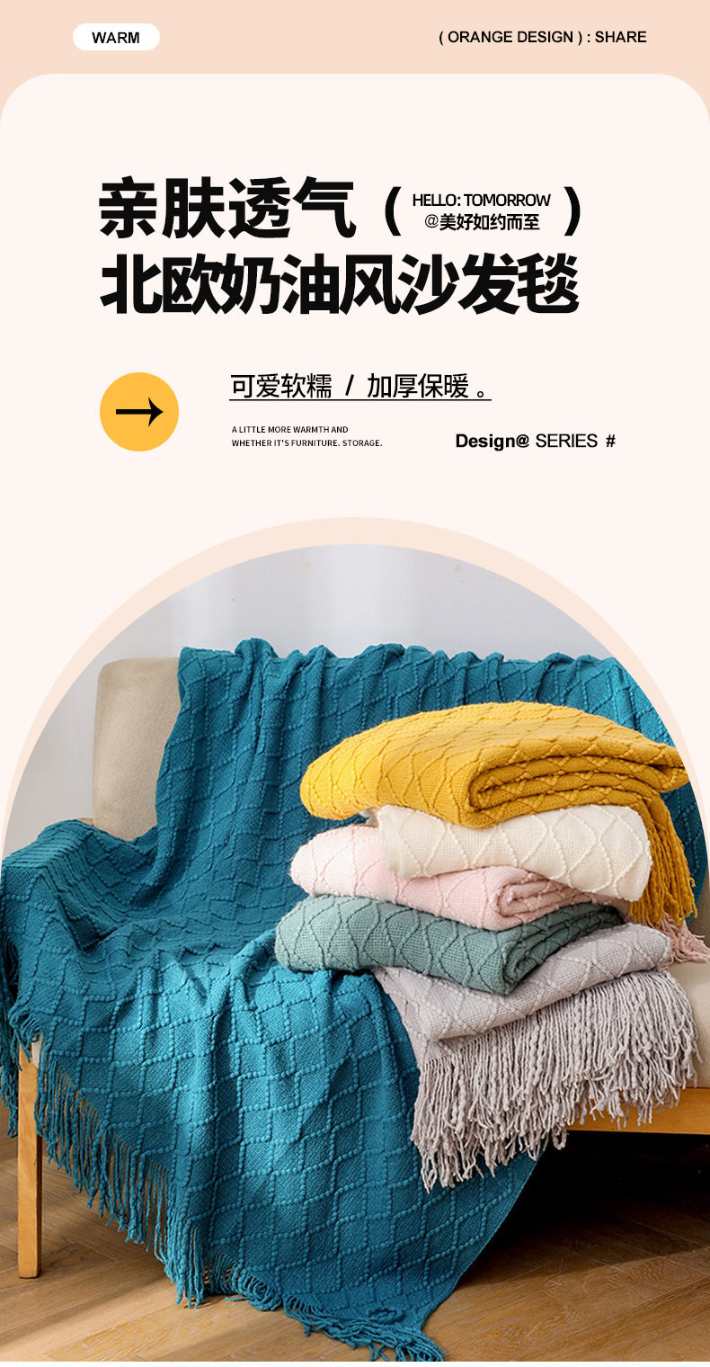 Nordic cream style sofa blanket living room air conditioning blanket knitted blanket office Cape shawl blanket sofa blanket